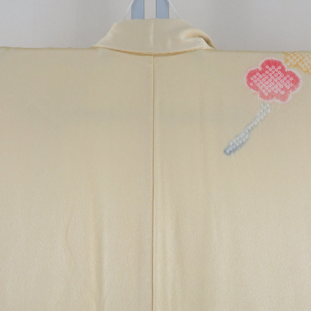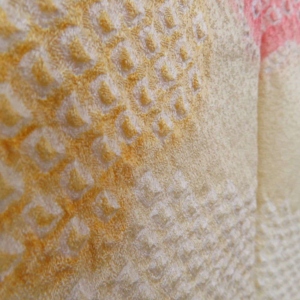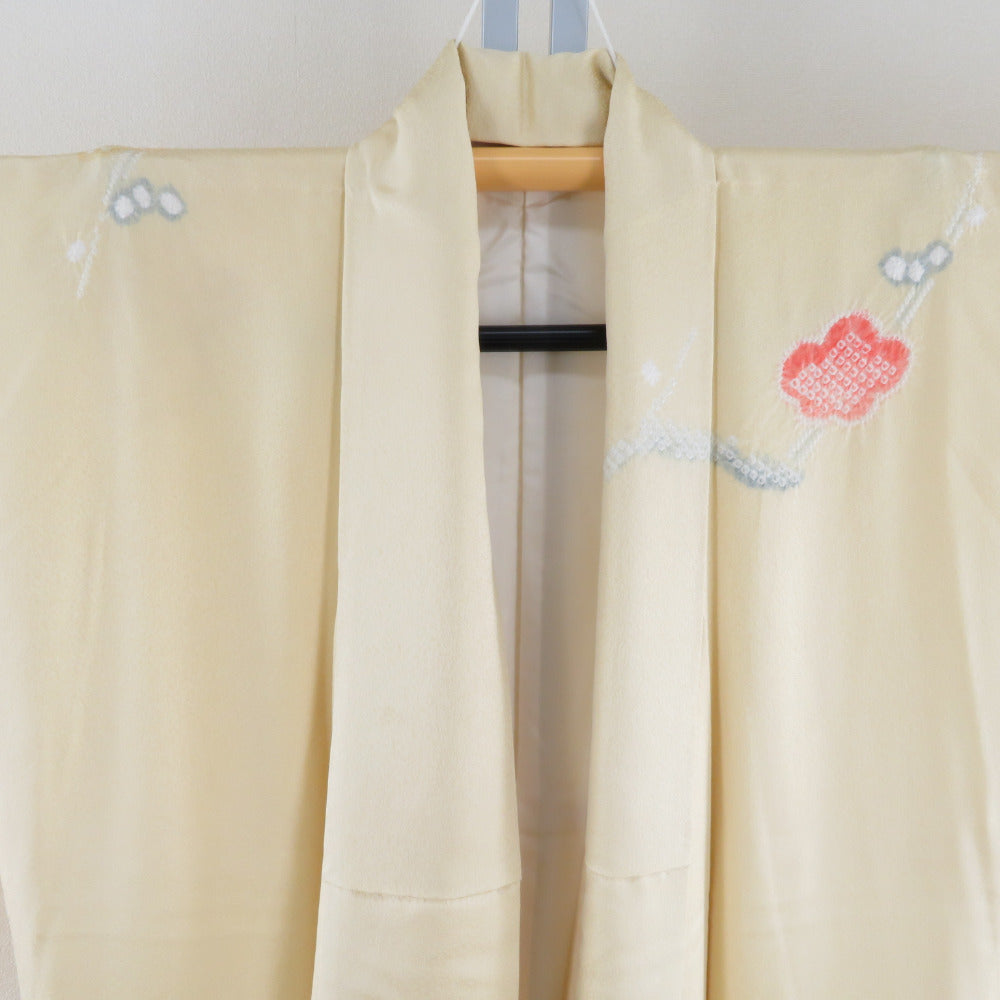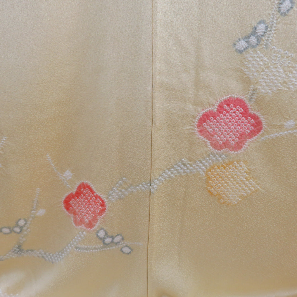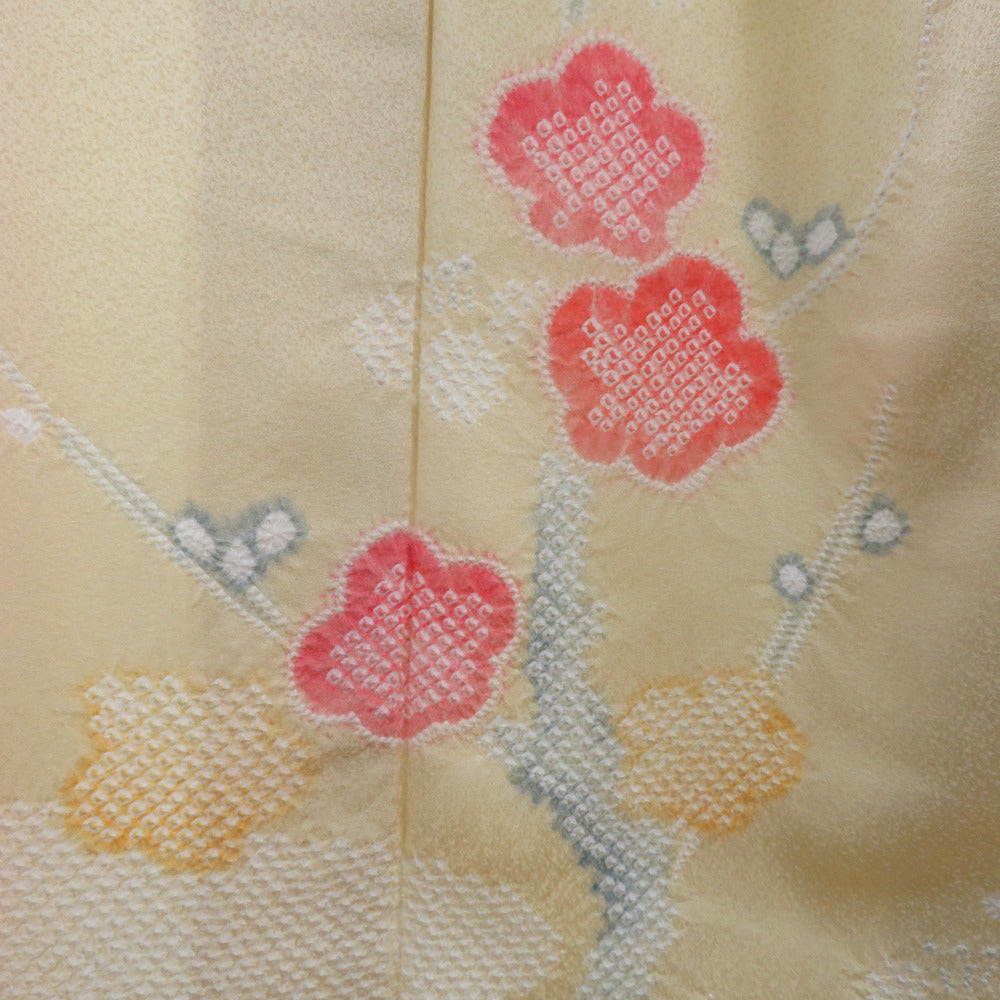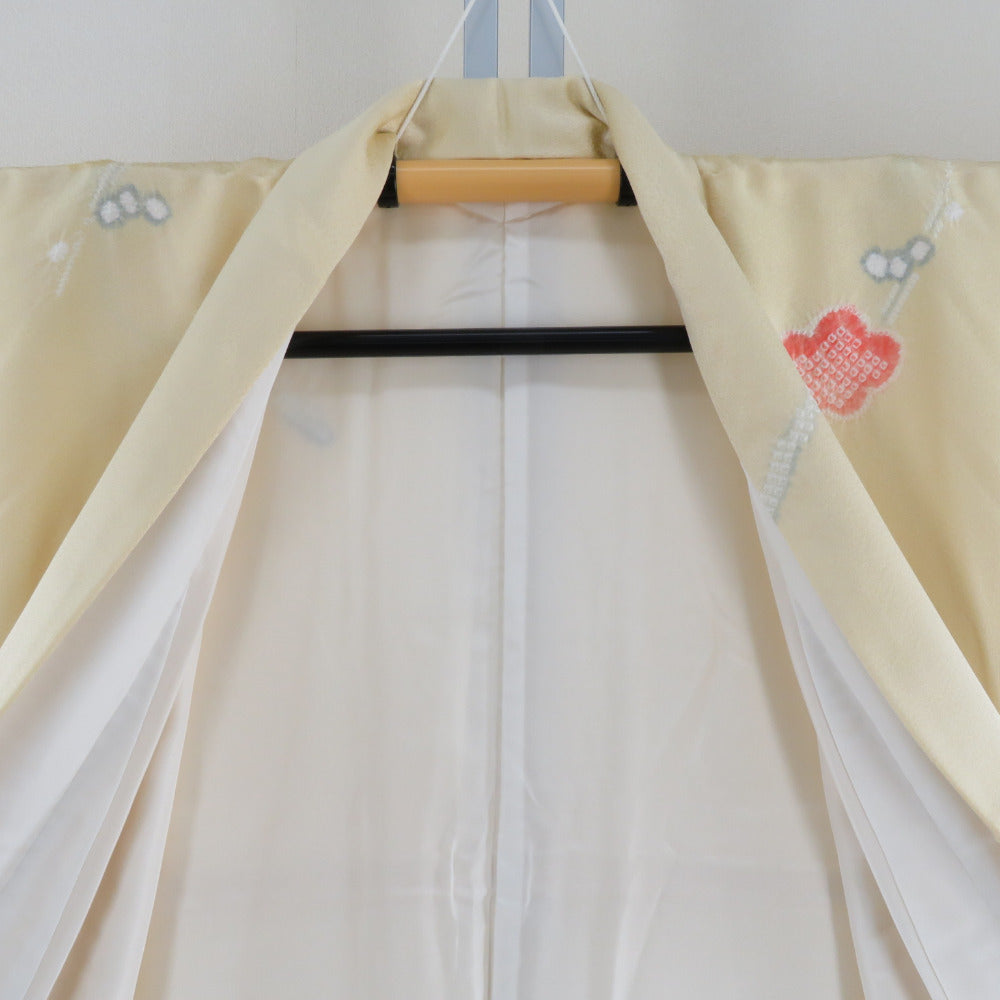 訪問着 黄色x赤色 絞り 梅文様 広衿 正絹 仕立て上がり着物 身丈161cm