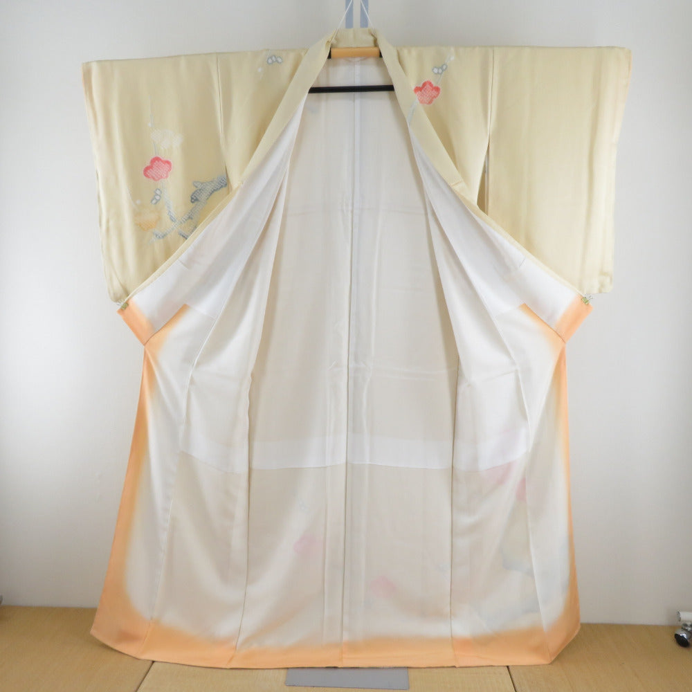 Title Visiting kimono Silk Plum pattern Yellow 63.4inch Women's