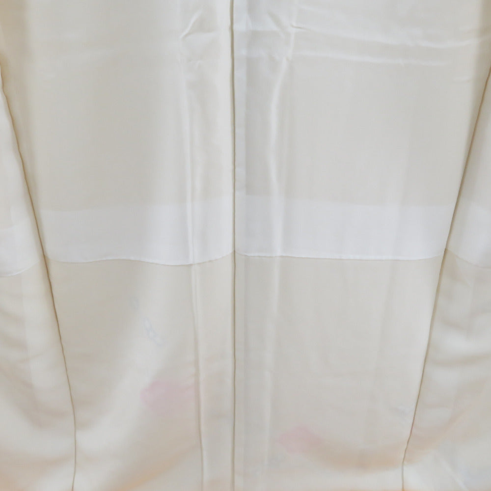 背中下や横縫い線辺にとても小さい汚れがございます。左衿にもとても薄いシミがございます。全体的に状態は良好です。