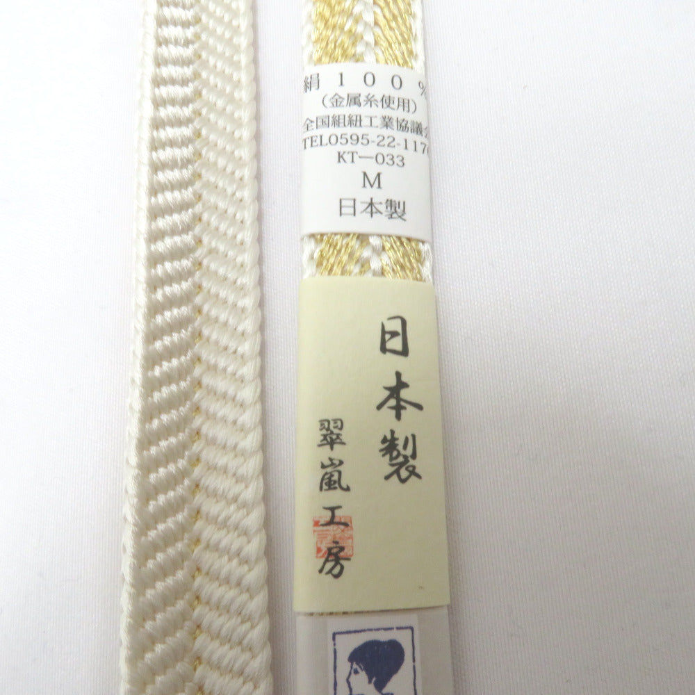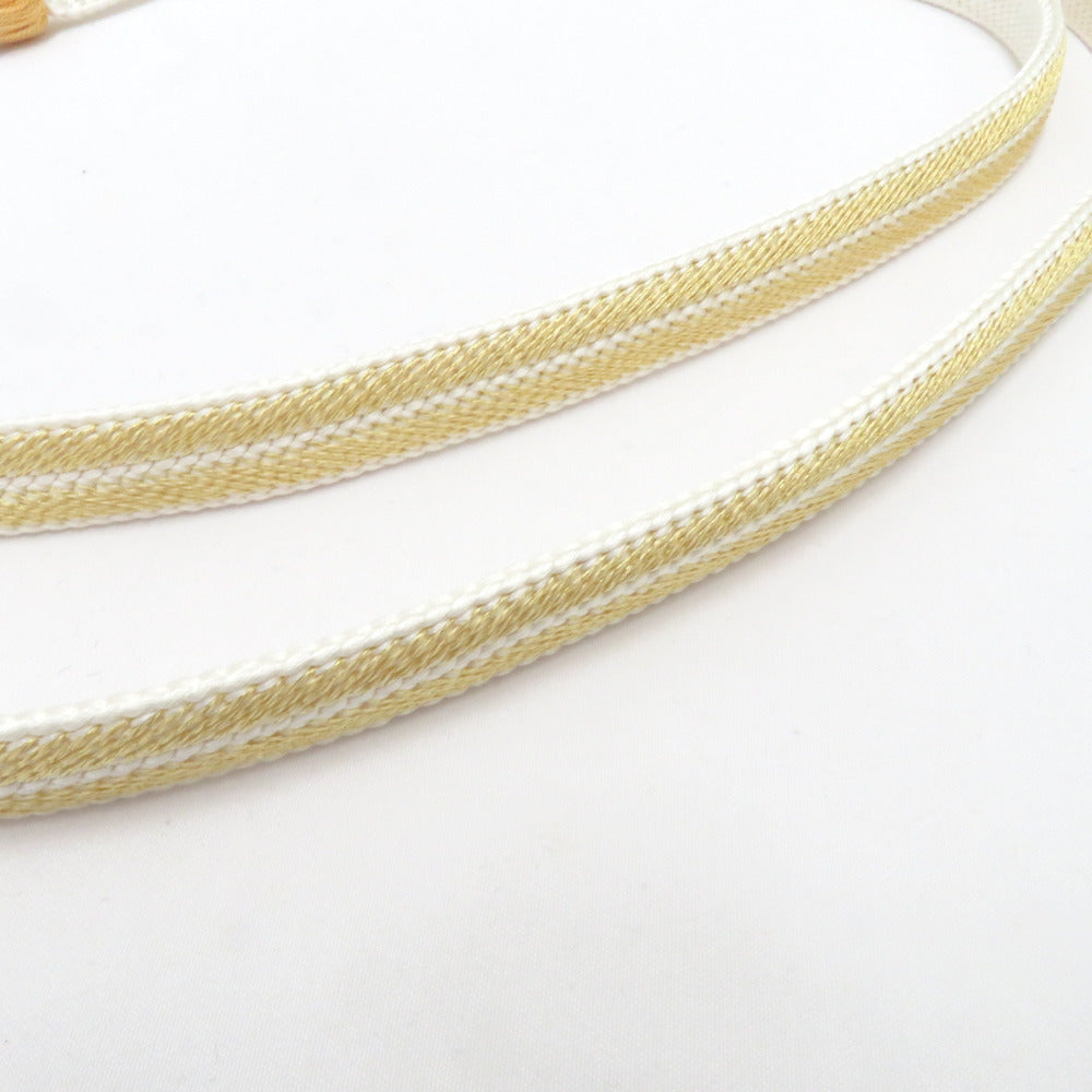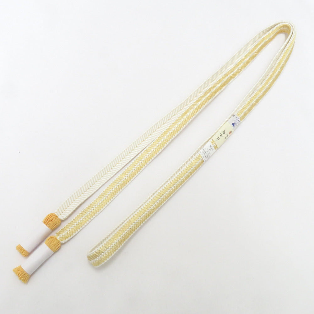 帯締め 平組 絹100% イエロー×ホワイト 京都 翠嵐工房 撚り房 帯〆 正絹 Mサイズ フォーマル 和装小物 レディース 日本製 長さ163.5cm