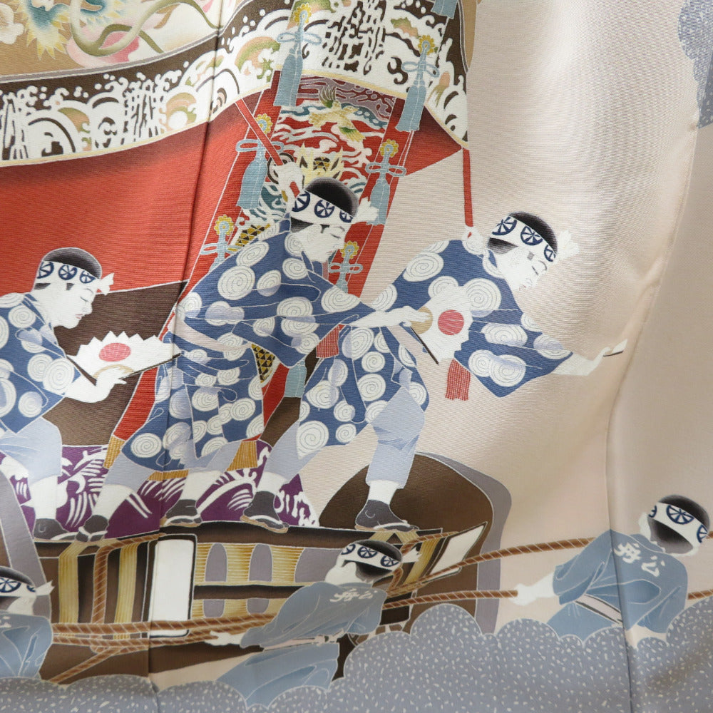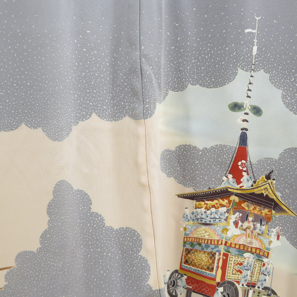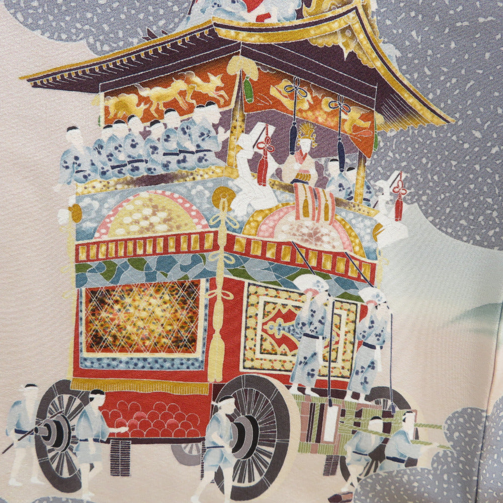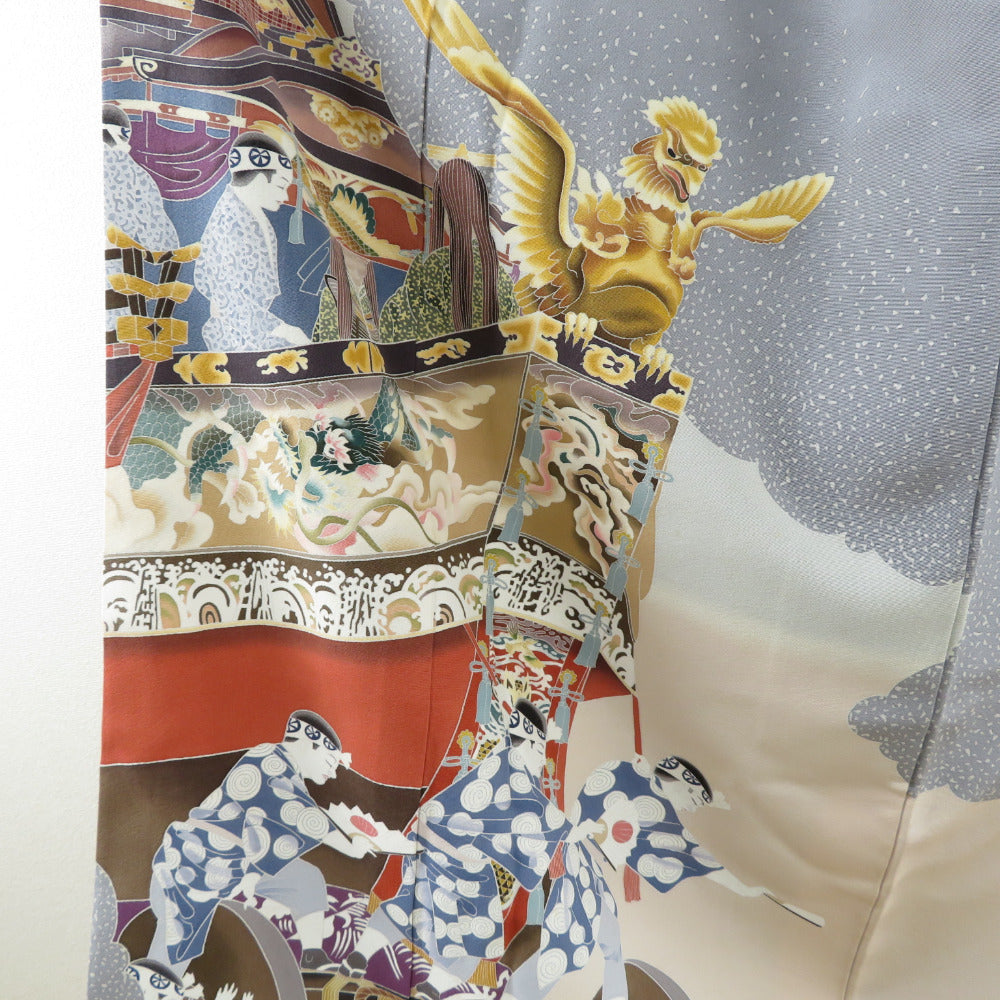 色留袖 本場加賀友禅染 木村州宏 作家物 山車紋様 灰色x多色 落款入 正絹 袷 広衿 一つ紋 フォーマル 仕立て上がり 身丈151cm