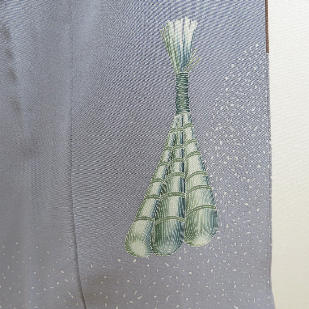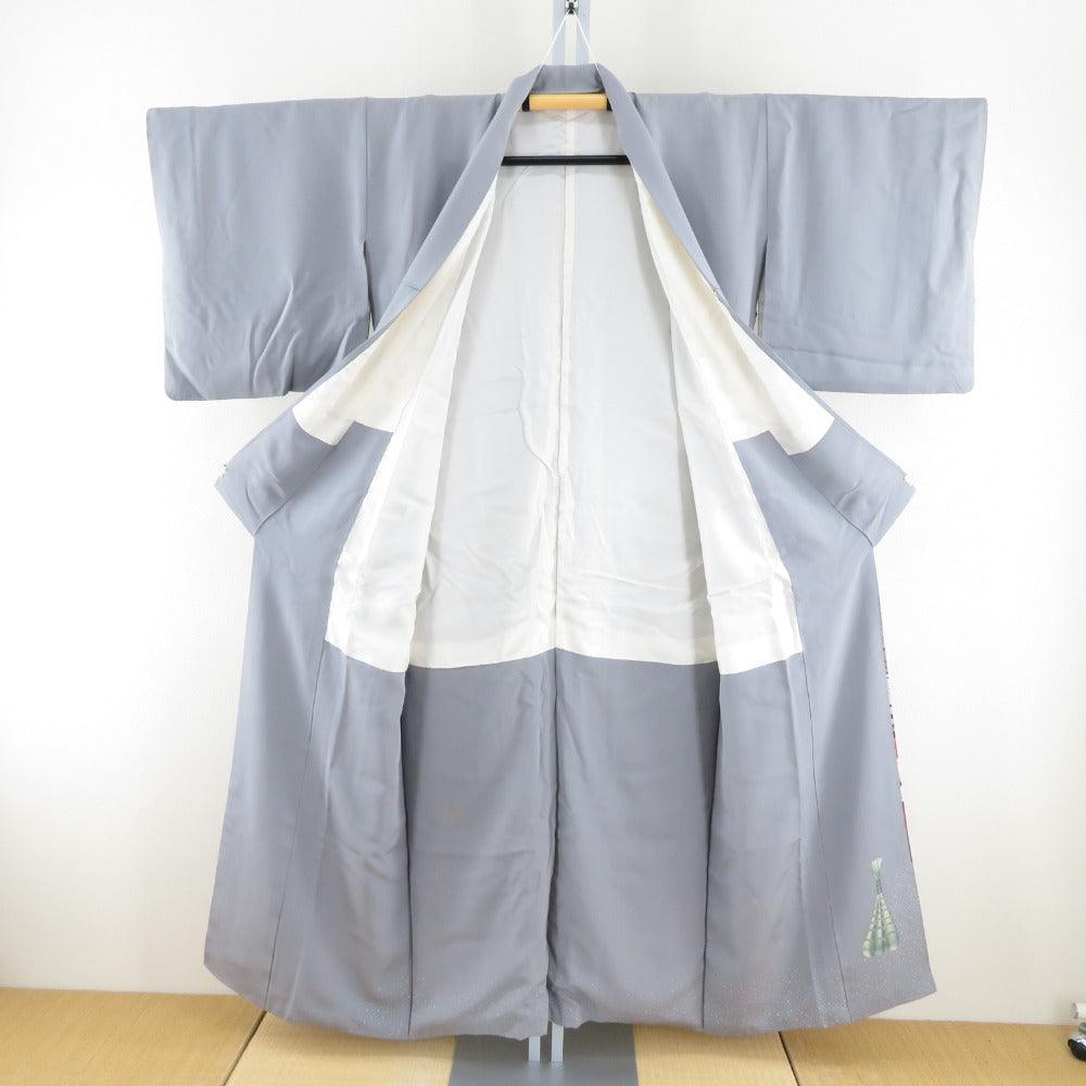 Title Coloured Tomesode Kimono Silk Float pattern Gray One family crest 59.4inch
