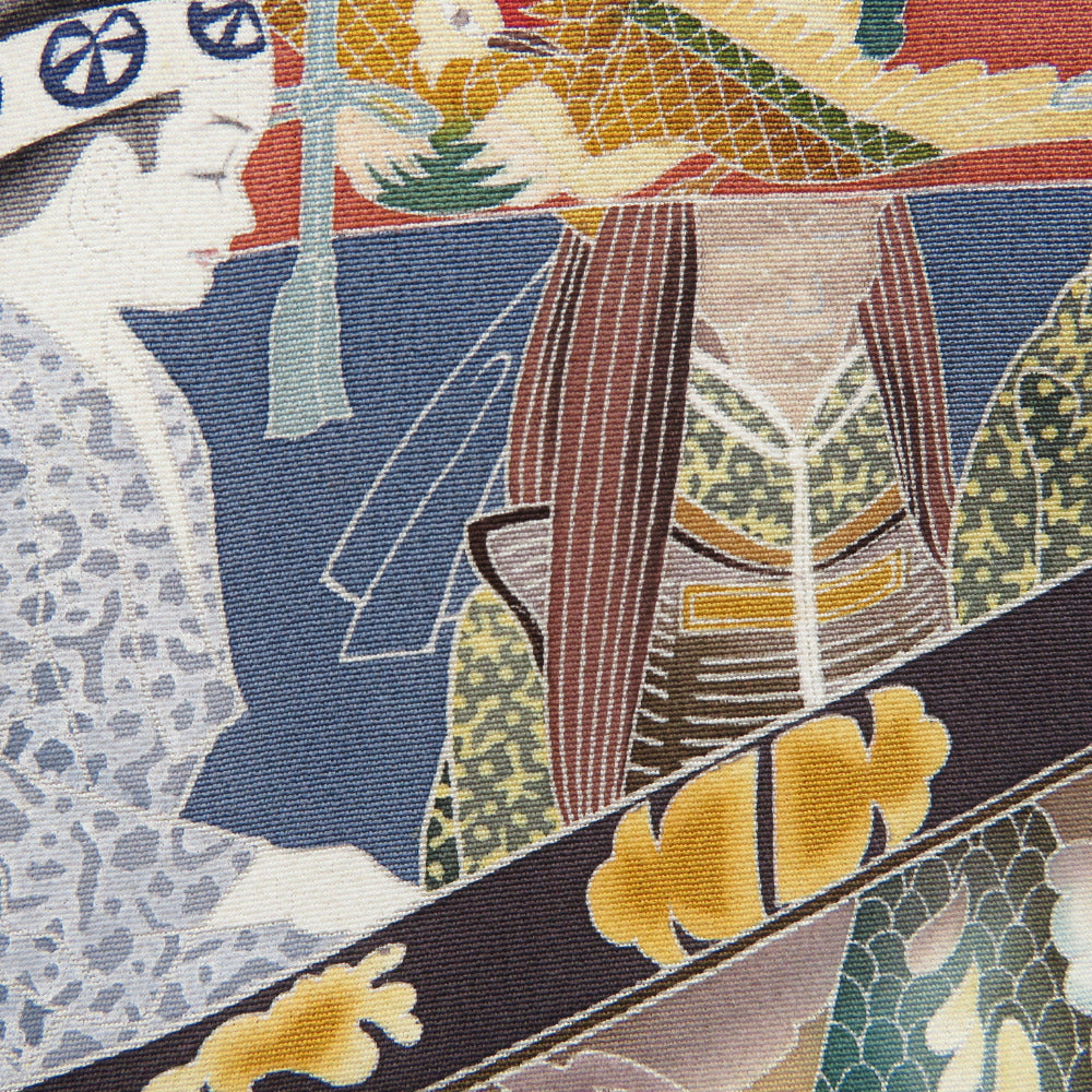 加賀友禅は出来上がるまでに多くの工程があり、その中でも特に重要な模様の下絵から彩色までを一人の作家さんが行います。模様の細かさ、またお祭りというテーマの独特な描写も素晴らしいです。