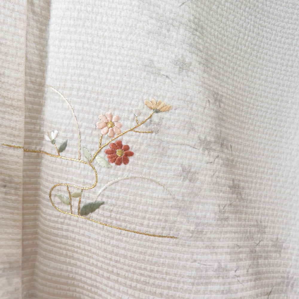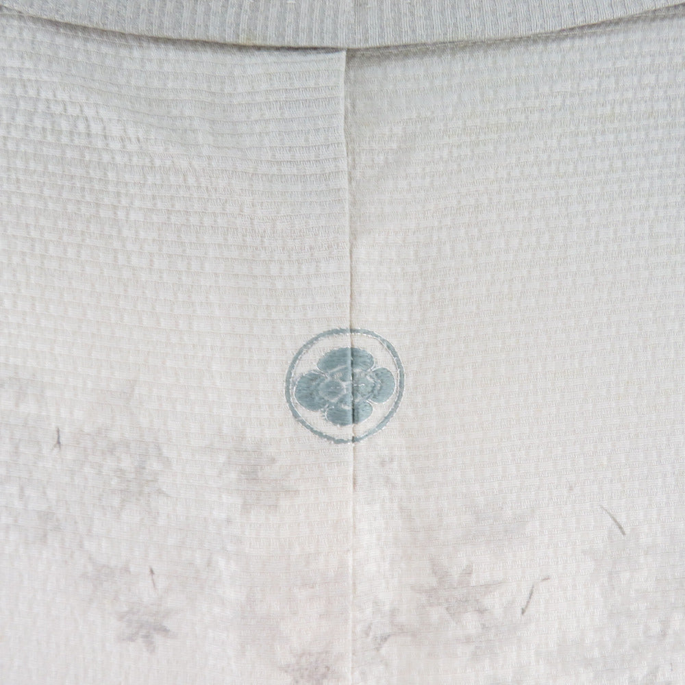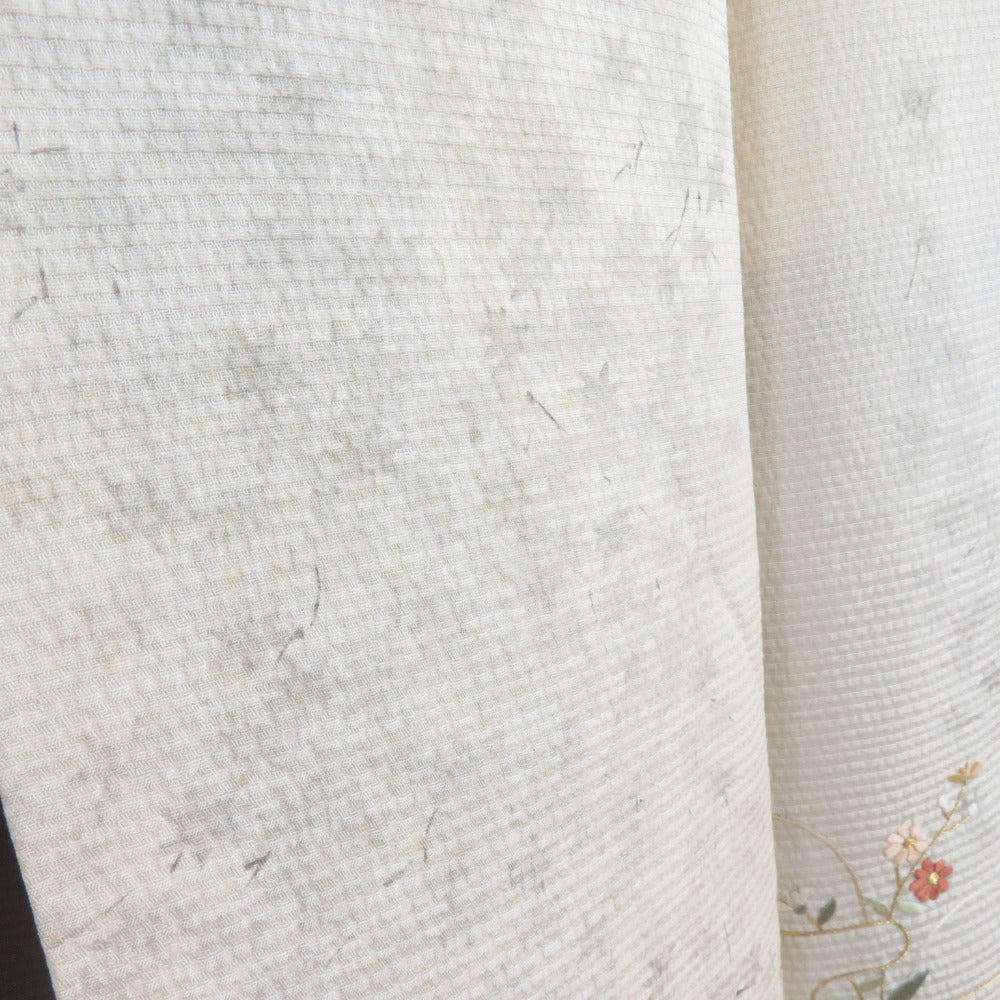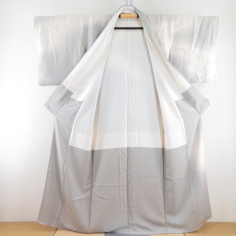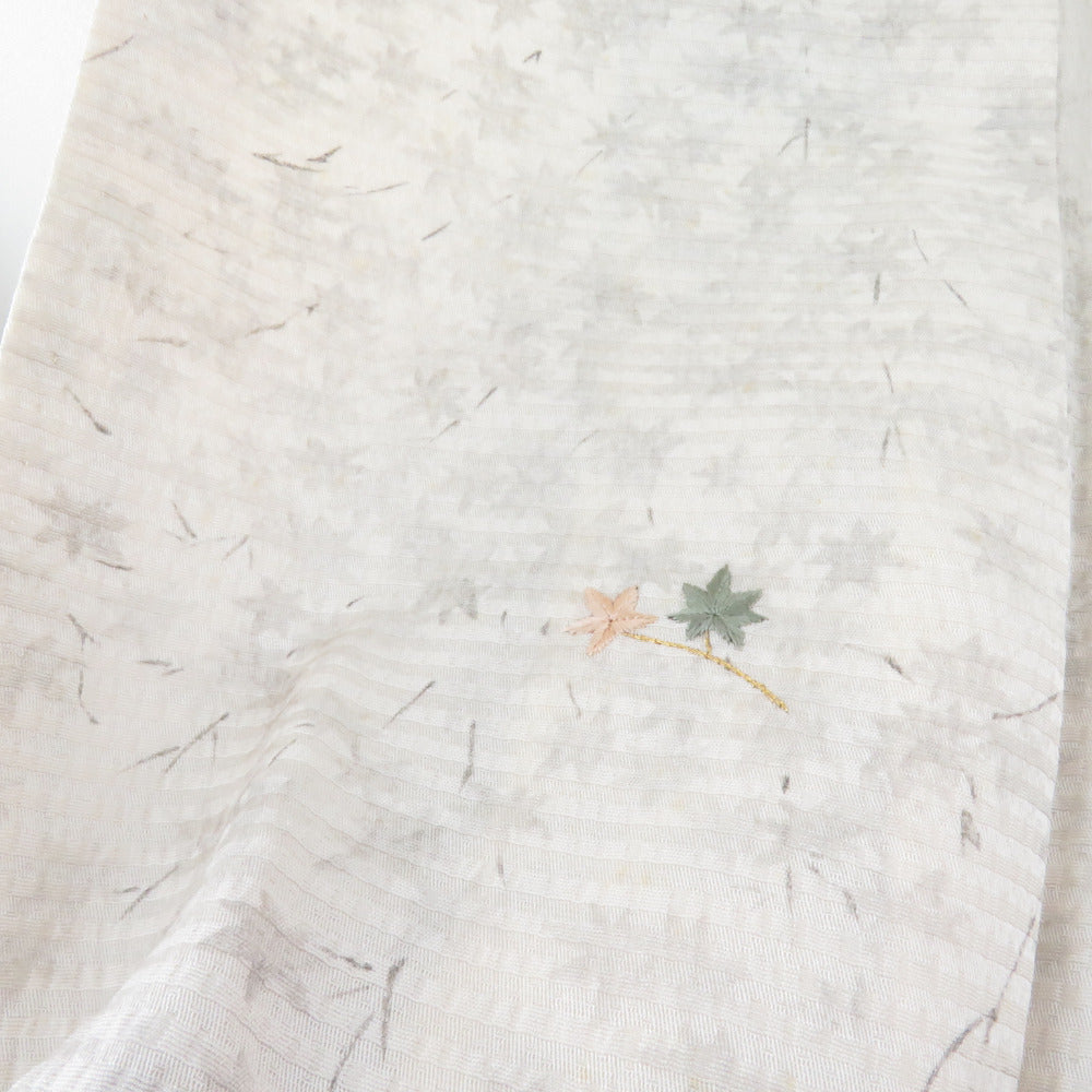 訪問着 刺繍 暈し 紅葉に秋草文様 灰ベージュ色 袷 広衿 正絹 一つ紋 木瓜紋 仕立て上がり着物 身丈159cm