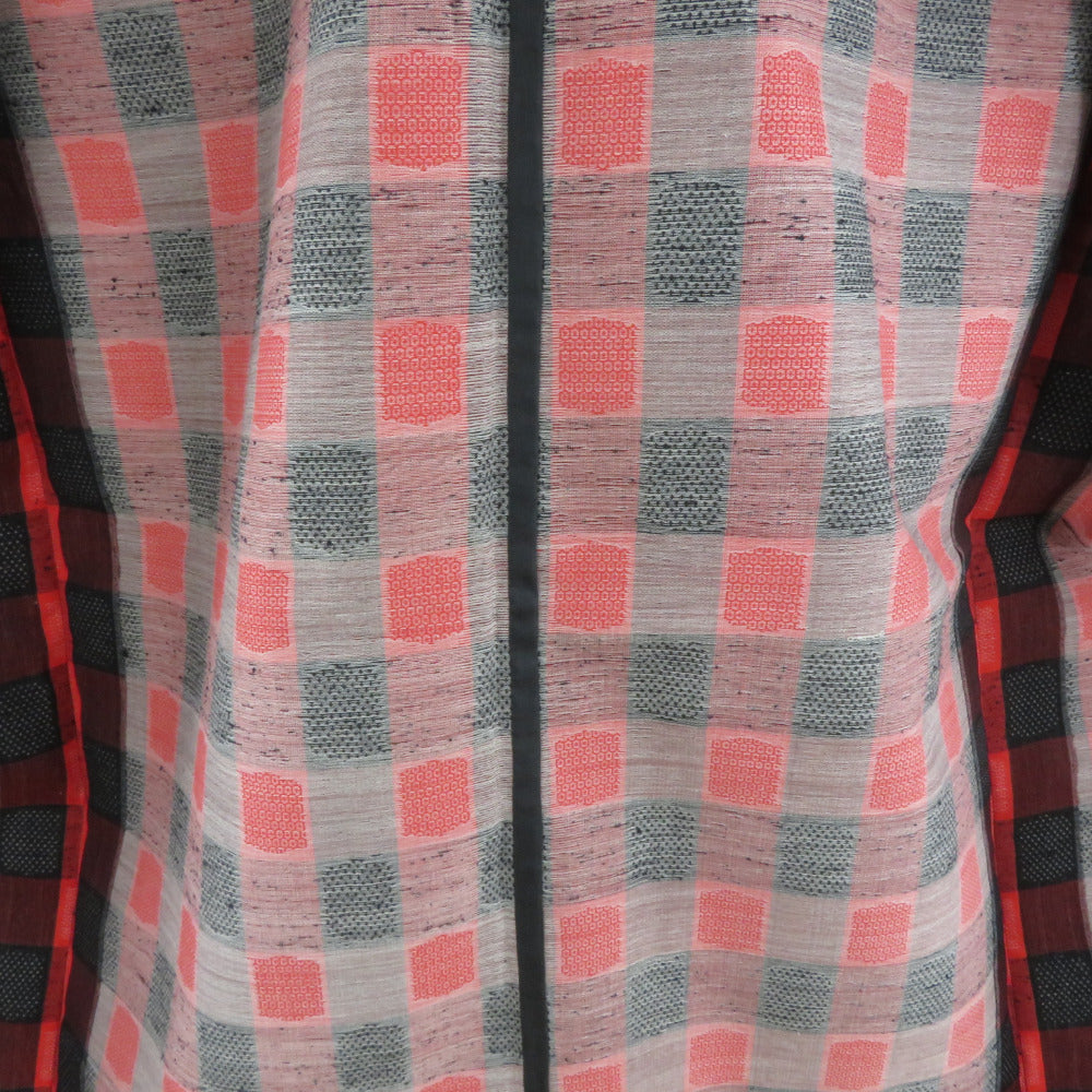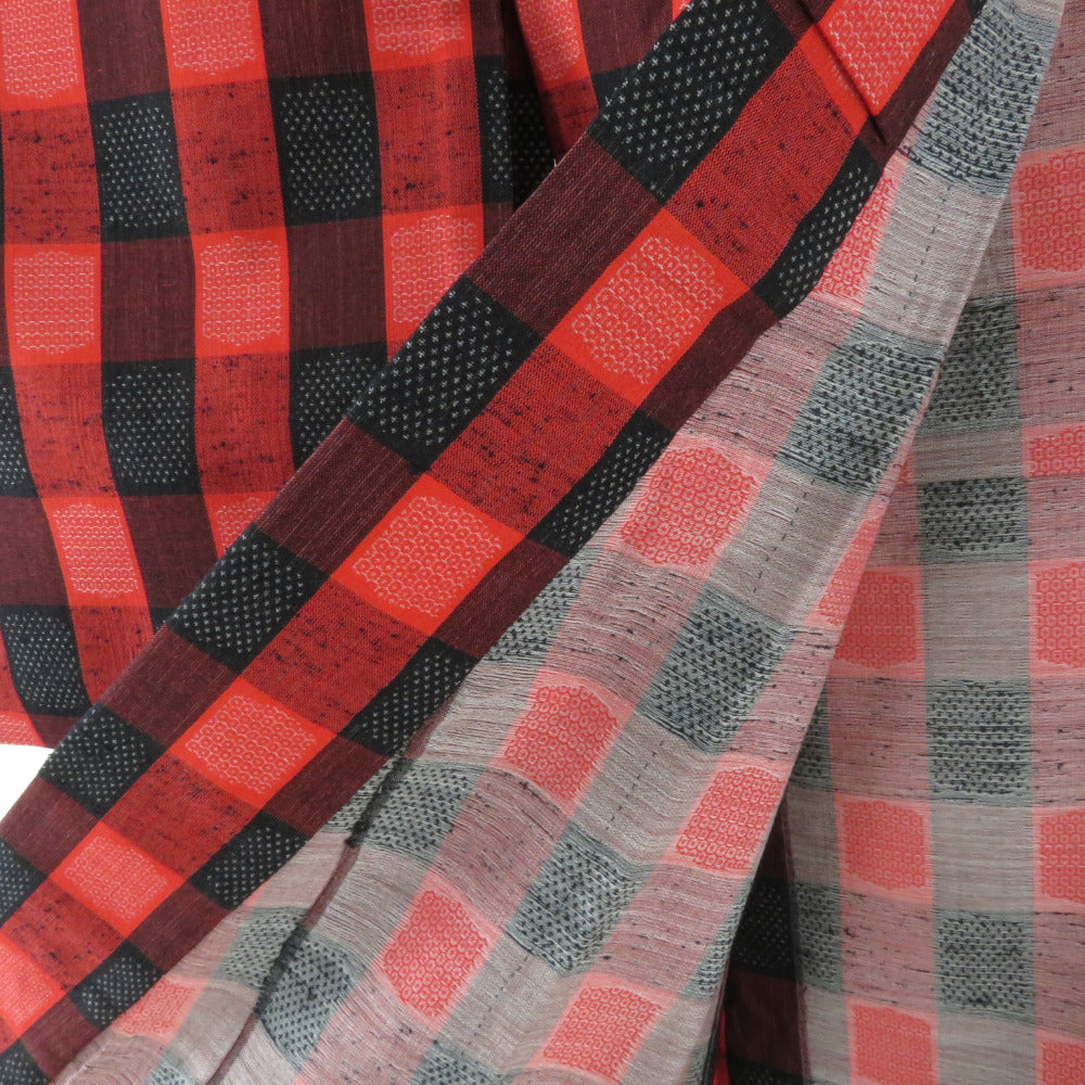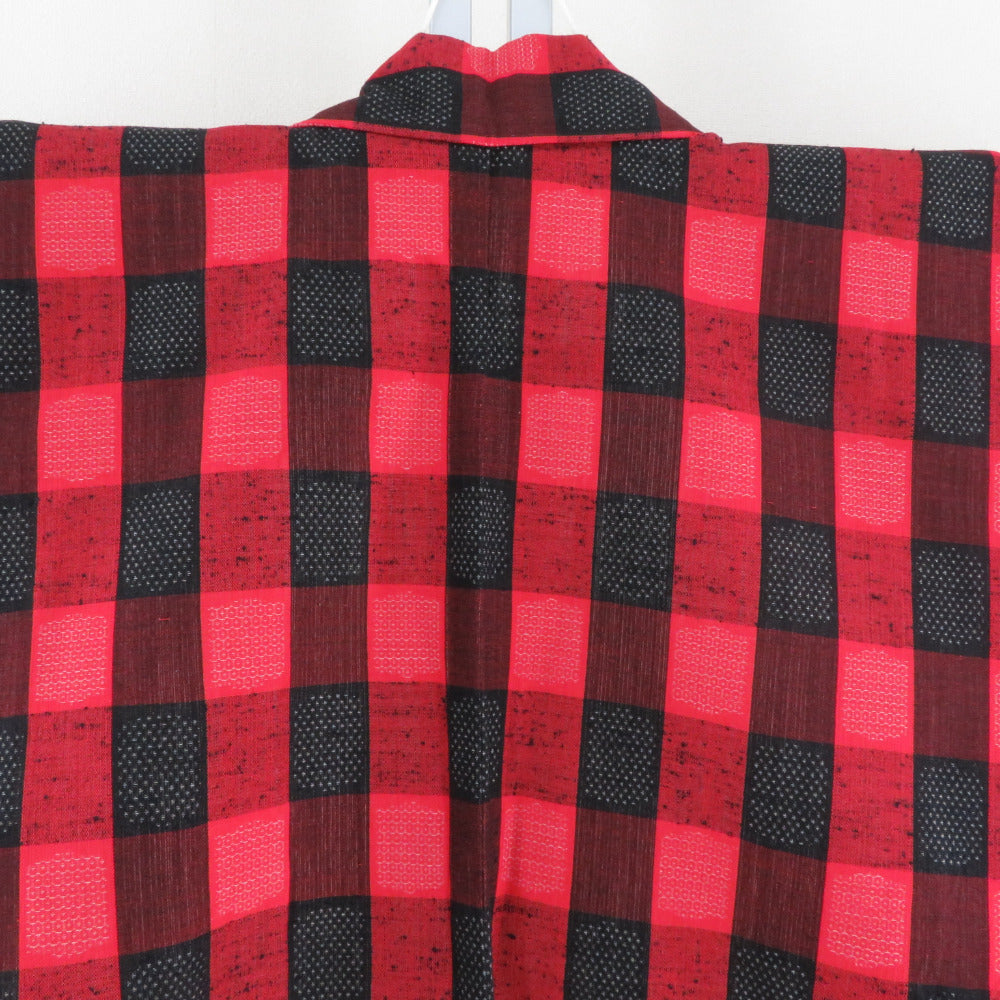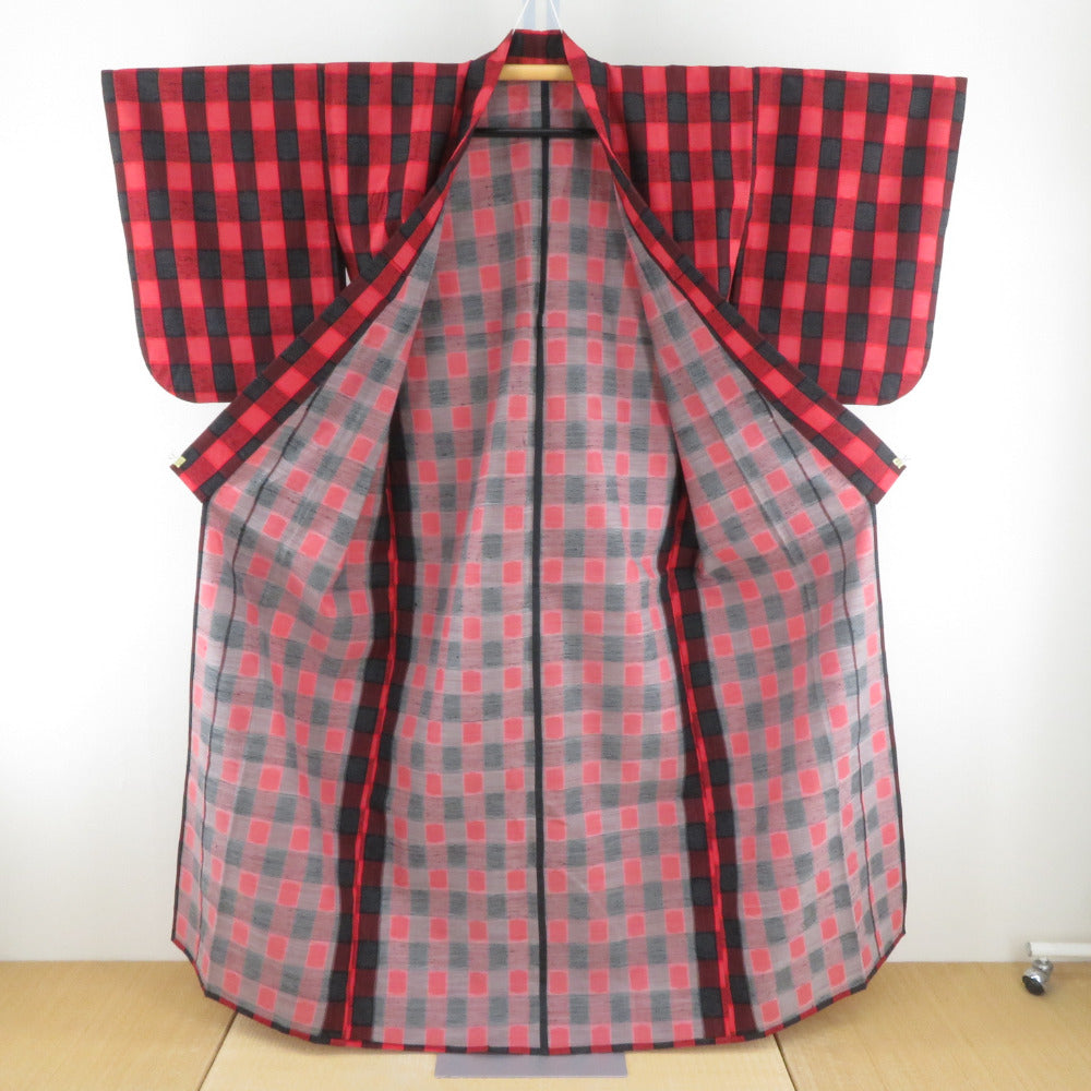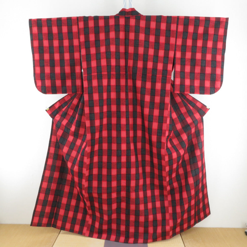 Title Wool kimono Checkered, tortoiseshell and kasuri Red 62.6inch Women's