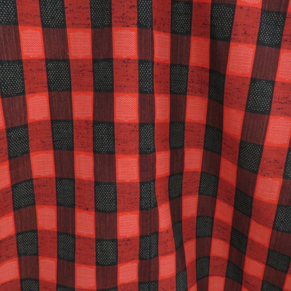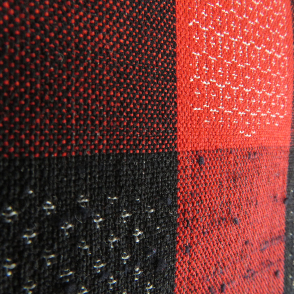 ウール着物 ウール 単衣 黒色x赤色 市松に亀甲や絣など バチ衿 カジュアルきもの 普段着物 仕立て上がり 身丈159cm