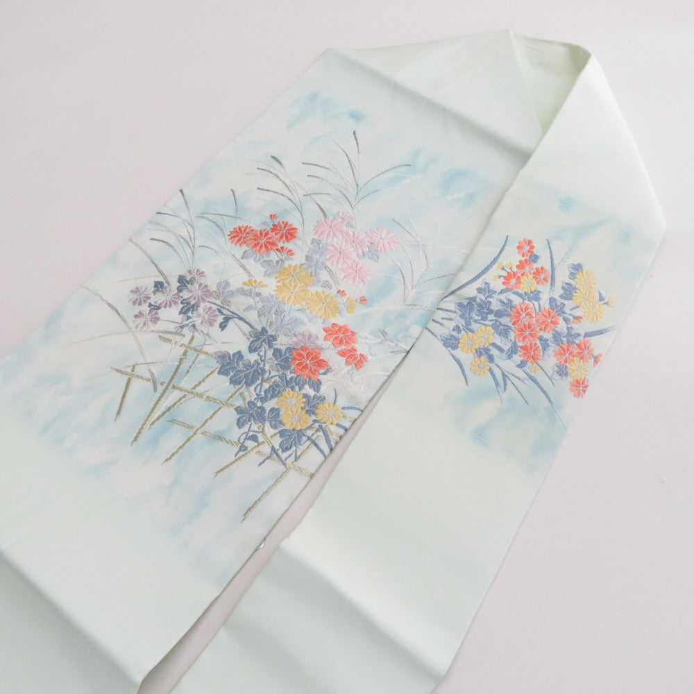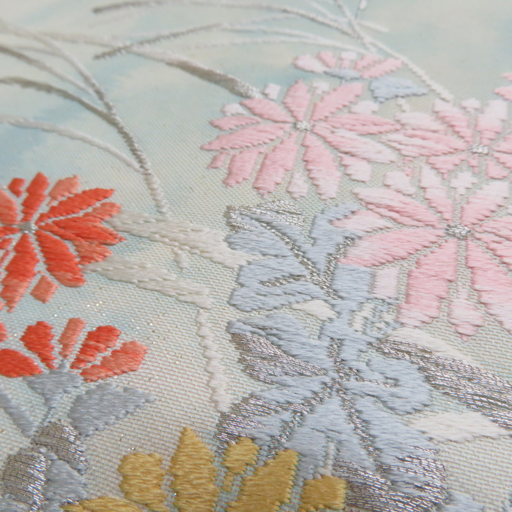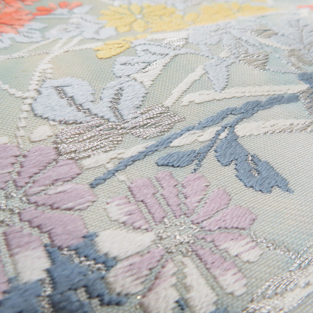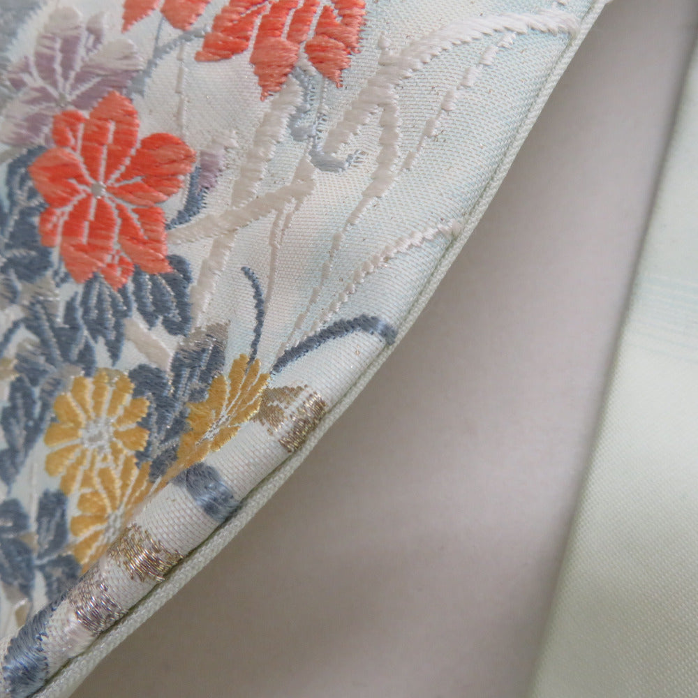 状態ランク = 4:やや傷や汚れあり 全体的に使用感がございます。手先にシワ、薄い汚れ、模様に軽く糸の飛び出がございます。芯が固めな帯です。 |