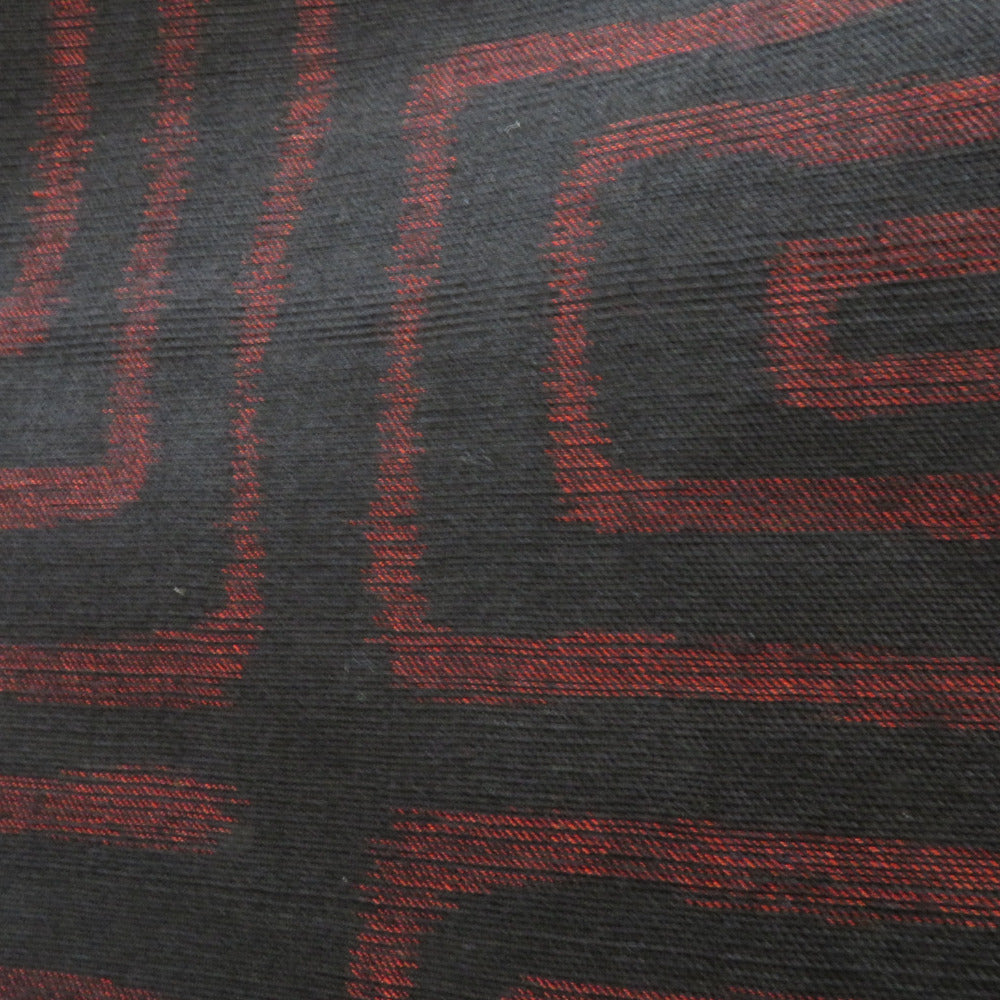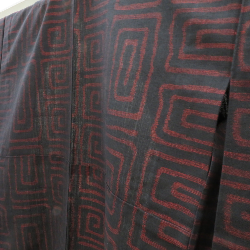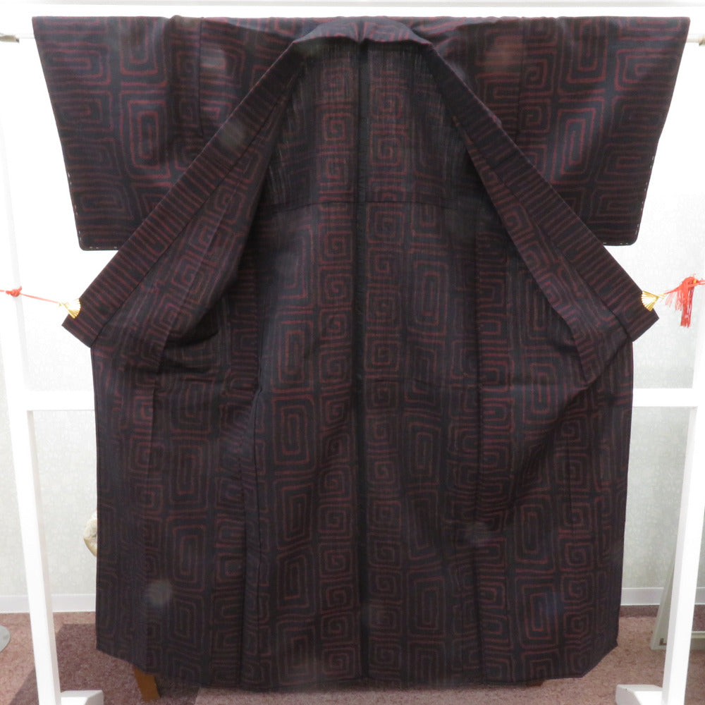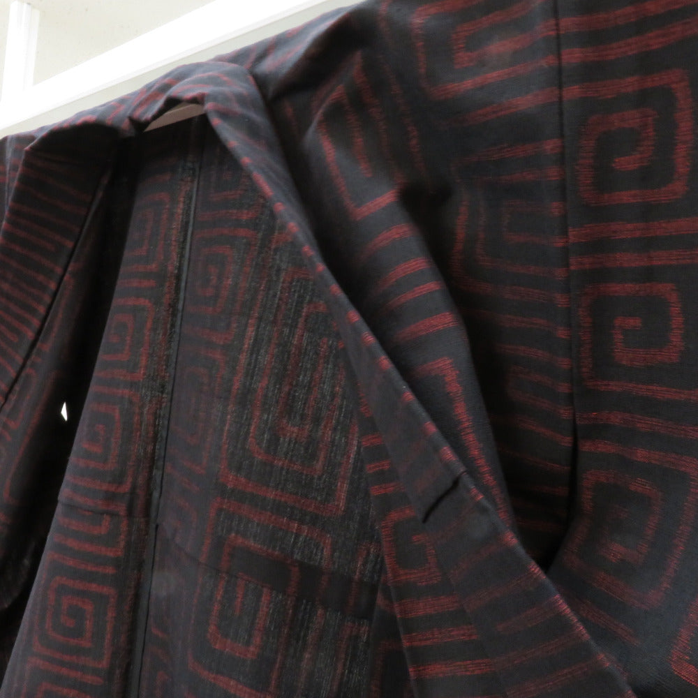 ウール着物 単衣 ブラック×レッド うずまき柄 バチ衿 カジュアルきもの 普段着物 仕立て上がり ウールきもの 和洋ミックス 身丈149.5cm
