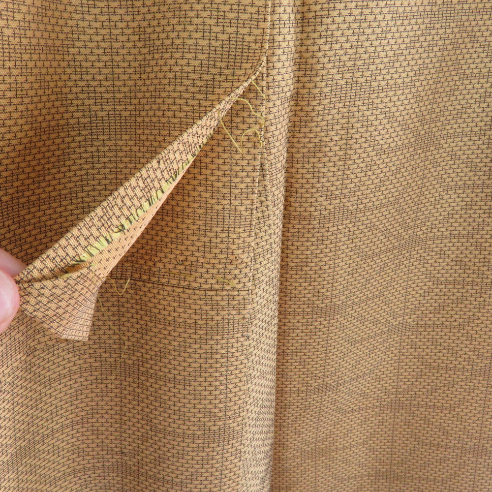 状態ランク = 4:やや傷や汚れあり 胴裏や身頃にいくつか薄い汚れがあります。 左衿下に生地のほつれがあります。 |