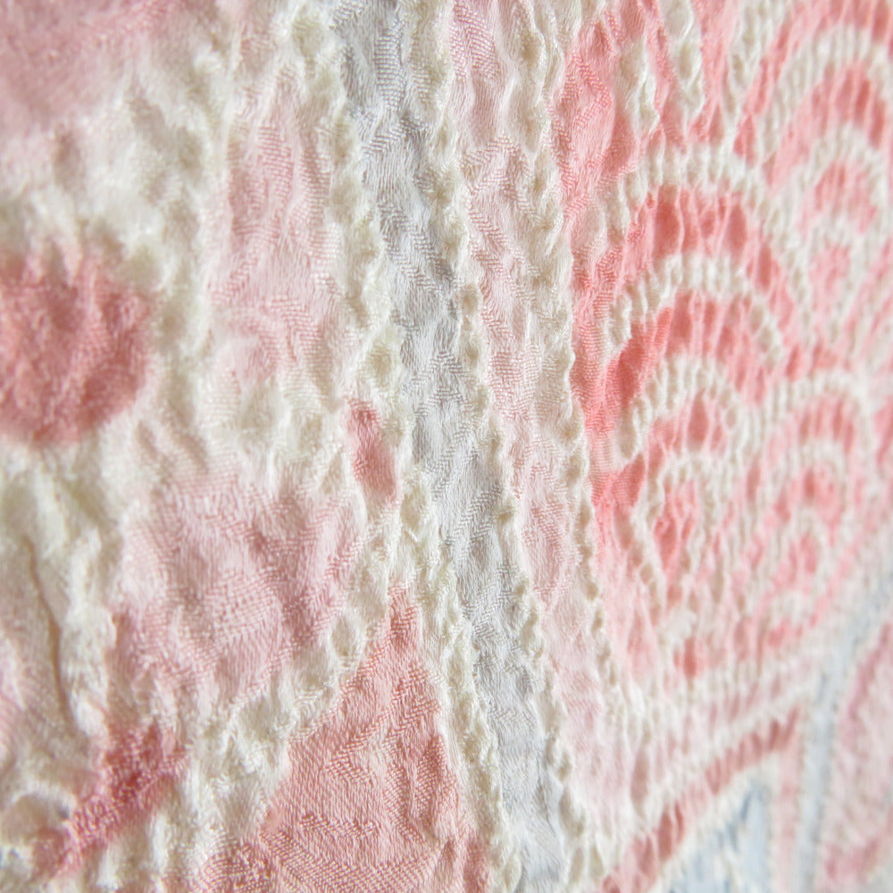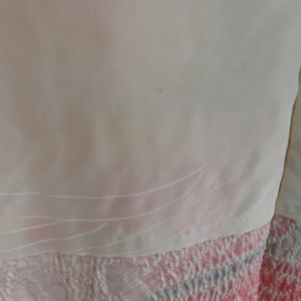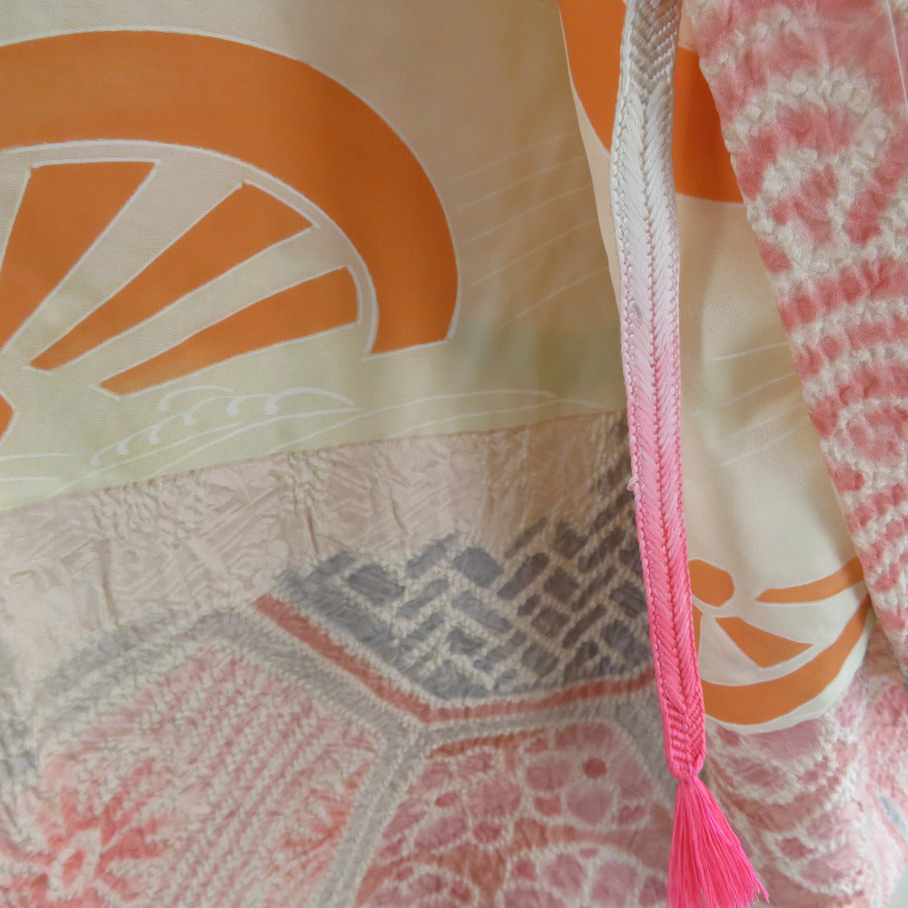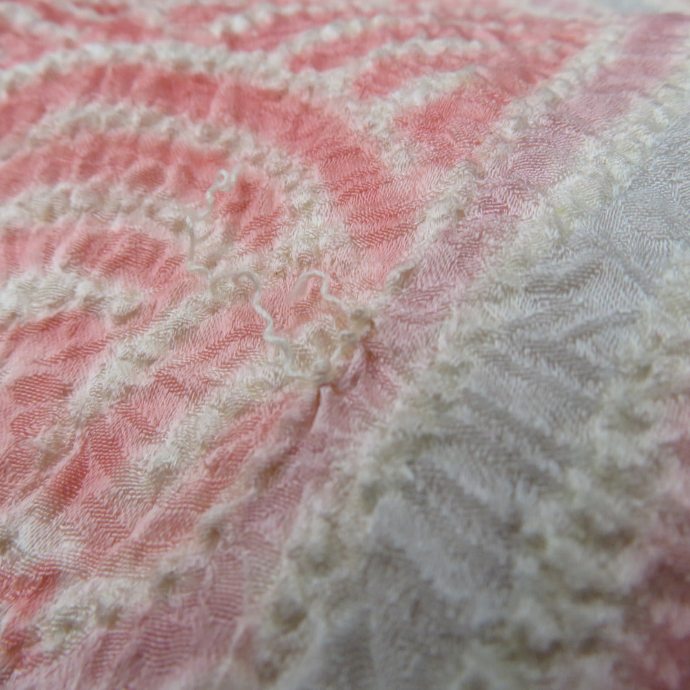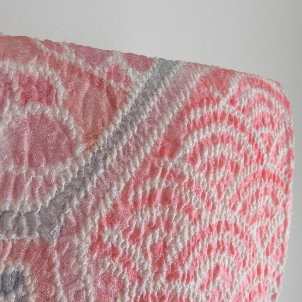羽織 正絹 絞り 白色xピンク色x灰色 亀甲に花模様 着物コート 着物用 ちりよけ 防寒 上着 リメイク シルク 身丈78cm