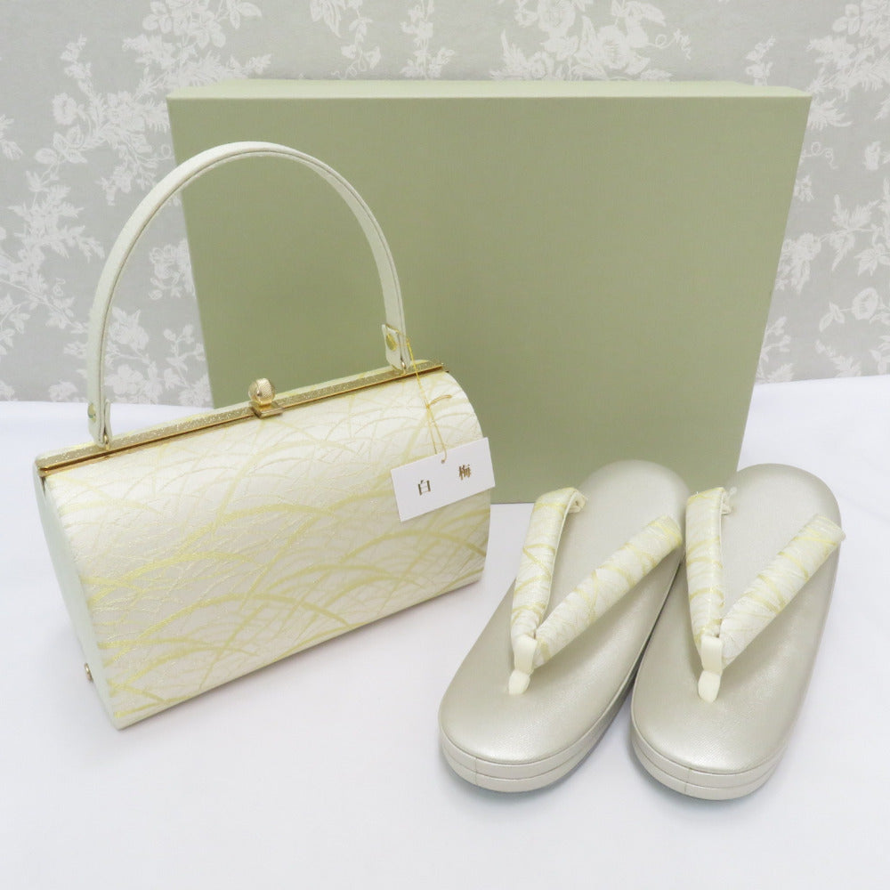 草履・バッグセット 白梅謹製 礼装用 Mサイズ フォーマル ゴールド×ホワイト シャンパンゴールド 芝 24.0cm 日本製 牛皮底面