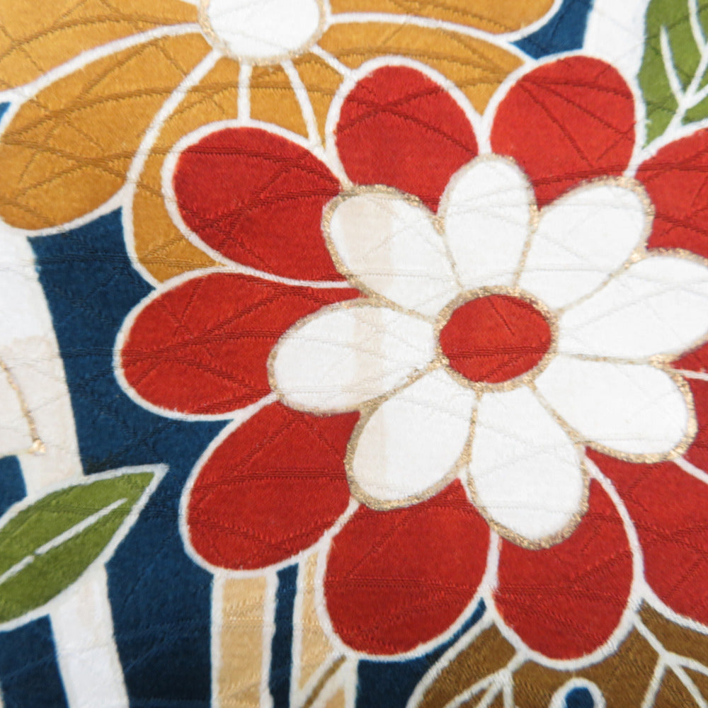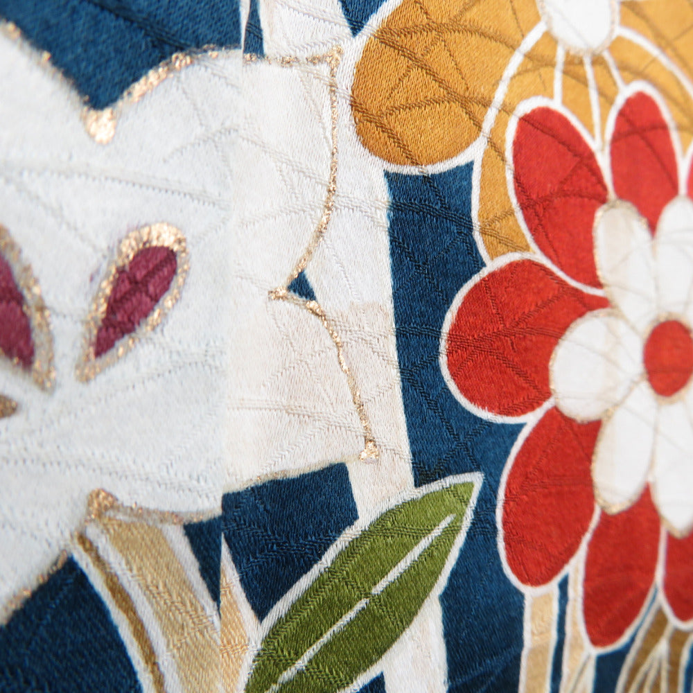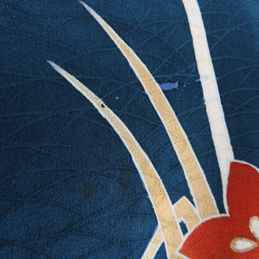 A cool style tsukesage with its main blue color. It has some stains here and there, but overall still wearable. Wear it with fukuro obi for formal events.