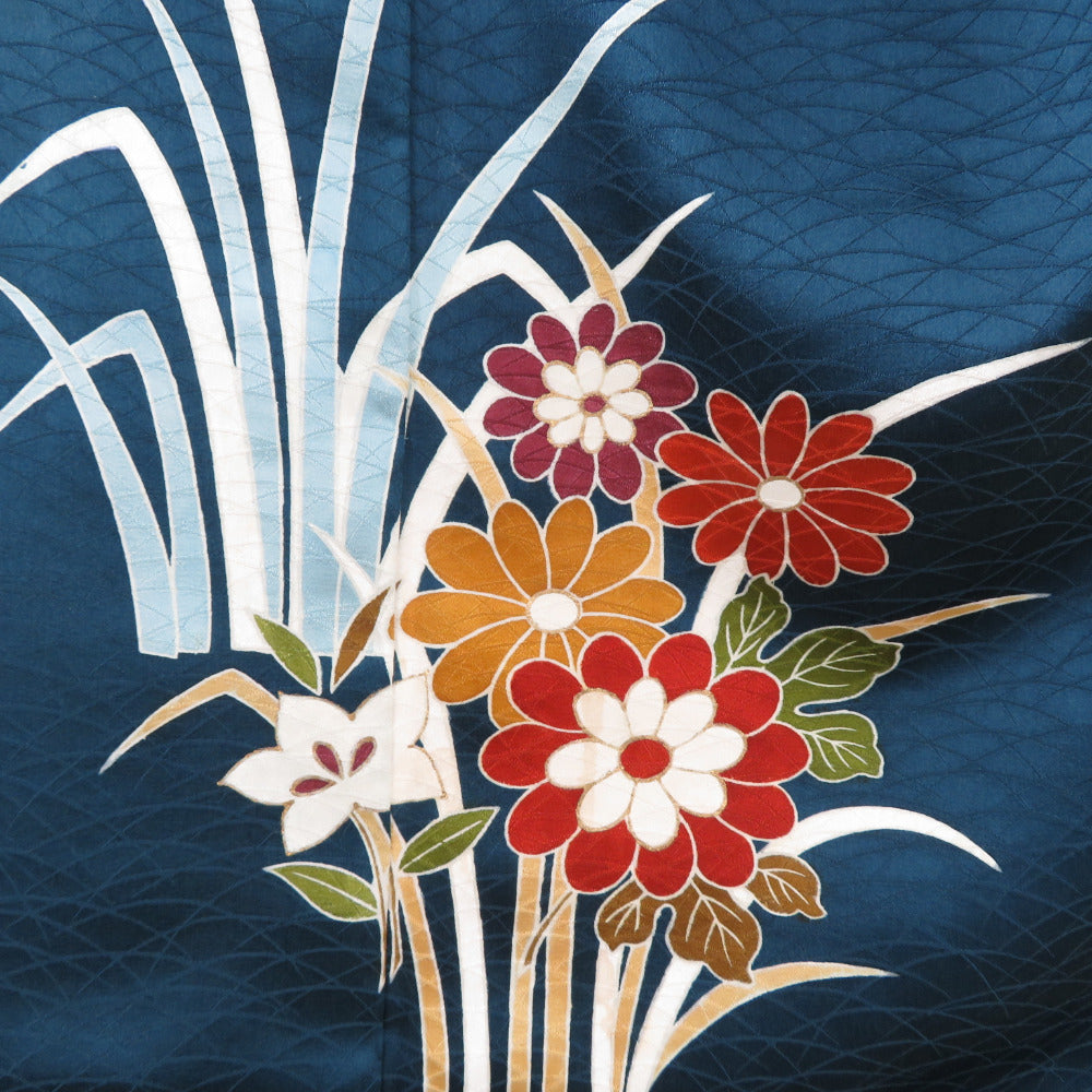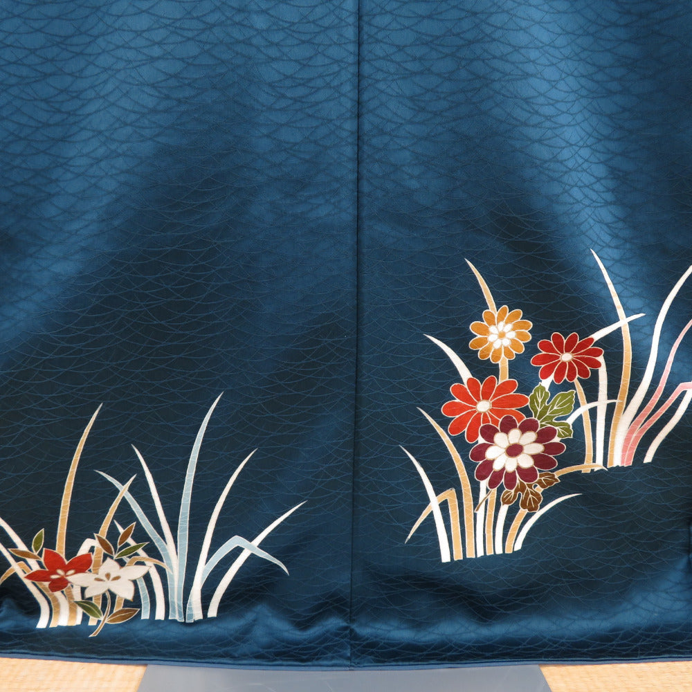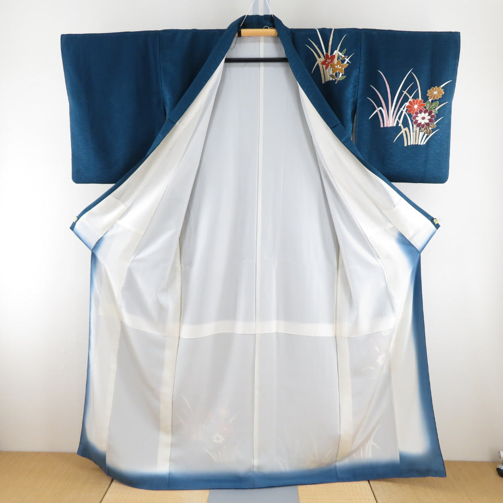Title Tsukesage Kimono Silk Flower pattern Blue 62.6inch Women's