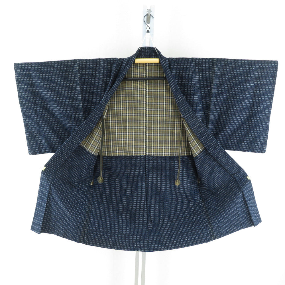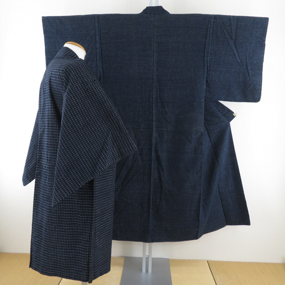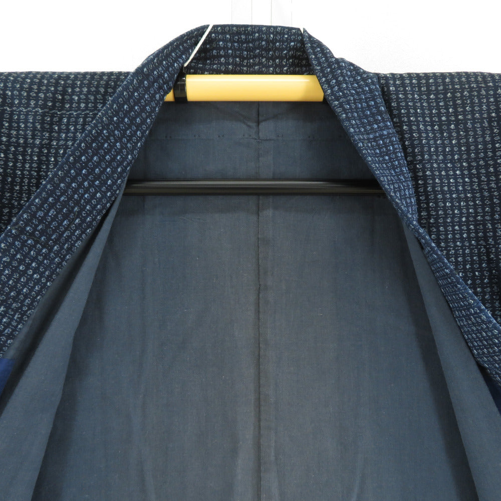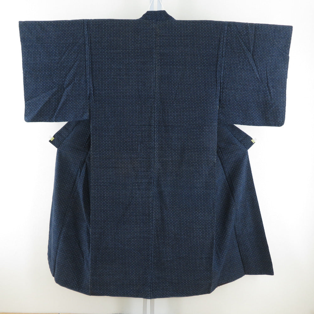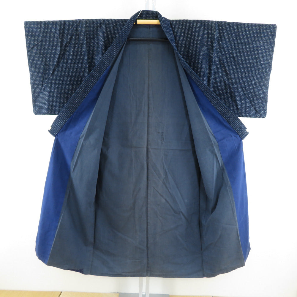 Title Antique Men's Kimono Ansemble Cotton student kasuri Navy 52.4inch