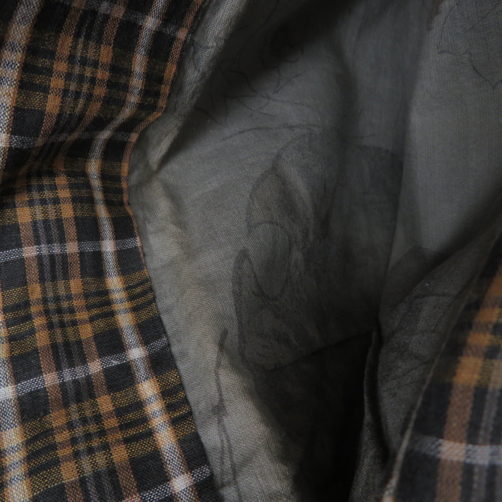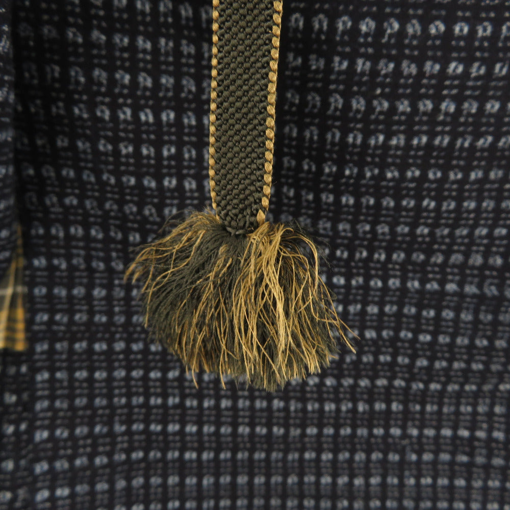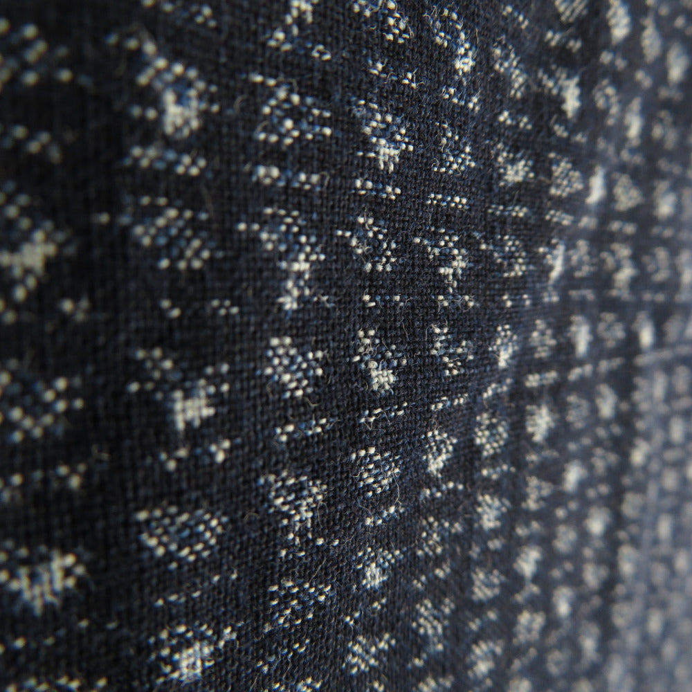 アンティークな男着物・羽織のアンサンブルでございます。文人、つまり作家や文筆家が好んで着ていたといわれる書生絣が特徴的でございます。羽織の袖浦に隠れている日本三景の模様もまた独特です。カジュアル着なので日常の中で気軽にご使用いただけます。