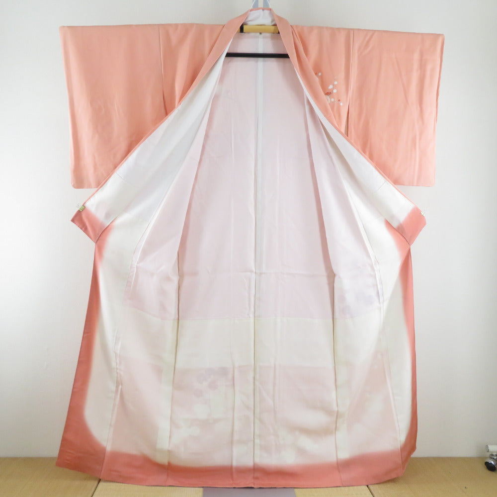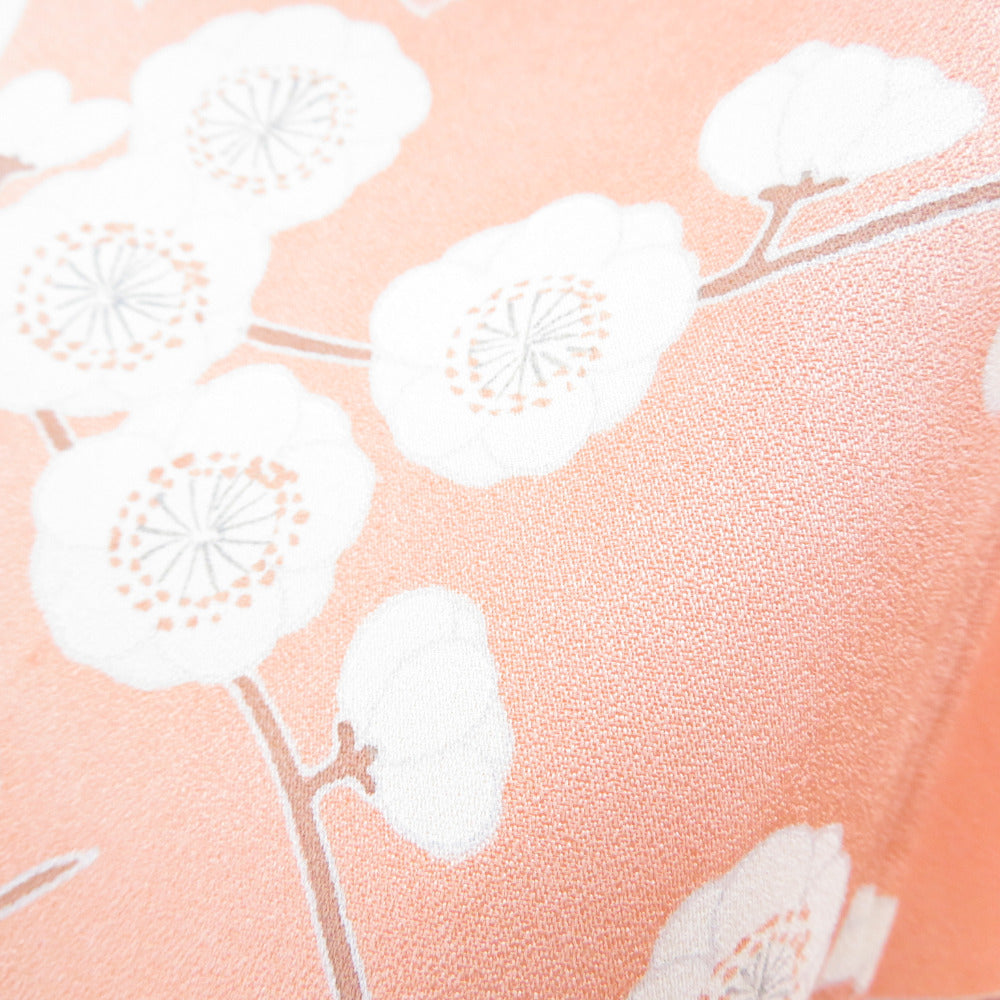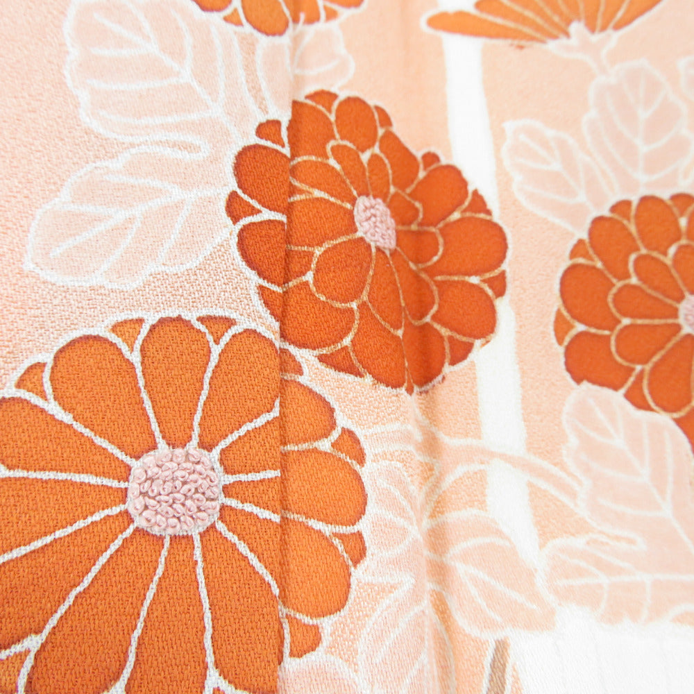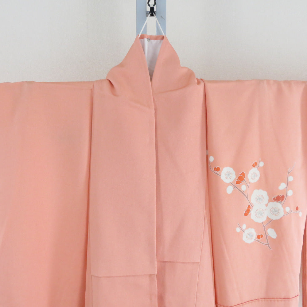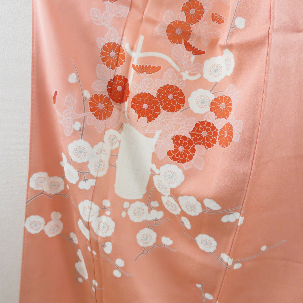 付下げ 菊に梅文様 袷 広衿 橙色 正絹 仕立て上がり 紋なし カジュアル着物 身丈158cm