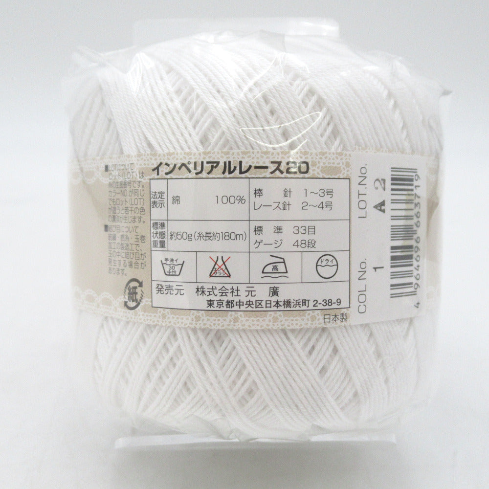 元廣(MOTOHIRO) レース糸 インペリアル レース20 COL.1 ホワイト 20番 50g×5玉セット 初心者向け 未使用品