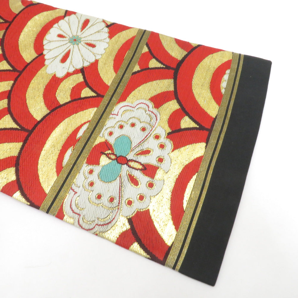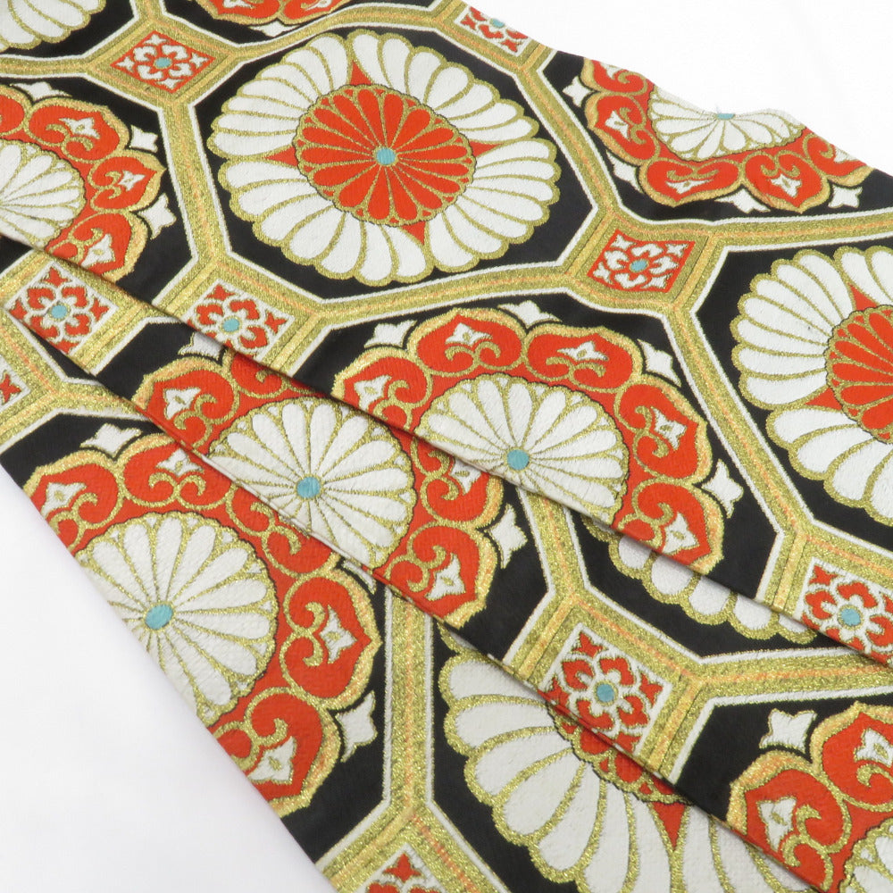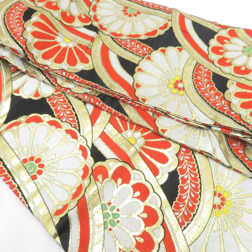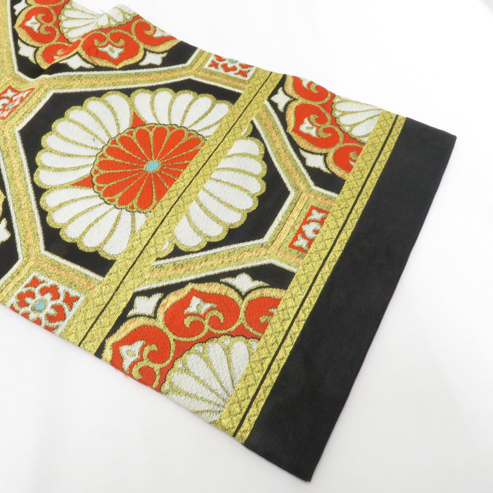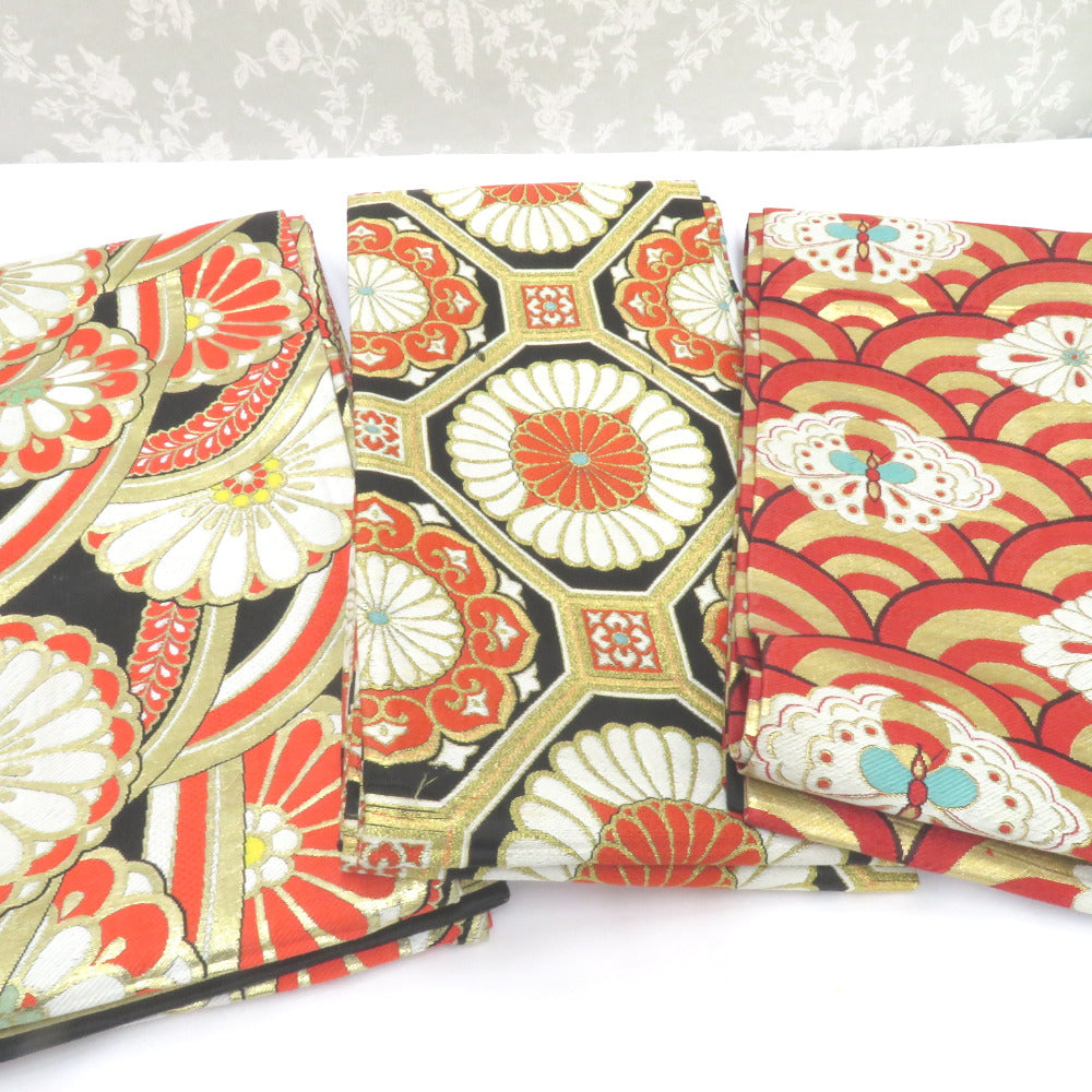 子供帯 まとめて3点セット 正絹 丸帯仕立て 黒×金×オレンジ 赤×金×白 七五三 レトロ 大正ロマン アンティーク 舞台衣装