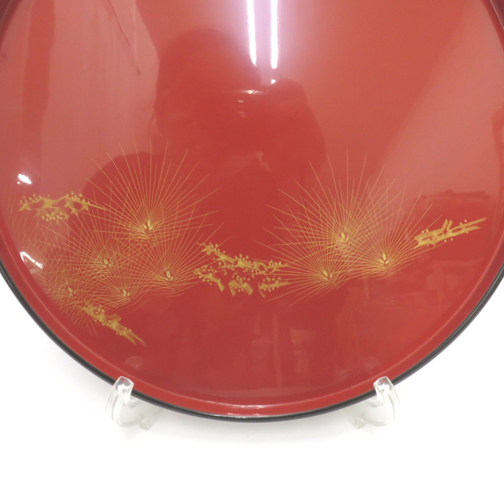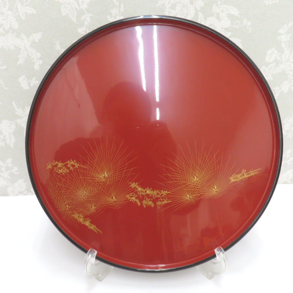 骨董・民芸品 輪島塗 丸盆 平盆 お盆 漆器 沈金 能登輪島 漆芸 天然木 箱有