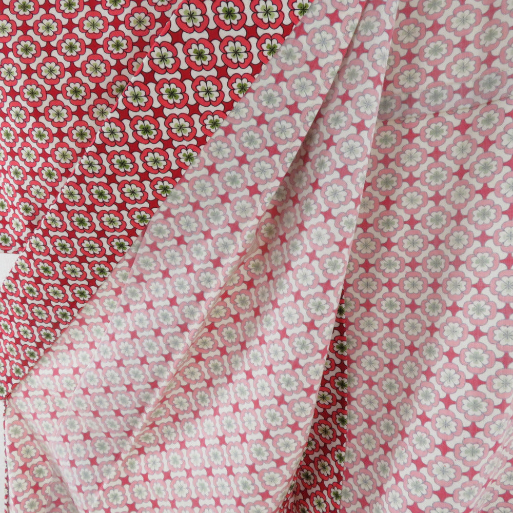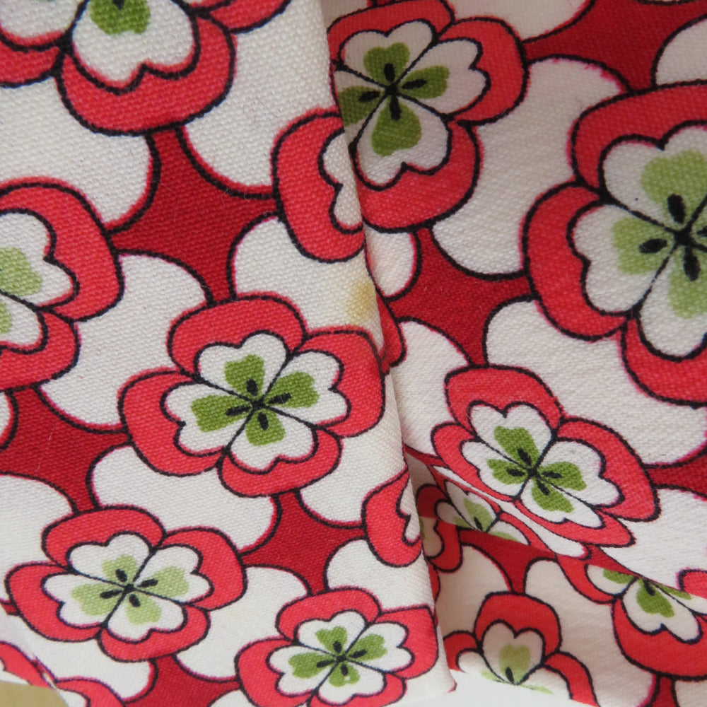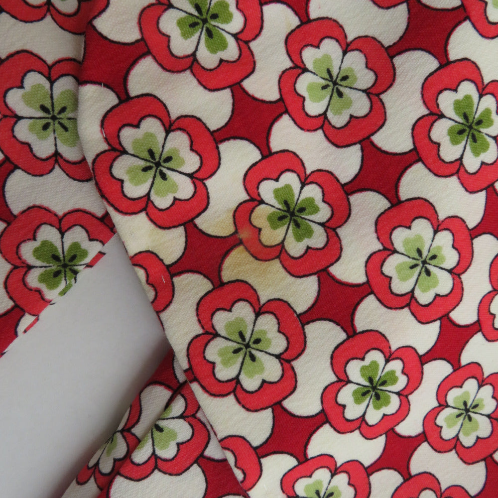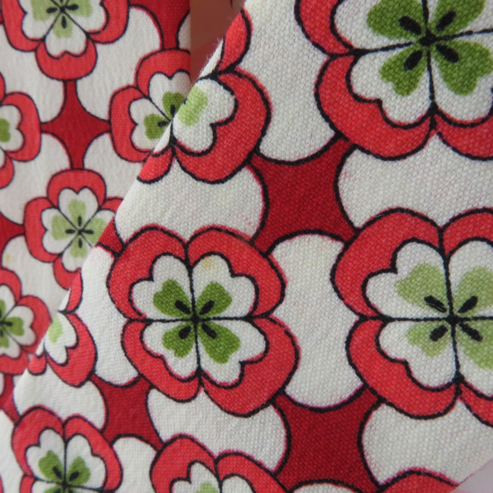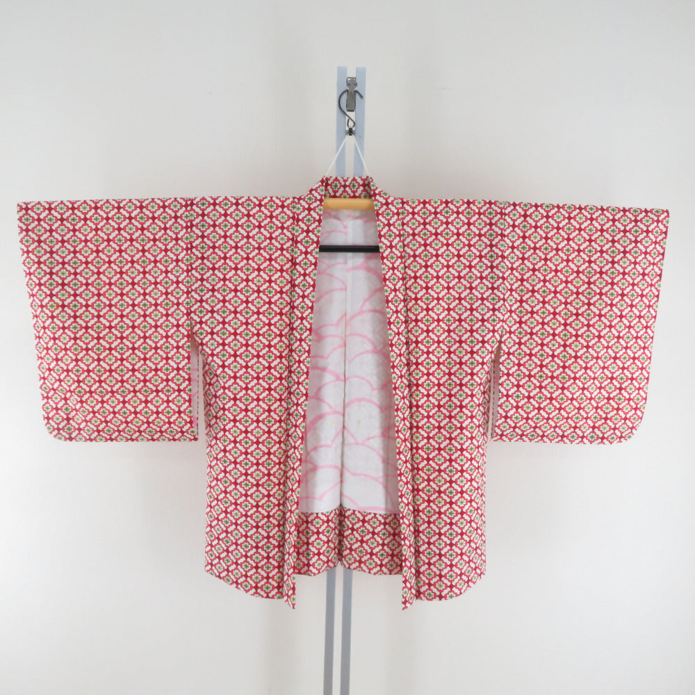 ウール着物 アンサンブル 着物と羽織2点セット 単衣 赤色x白色x黄緑 小花模様 バチ衿 カジュアルきもの 普段着物 仕立て上がり 身丈156cm