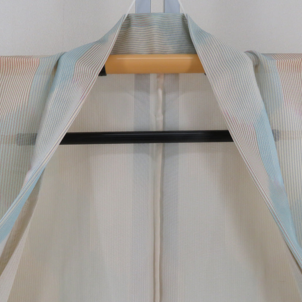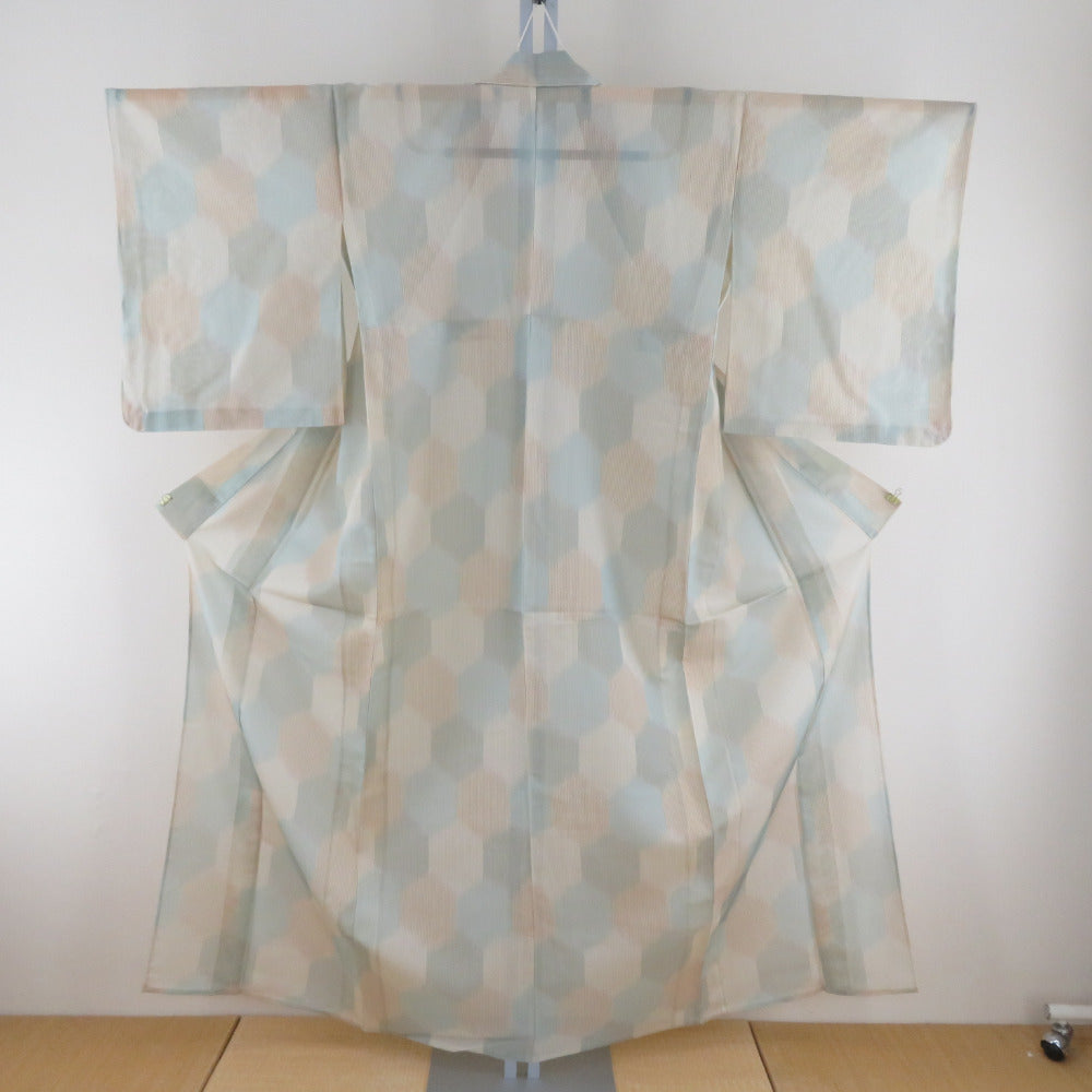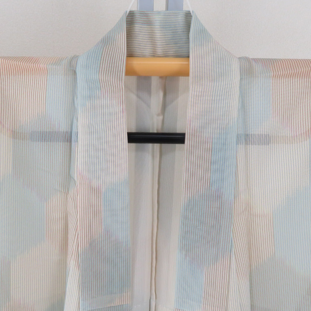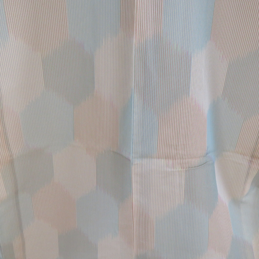 状態ランク = 5:目立った傷や汚れなし 目立ってはないのですが、衿、裏にとても小さくて薄い汚れがございます。裾にシワがございます。全体的に状態は良好です。少々防虫剤の匂いがします。仕付け糸付きです。 |