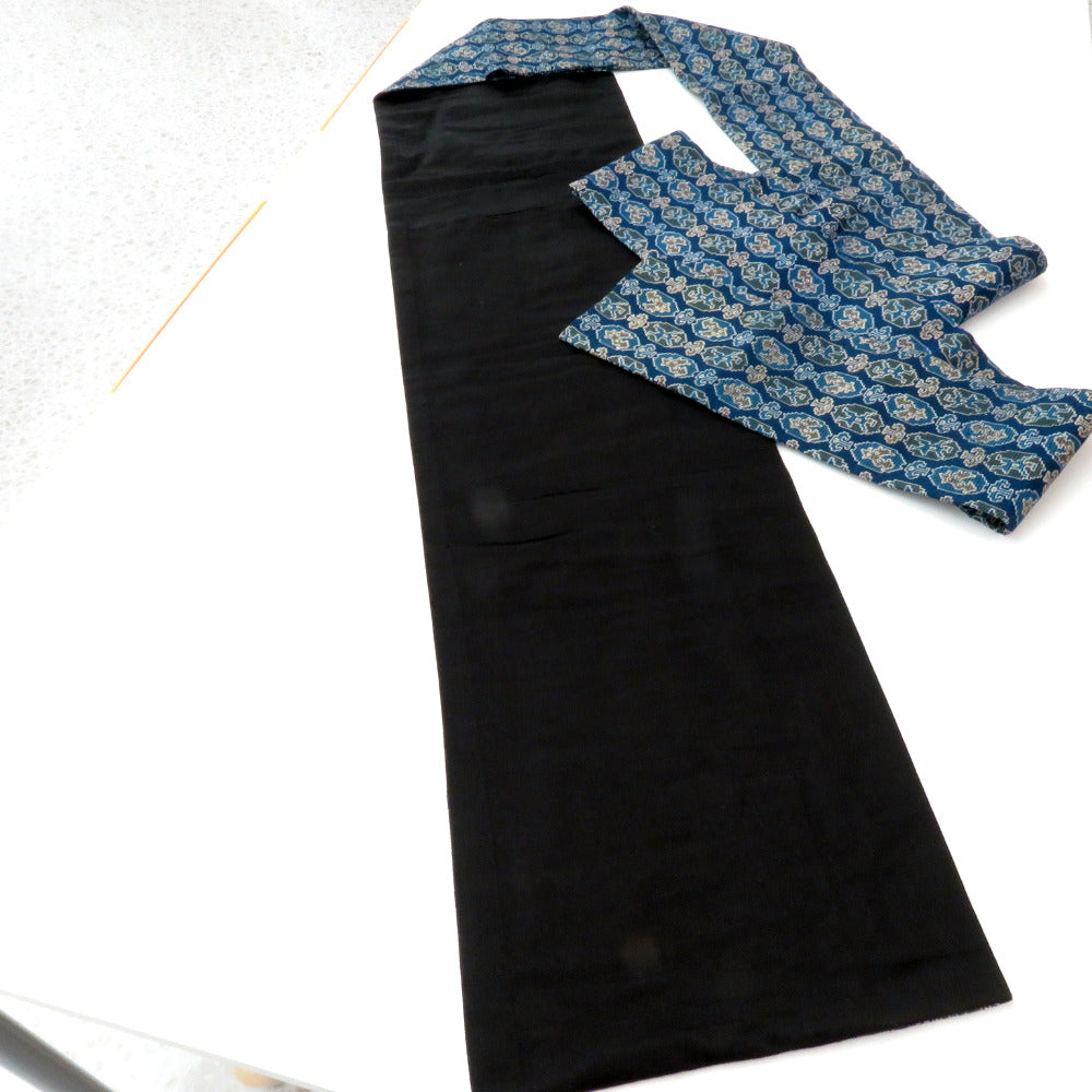 人や幾何学調のドットデザインがされた昔名古屋帯。裏地は黒の繻子生地を使用。