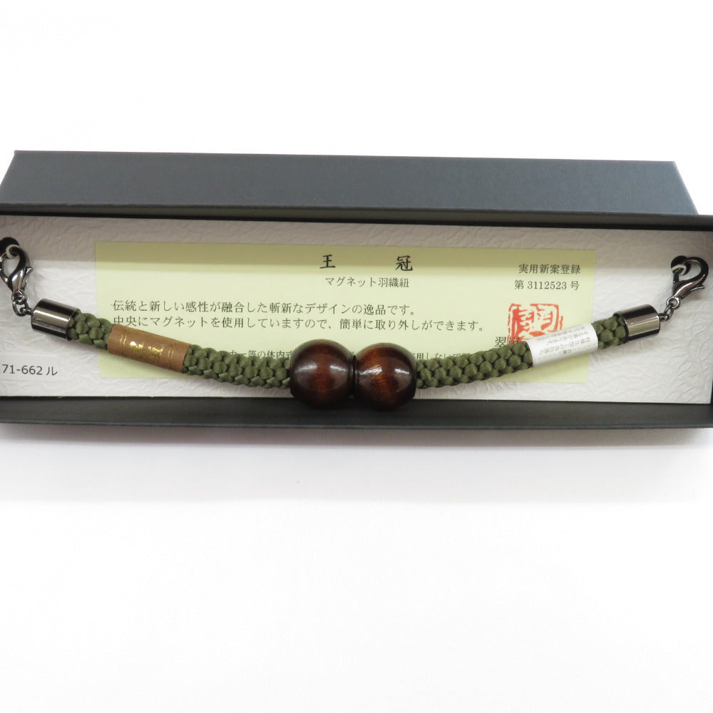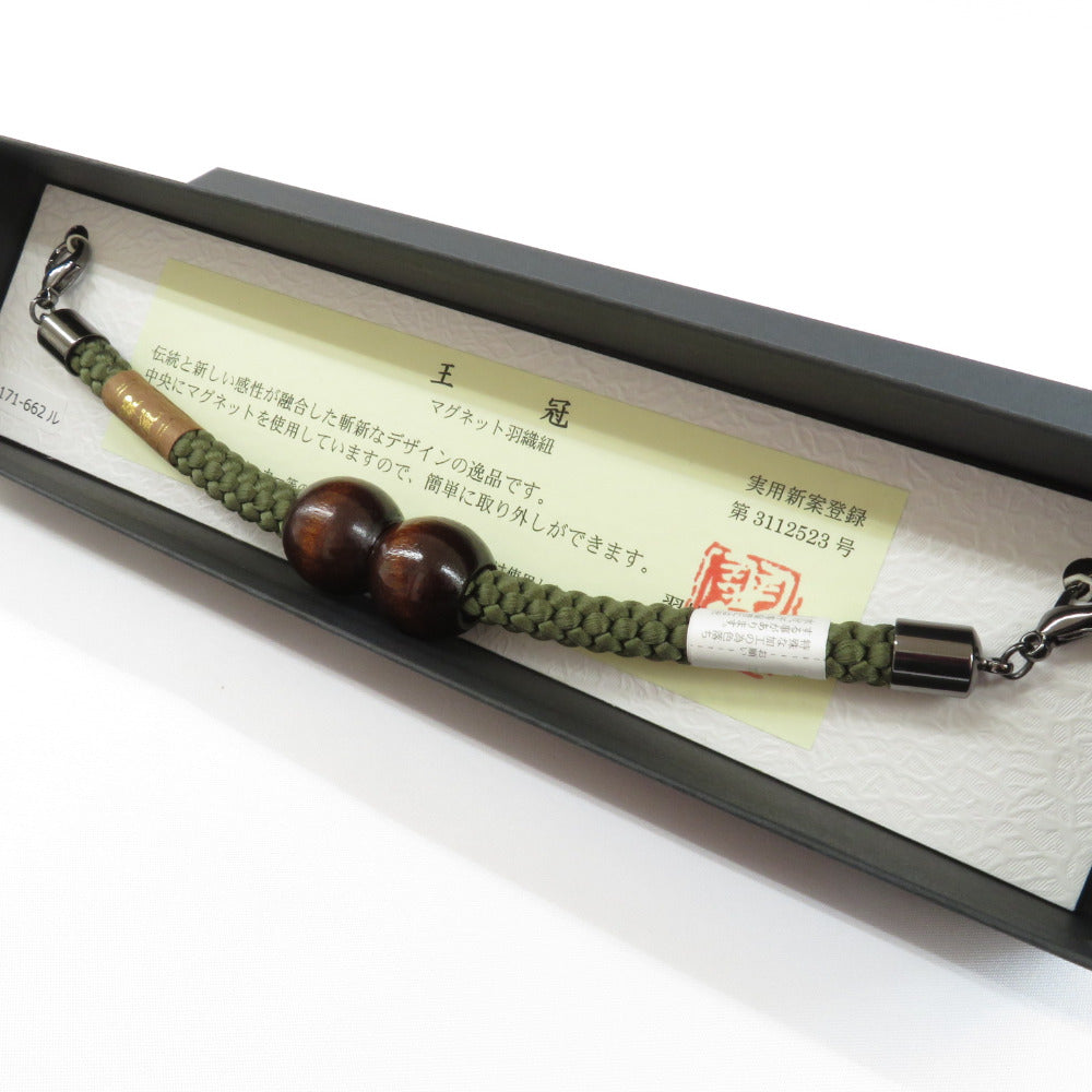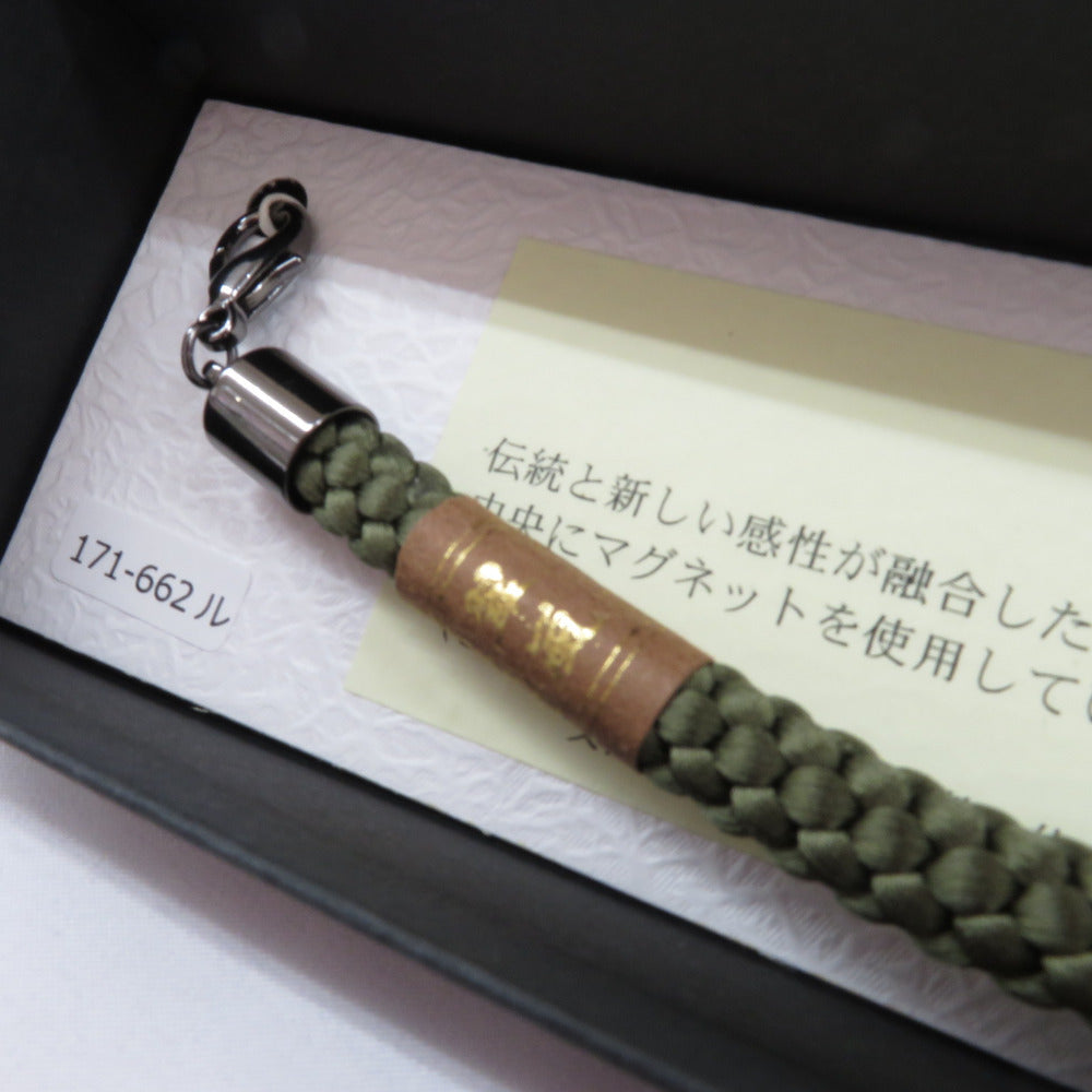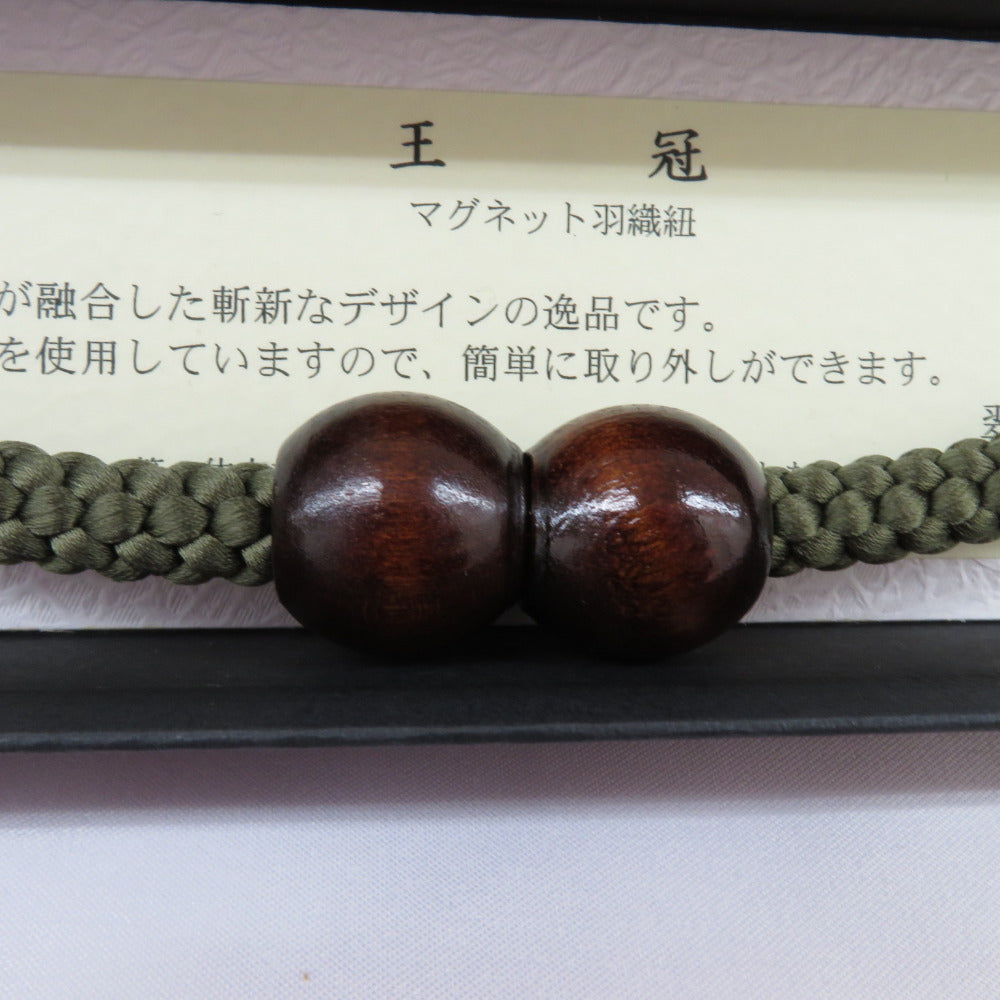 和小物 羽織紐 男性用 翆嵐工房 王冠 マグネット 絹100% オリーヴグリーン 正絹 男物 組紐 和装小物