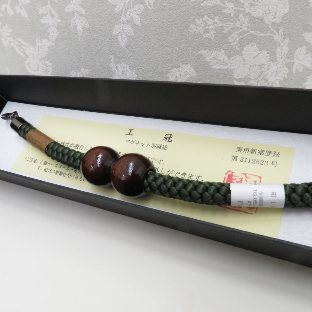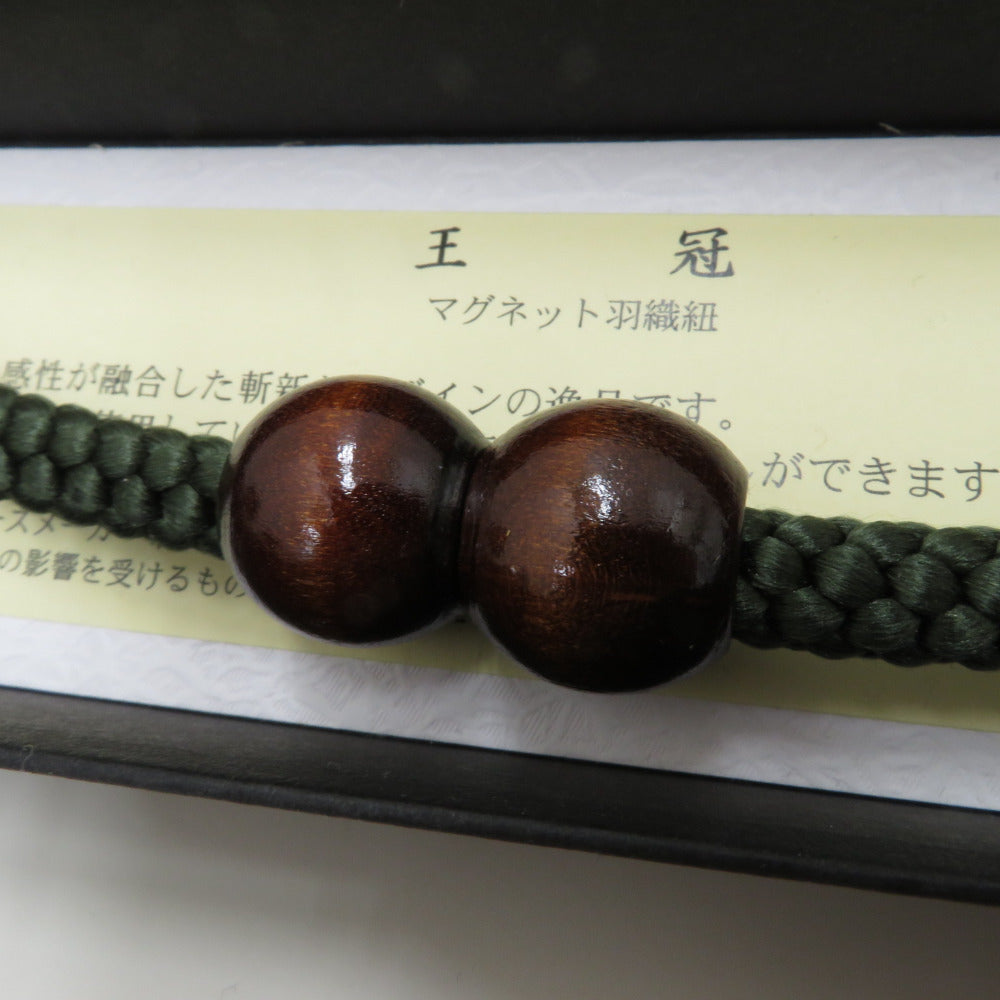 和小物 羽織紐 男性用 翆嵐工房 王冠 マグネット 絹100% カーキ色 緑系 正絹 男物 組紐 和装小物