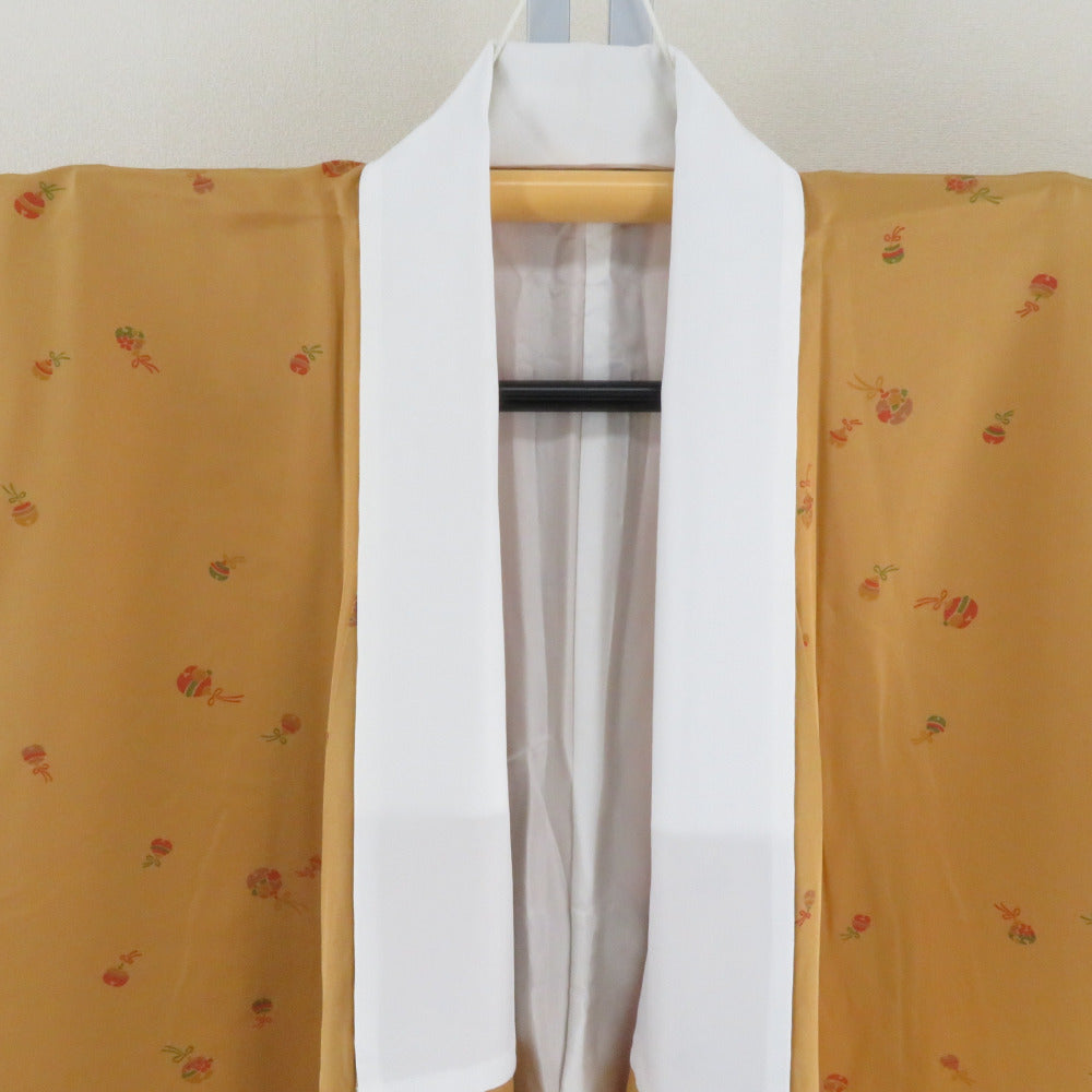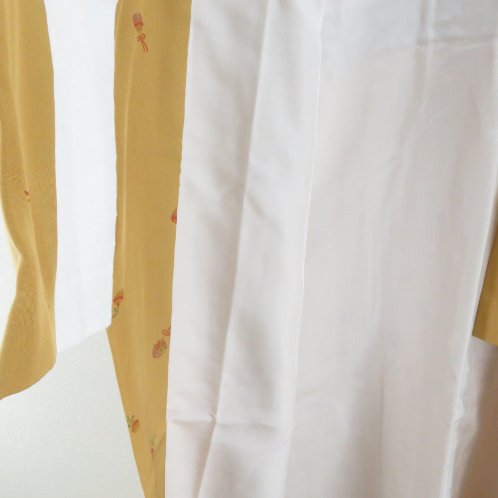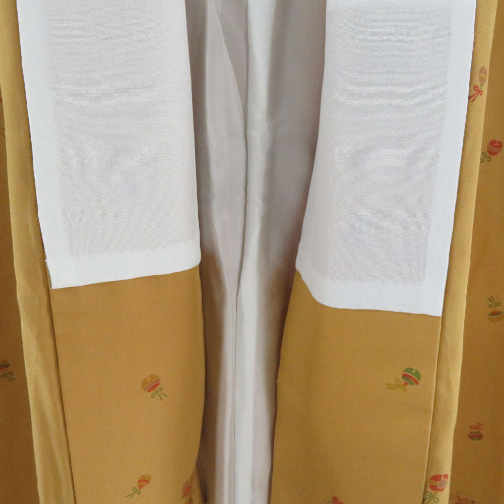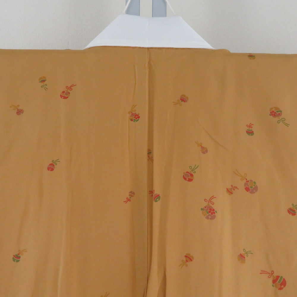 襦袢 長襦袢 辛子色 鈴模様 正絹 半衿付き 広衿 仕立て上がり 女性着物用 身丈140cm