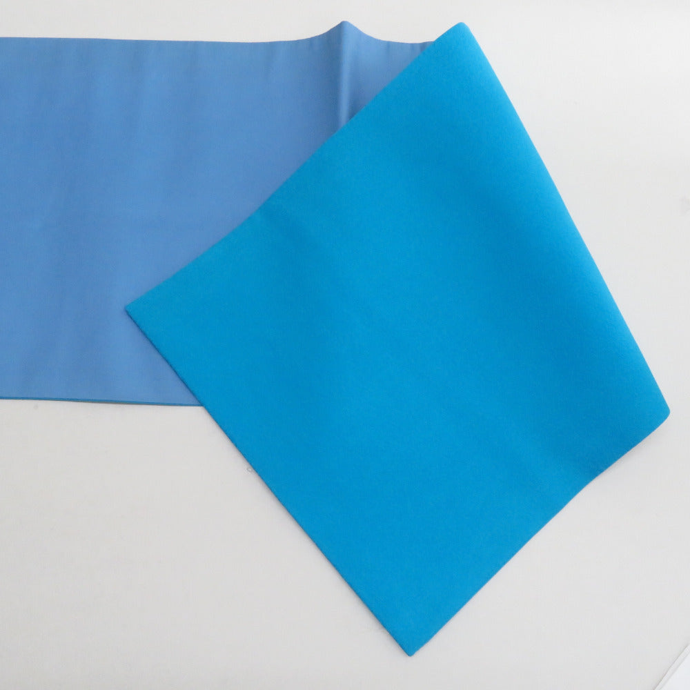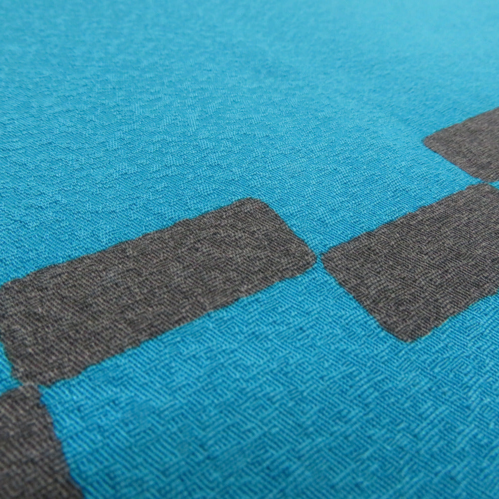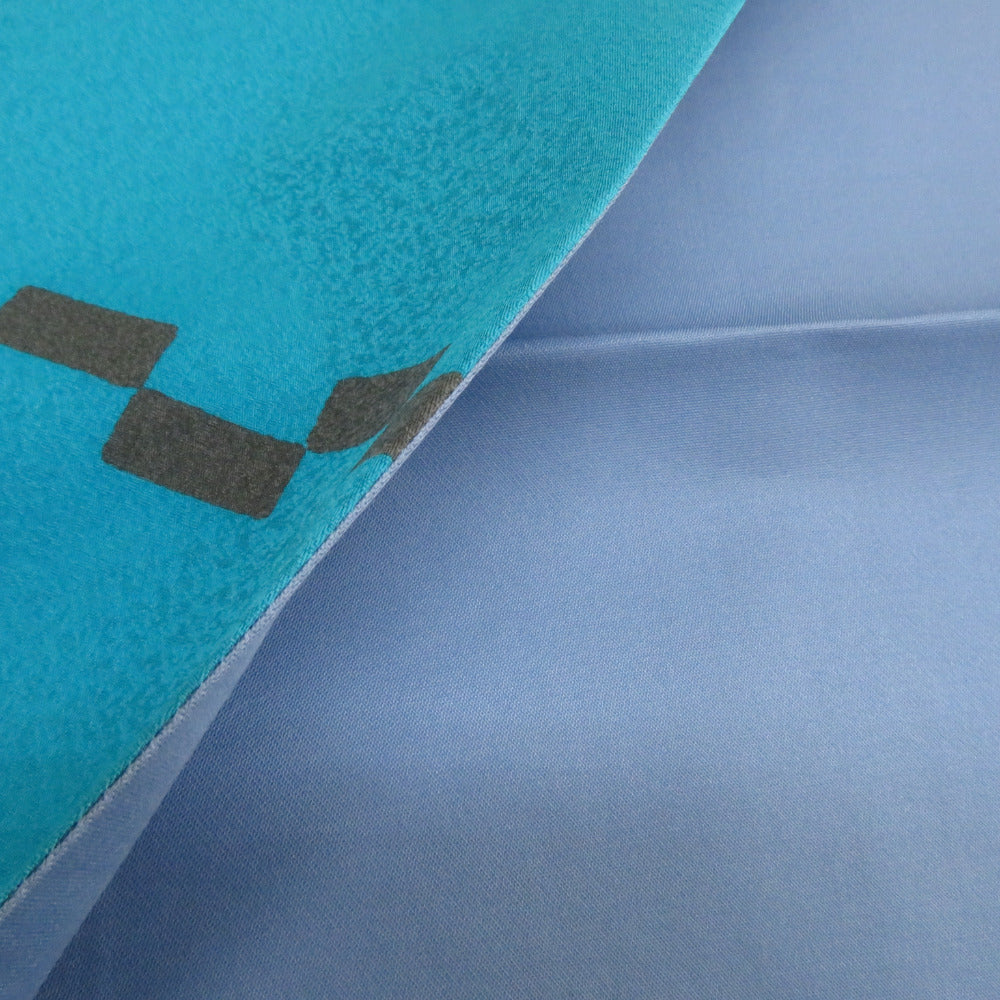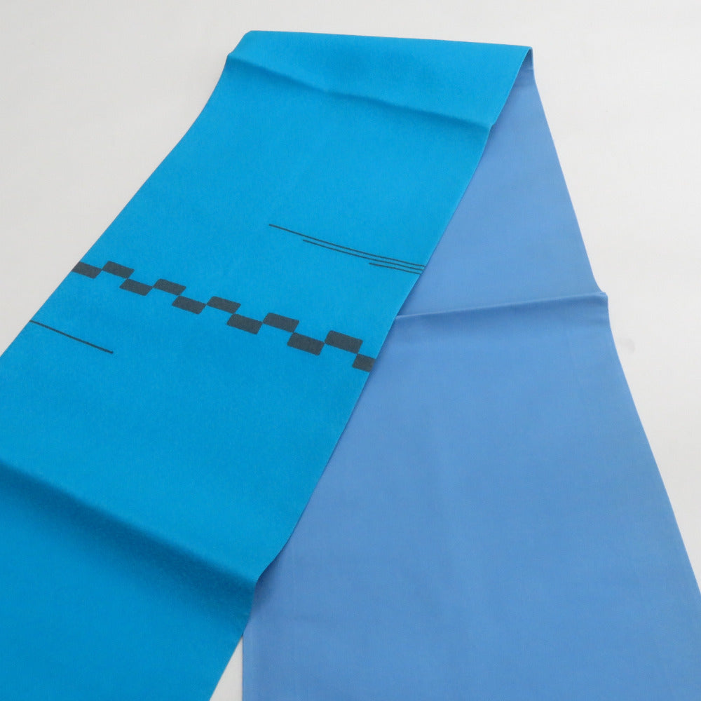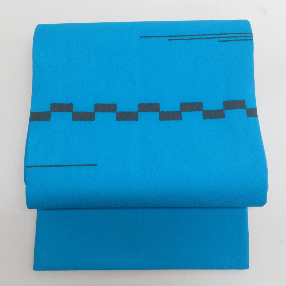 とてもカッコいいモダンな感じの帯でございます。京袋帯なので一重大子の結びができます。色は強めのスカイブルーです。