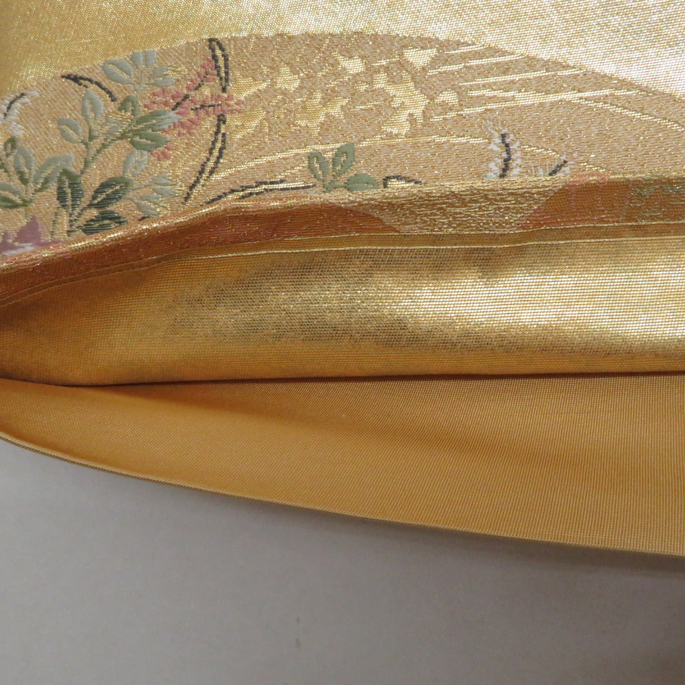 Title Japanese Kimono Fukuro Obi Silk Rinpa pattern Gold 173.2inch Women's