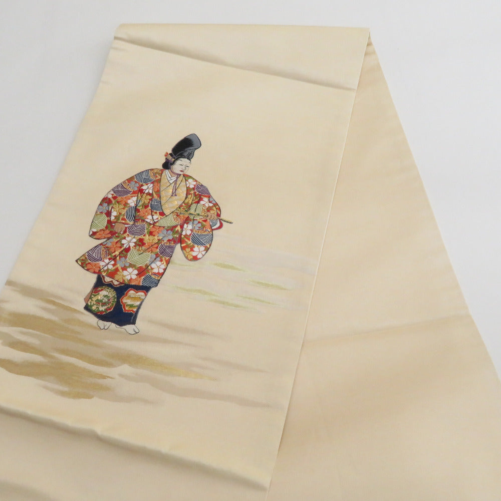 Title Japanese Kimono Fukuro Obi Silk Noh pattern Beige 173.2inch Women's