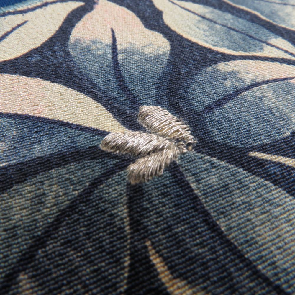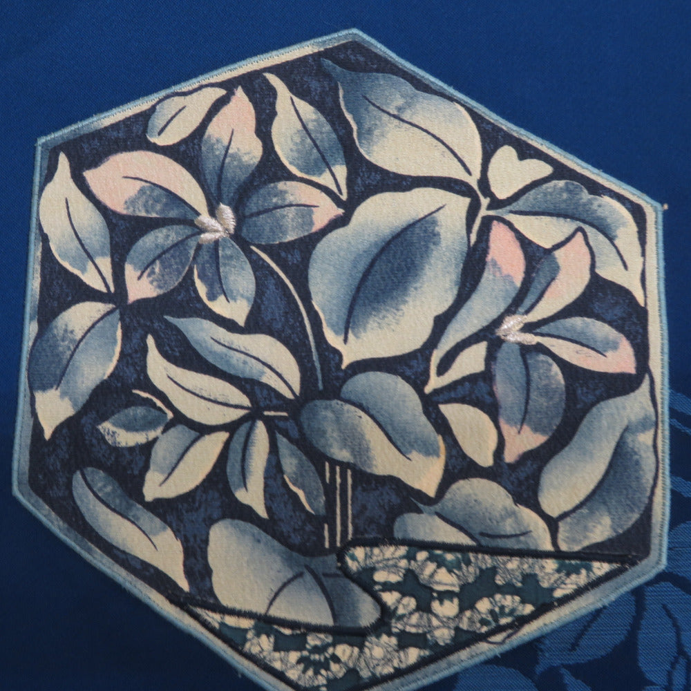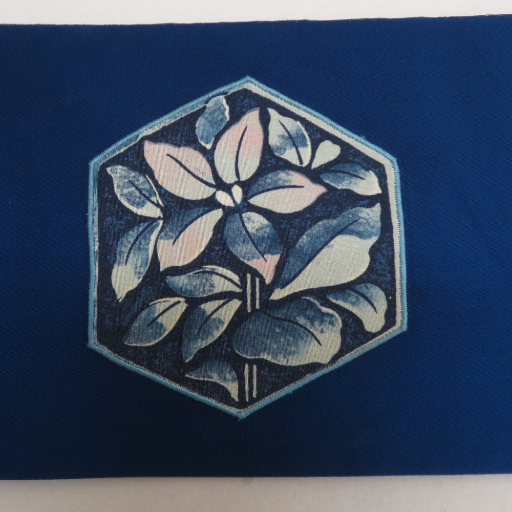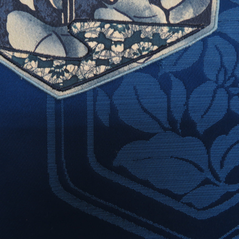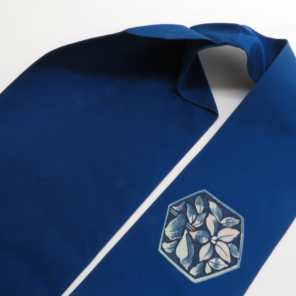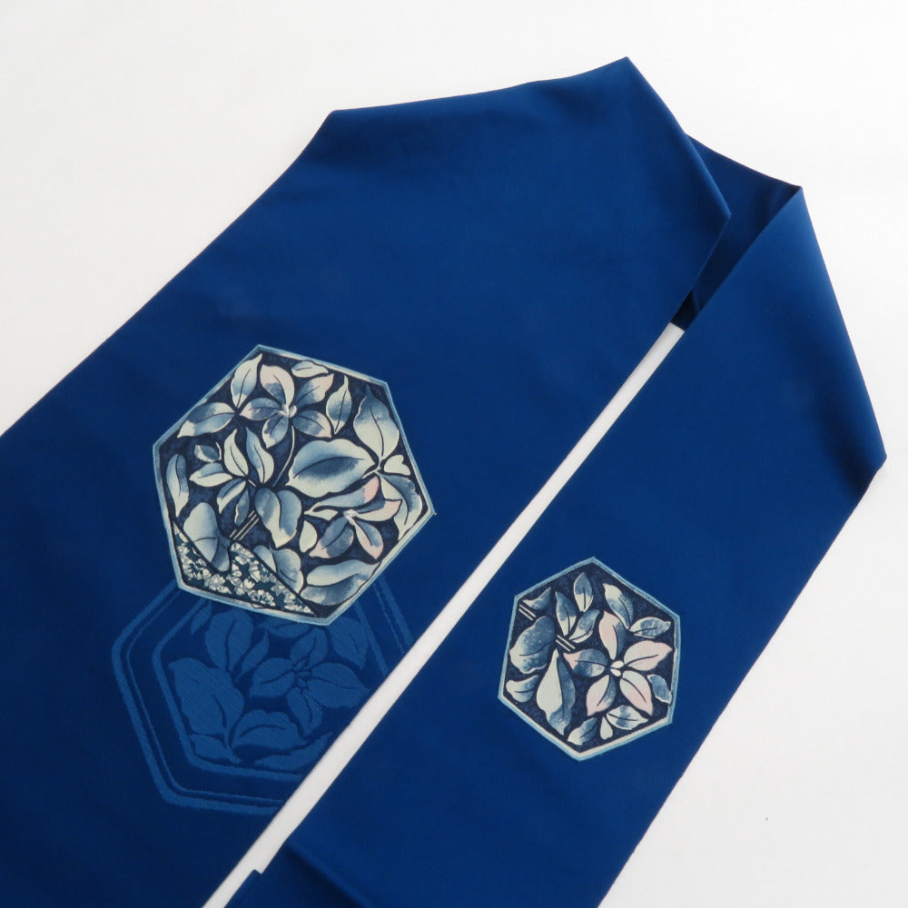 Title Japanese Kimono Nagoya Obi Polyester hexagonal floral pattern Blue