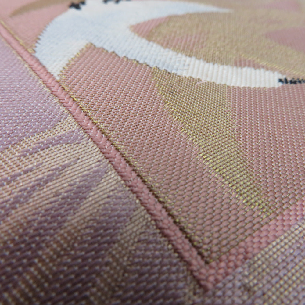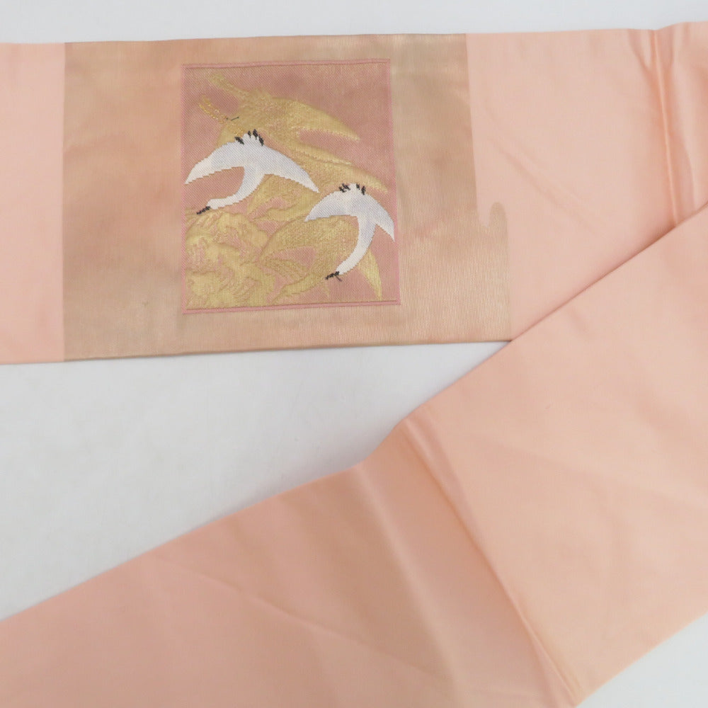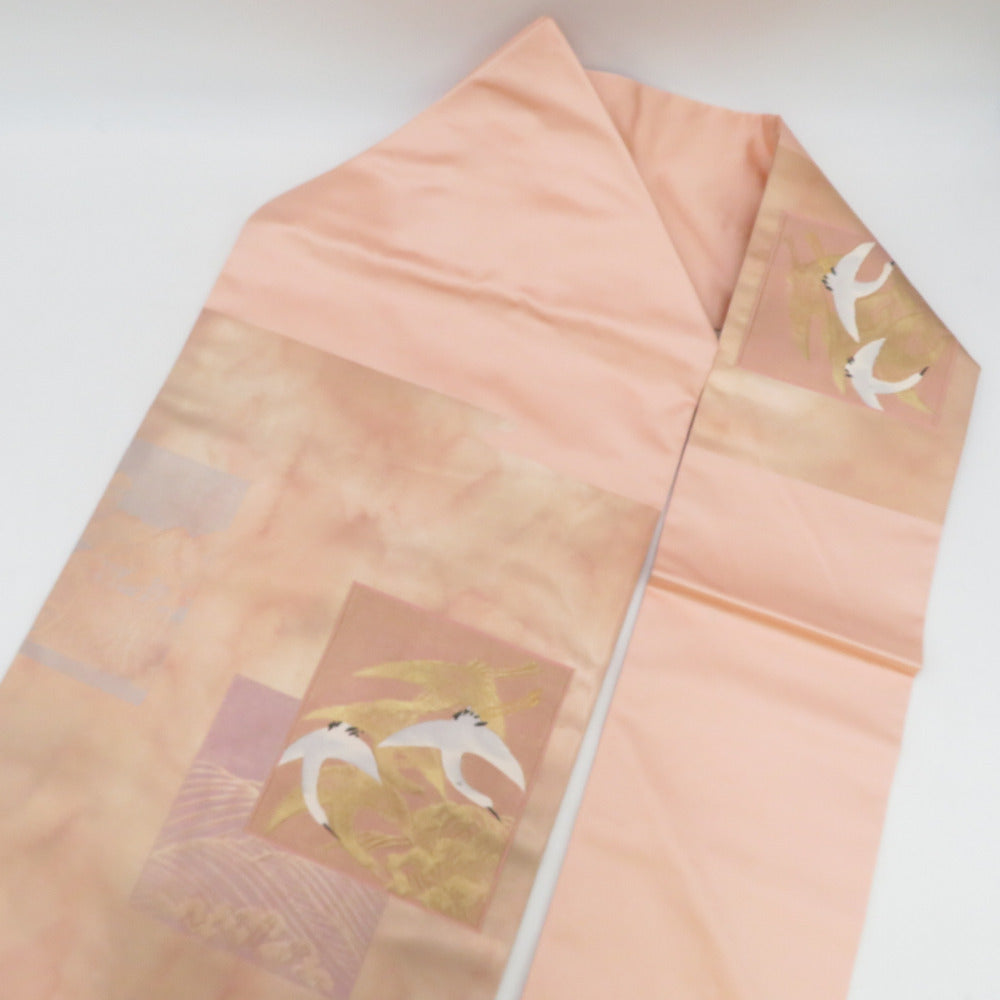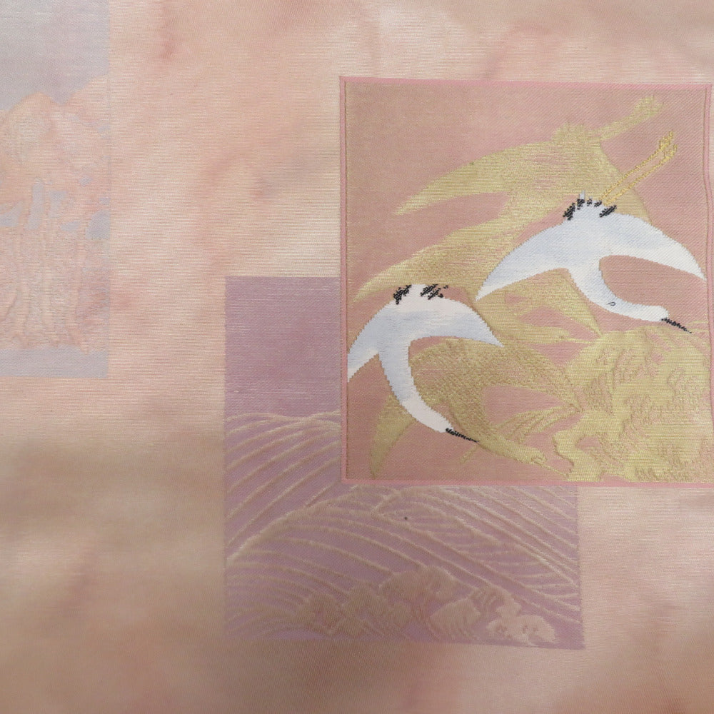 Title Japanese Kimono Nagoya Obi Silk Square with crane and wave pattern Pink