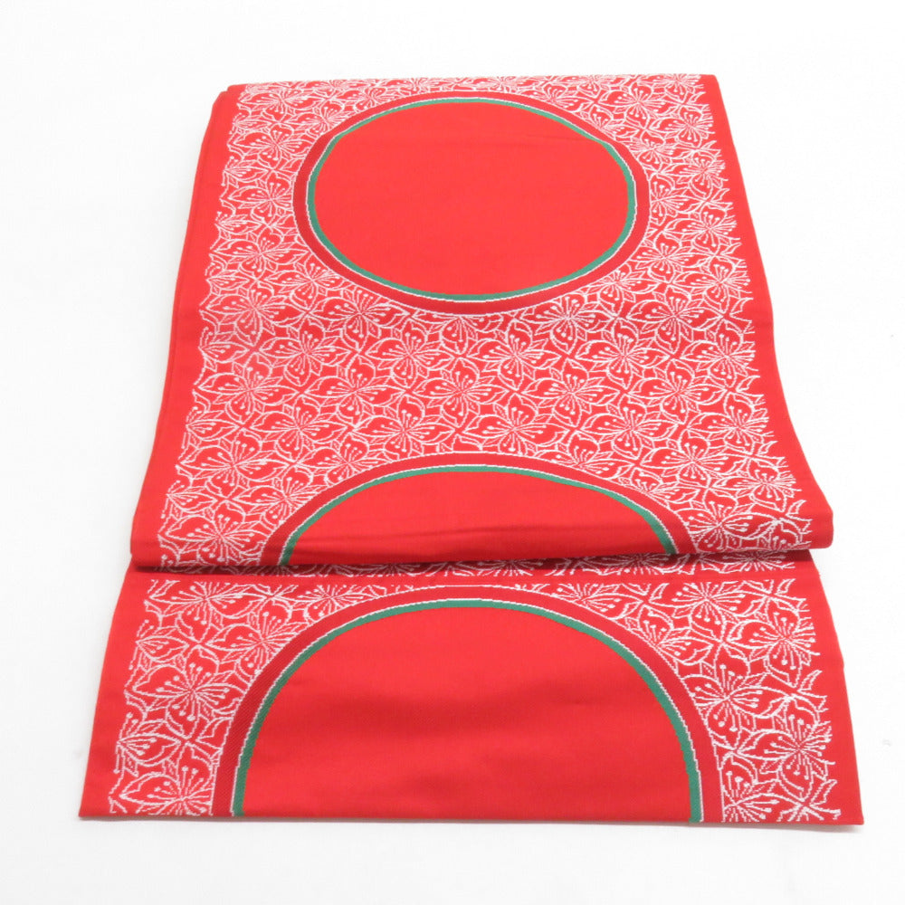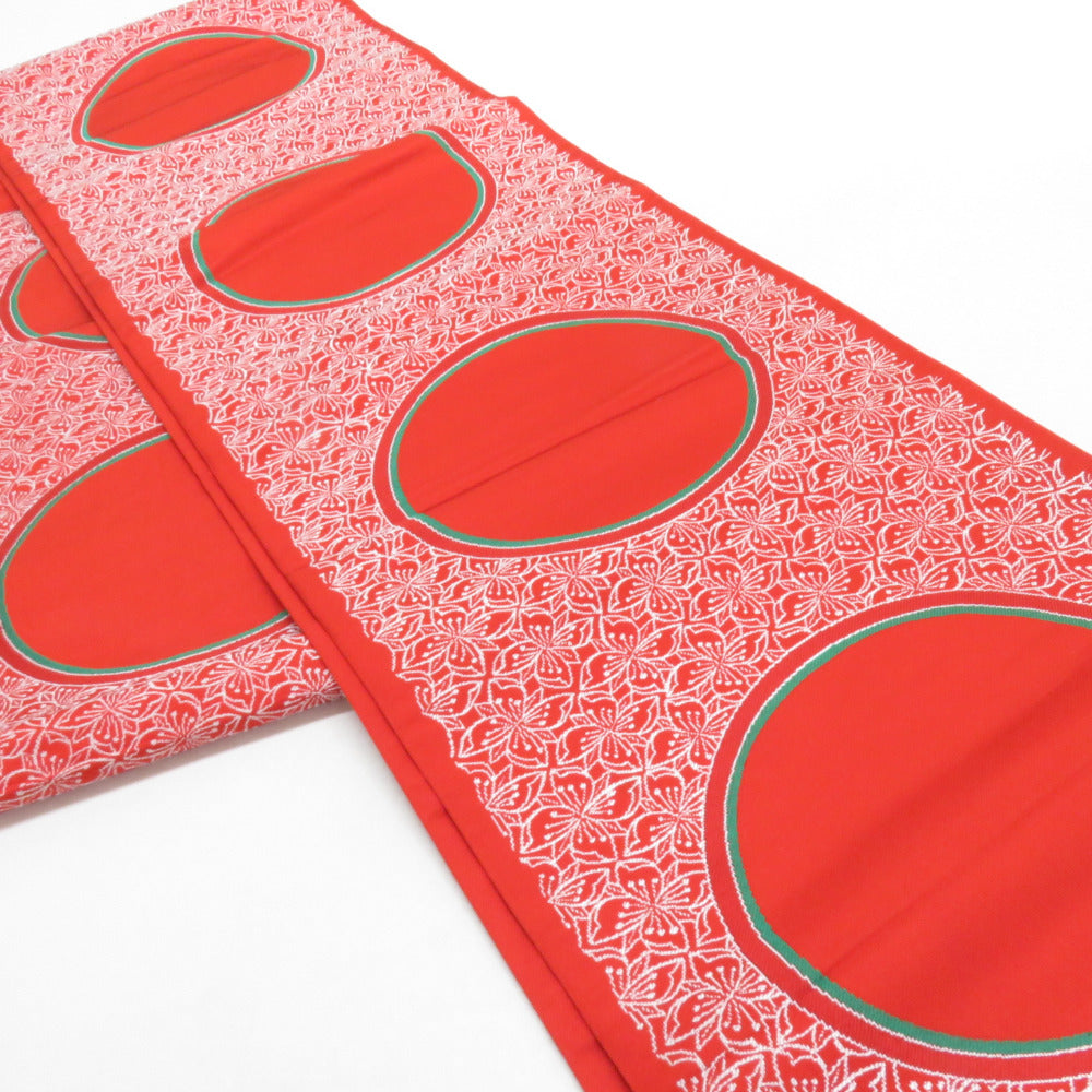 Title Kimono Fukuro Obi Silk circle and flower pattern Orange 165.4inch Women's