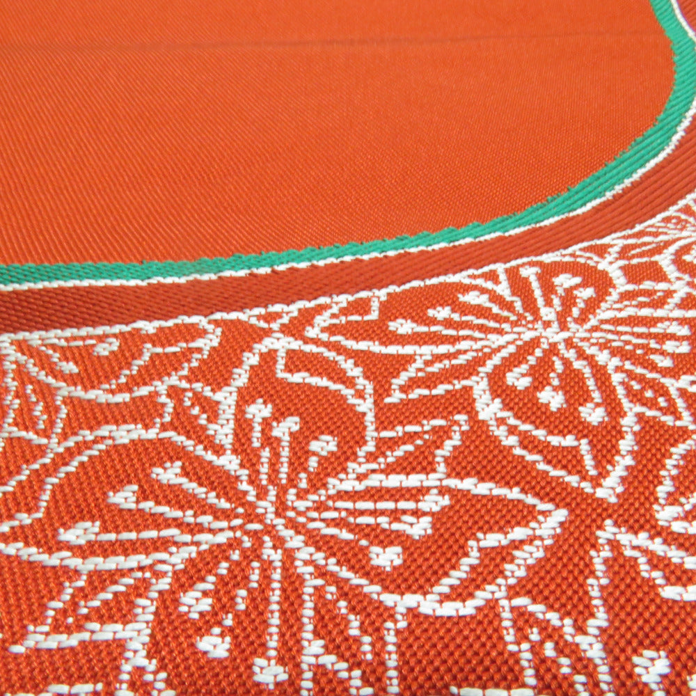 袋帯 花に丸文様 橙色 正絹 六通柄 カジュアル 仕立て上がり 着物帯 長さ420cm