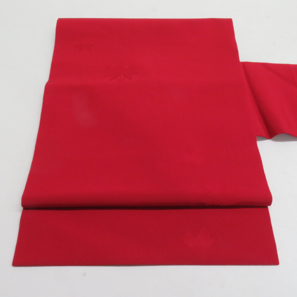名古屋帯 正絹 桐地紋 全通柄 九寸帯 赤色 カジュアル 仕立て上がり 着物帯 長さ355cm