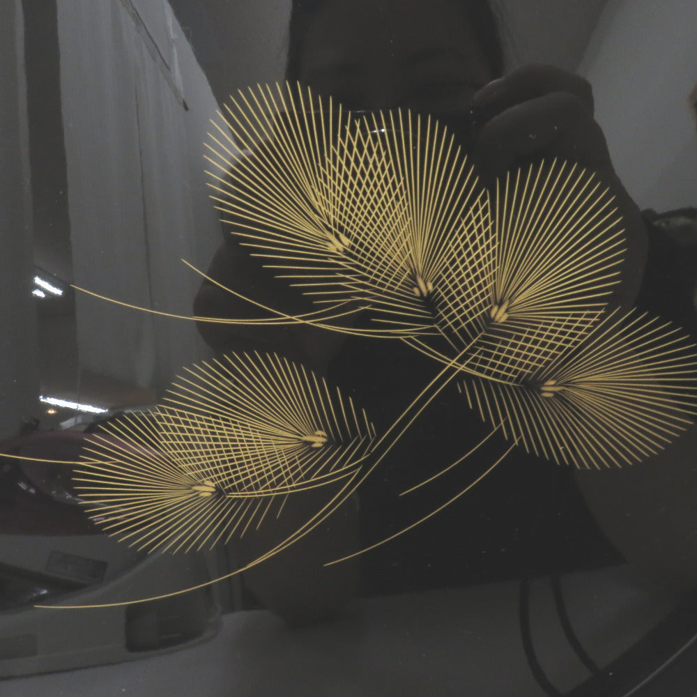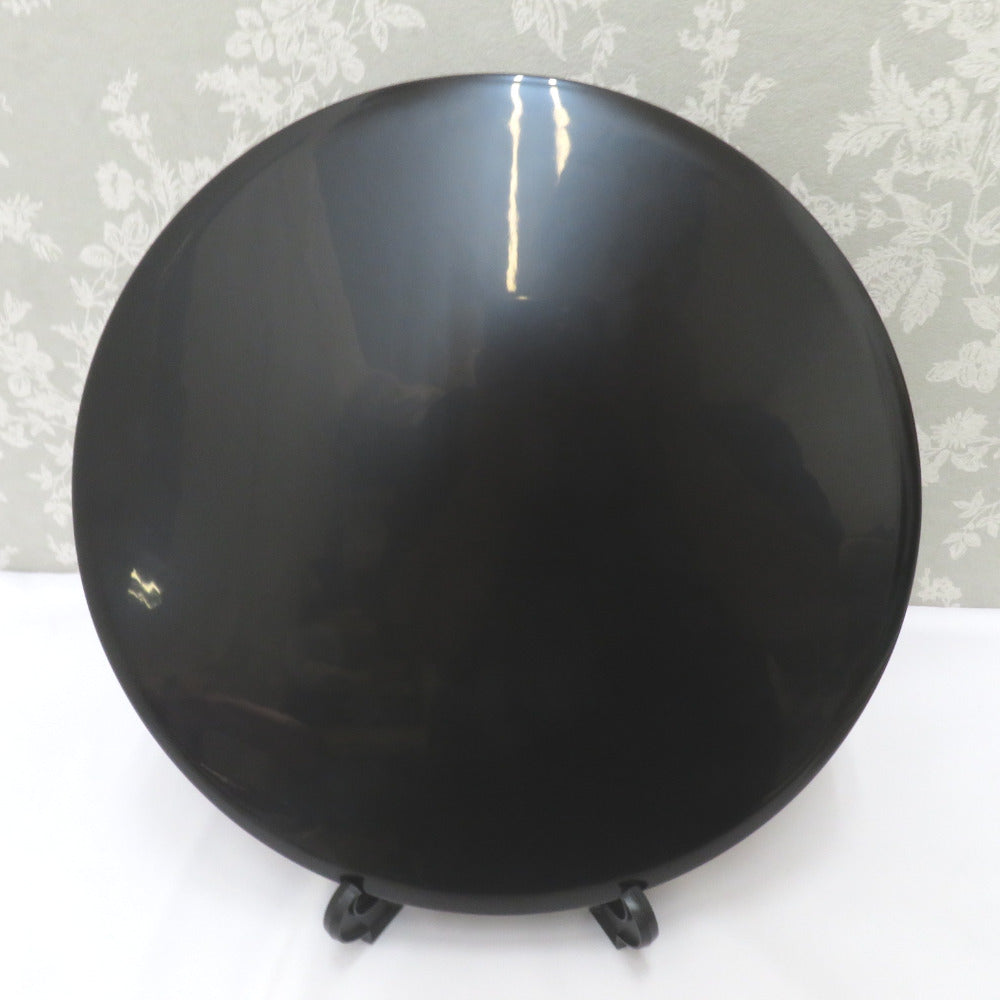 骨董・民芸品 輪島塗 輪光堂謹製 御盆 丸盆 平盆 漆器 沈金 黒 能登輪島 漆芸 天然木 箱有