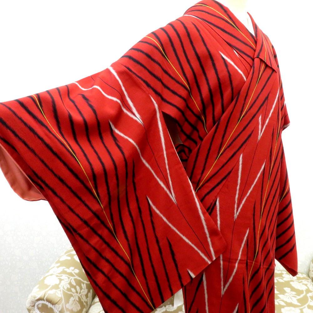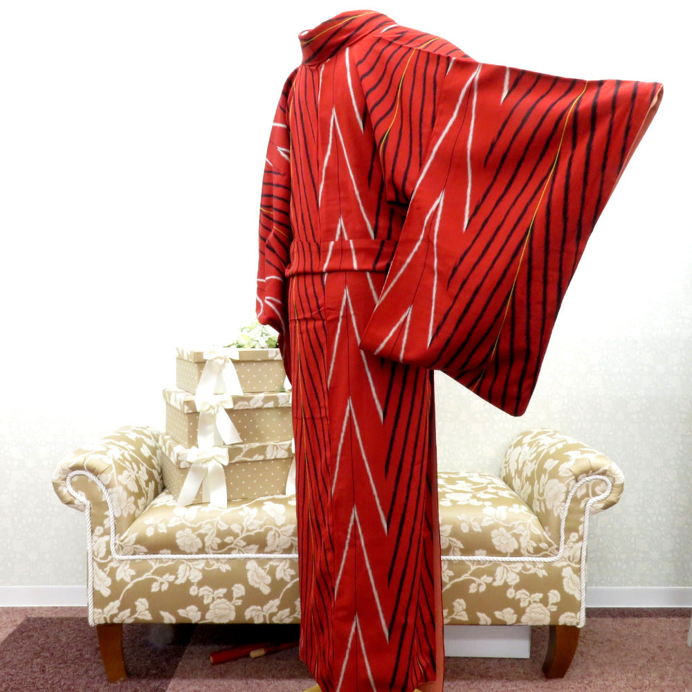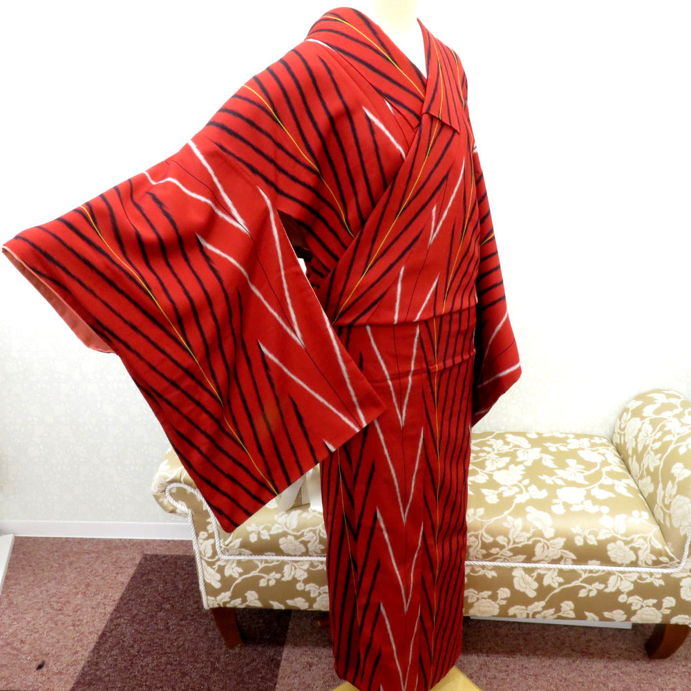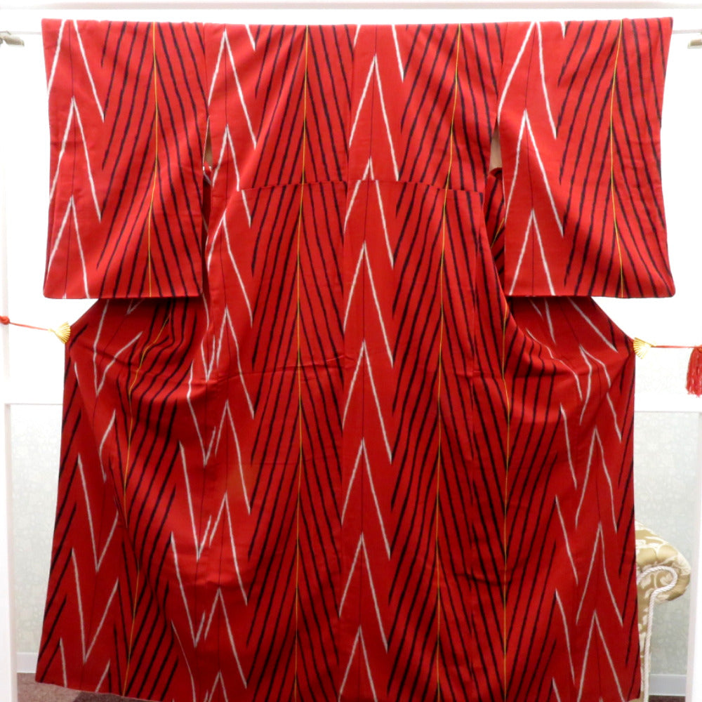 Title Antique Komon kimono Silk Geometric pattern Red 58.2inch Women's