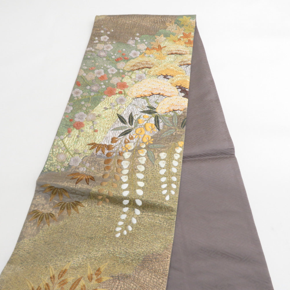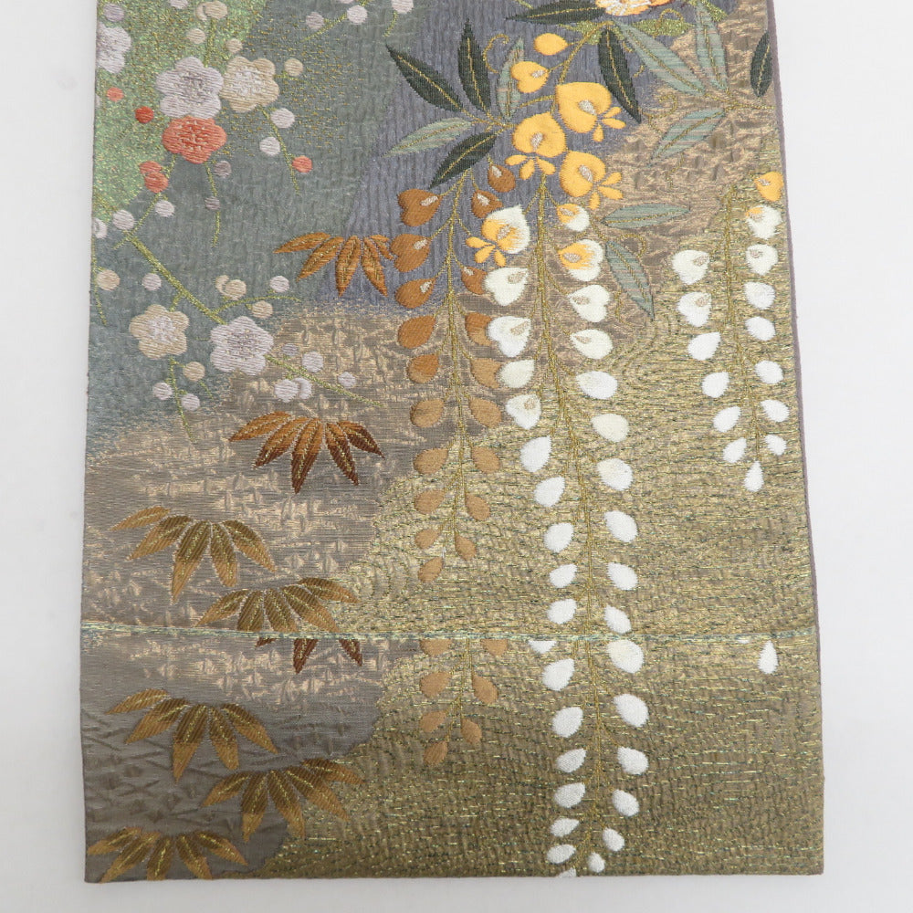 Title Japanese Kimono Fukuro Obi Silk four seasons pattern Gold 173.2inch Women's