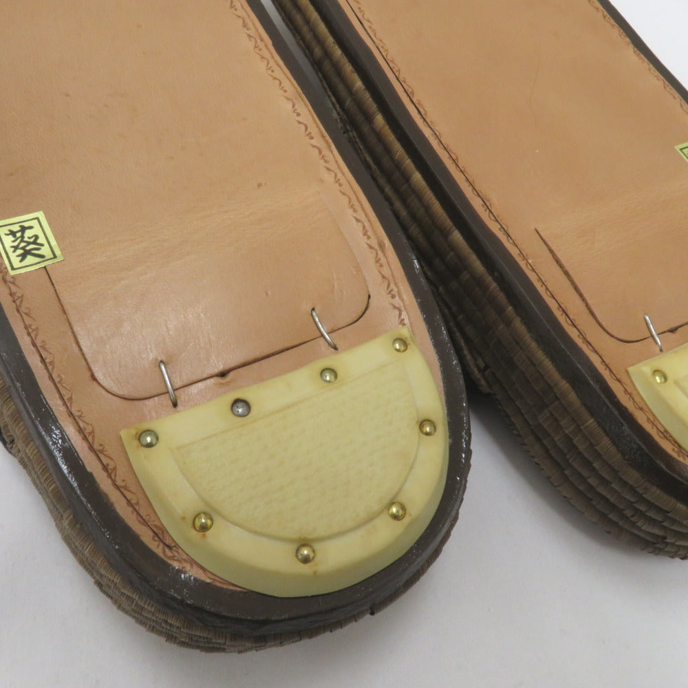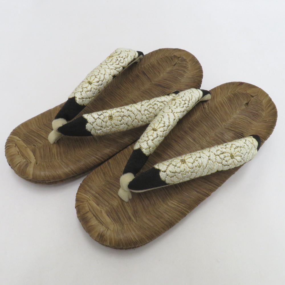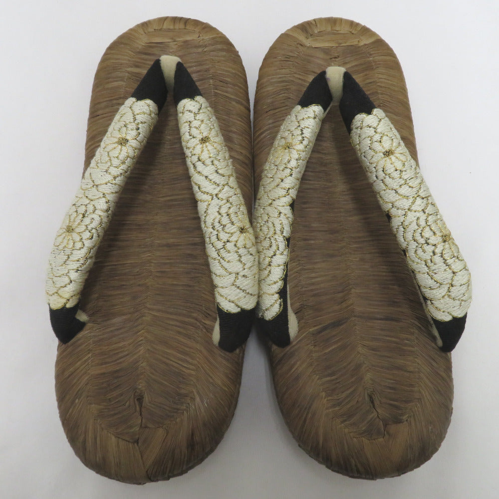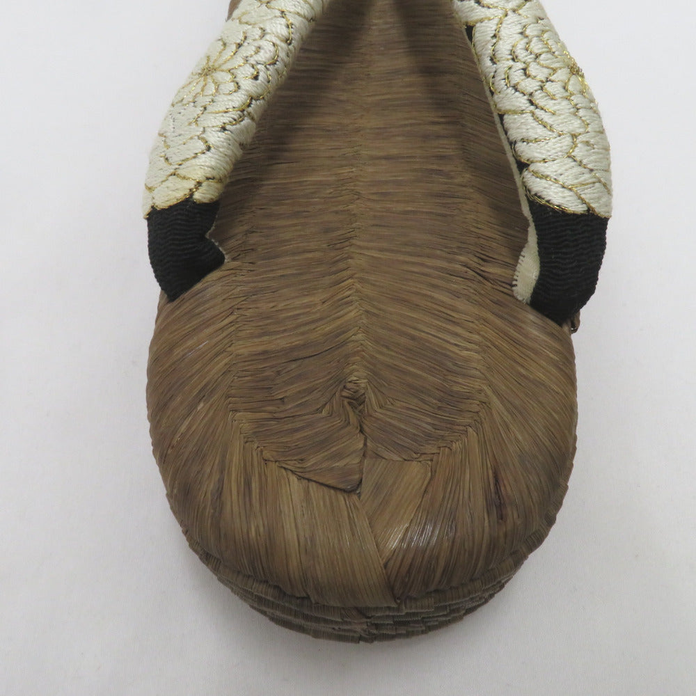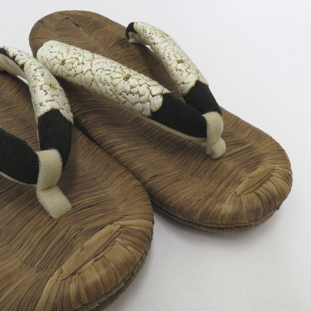 草履 畳草履 畳表 ダークブラウン ブラック×オフホワイト 花刺しゅう 五段重ね 皮底 レディース 履物 高級草履
