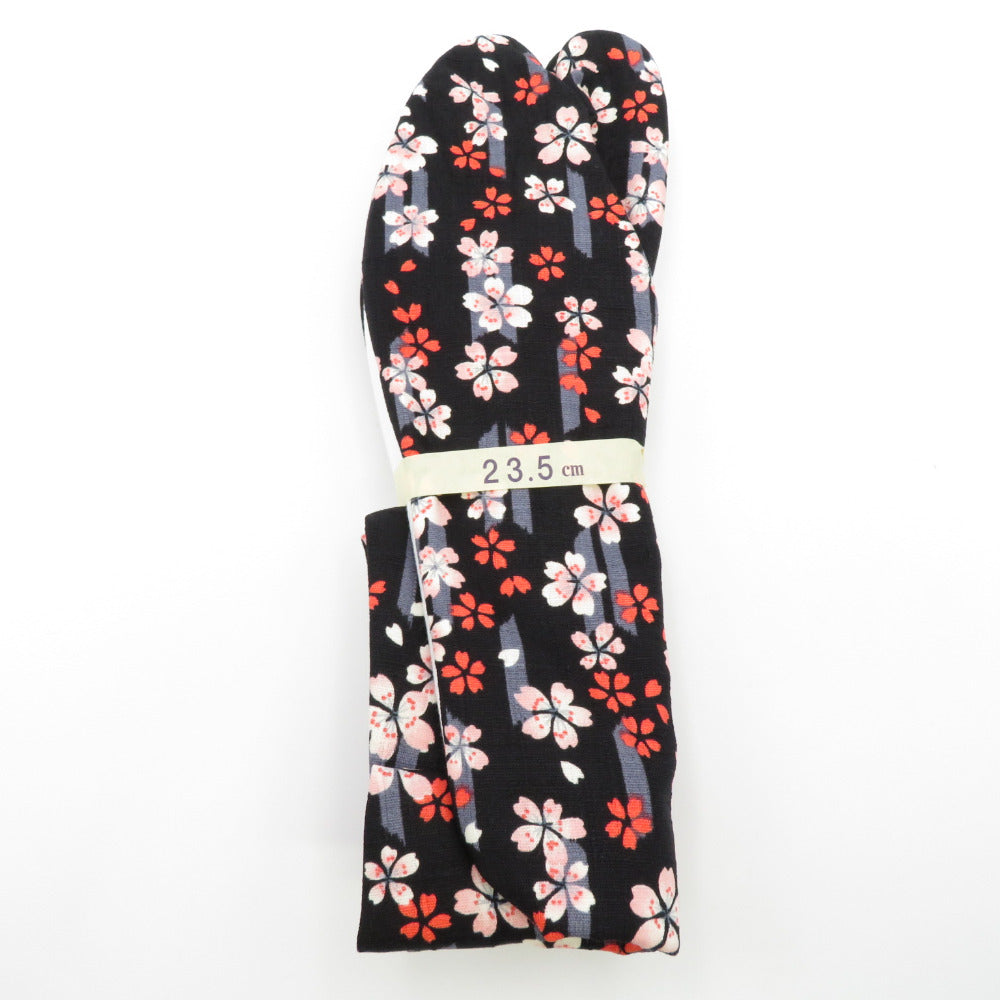 Pattern tabi 23.5cm Black cherry blossoms on the cherry blossoms Yowa -root pattern Sakura Bottomed Japanese Made in Japan 100 % Cotton 4 pieces Women's Women Tabi Casual New