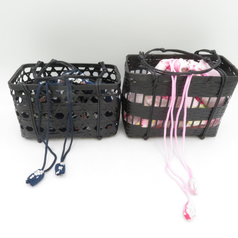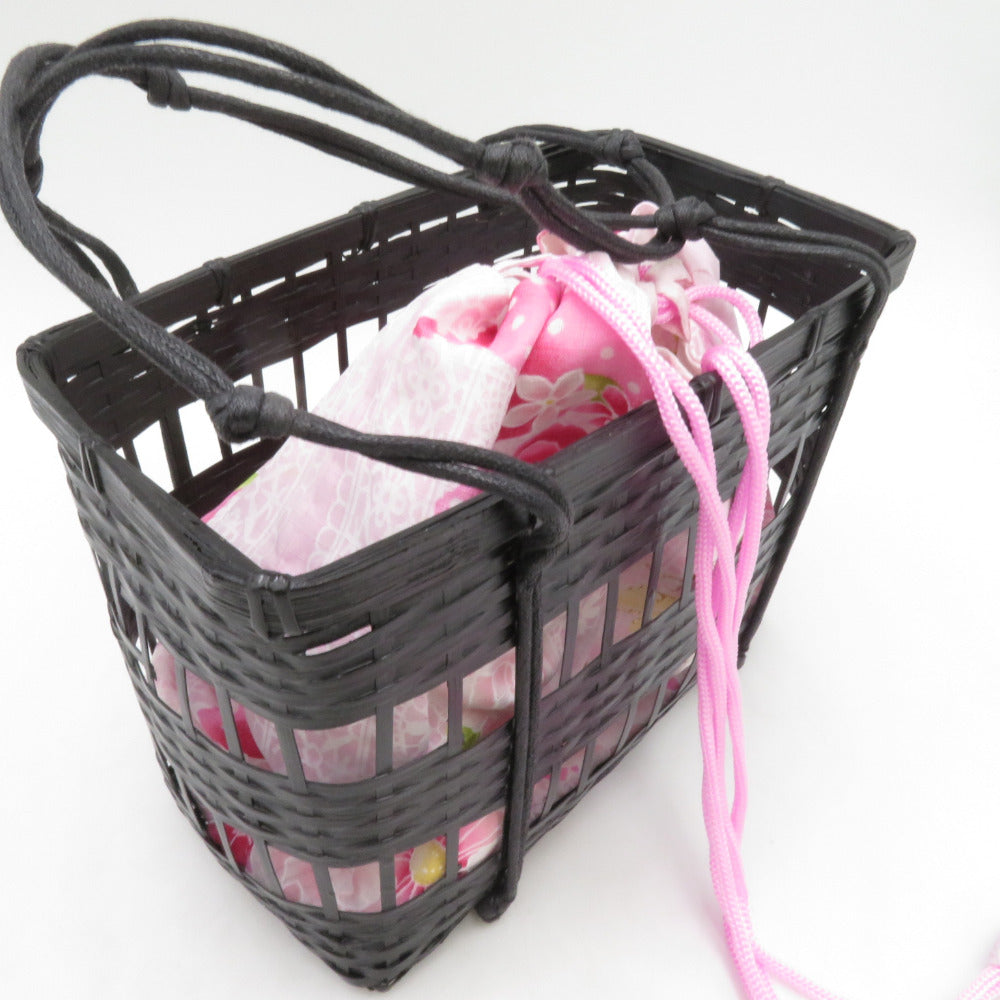 和装バッグ 和かごバッグ 2点セット 籠巾着付き 牡丹柄 薔薇柄 竹かご 浴衣用 夏祭り 花火大会