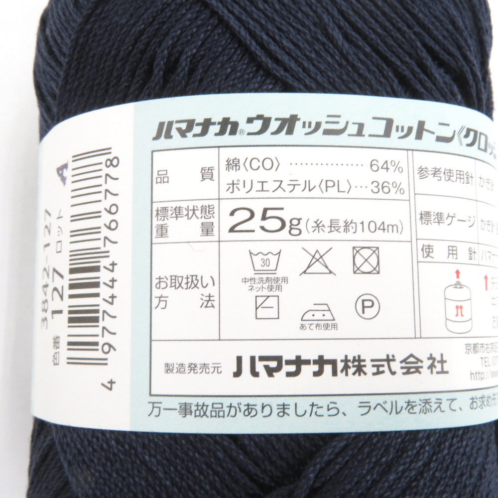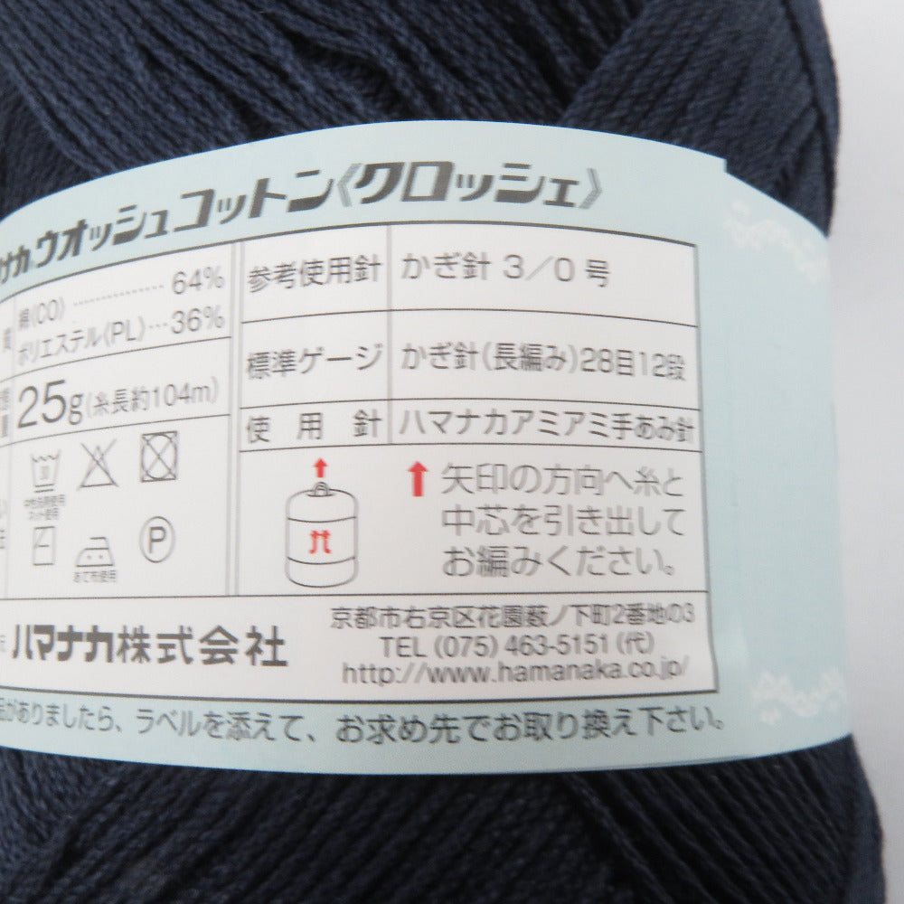 シルケット加工による光沢感と爽やかな風合いも魅力。 春夏糸並太タイプの定番ウオッシュコットンのかぎ針専用タイプです。 かぎ針 3/0号(長編み)28目・12段 |