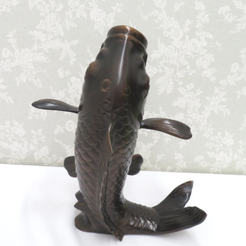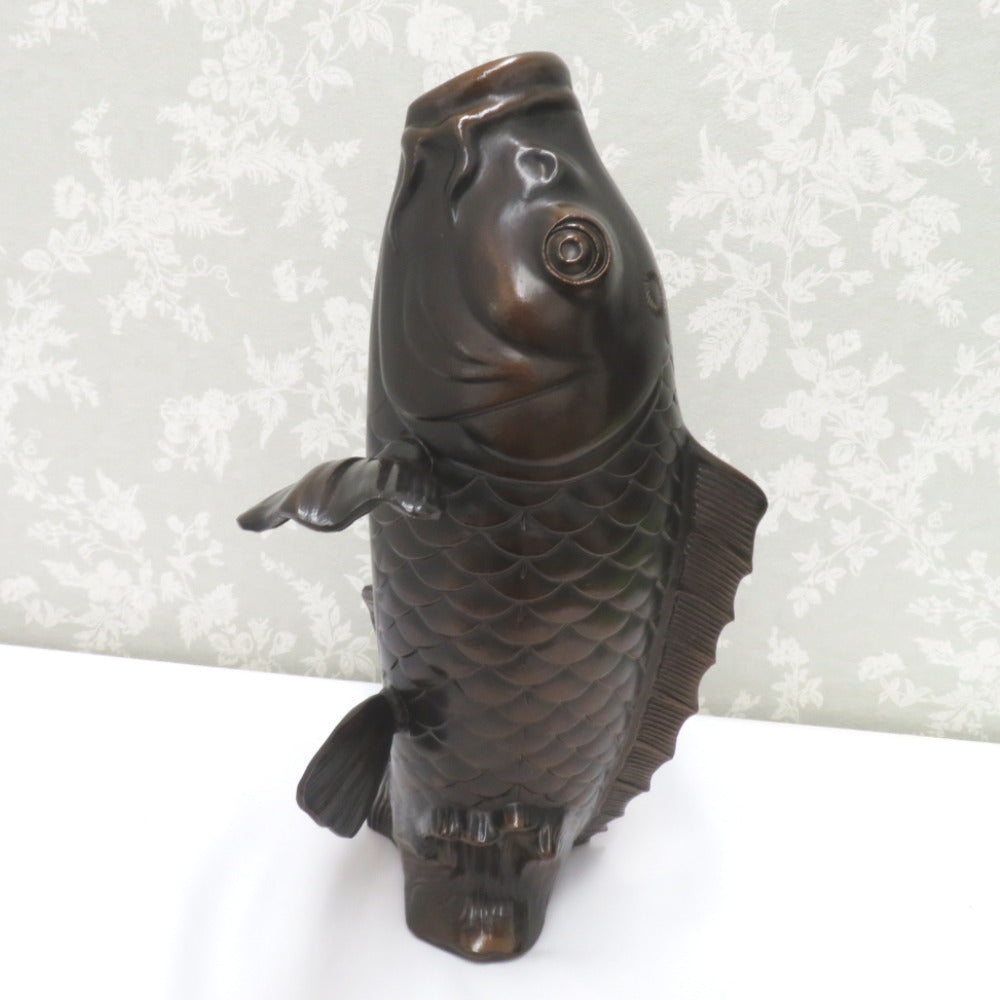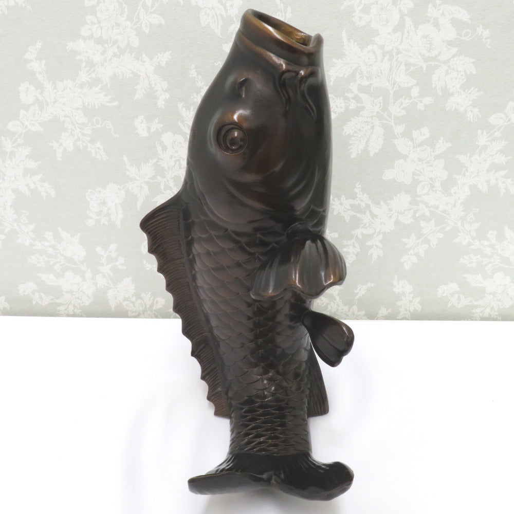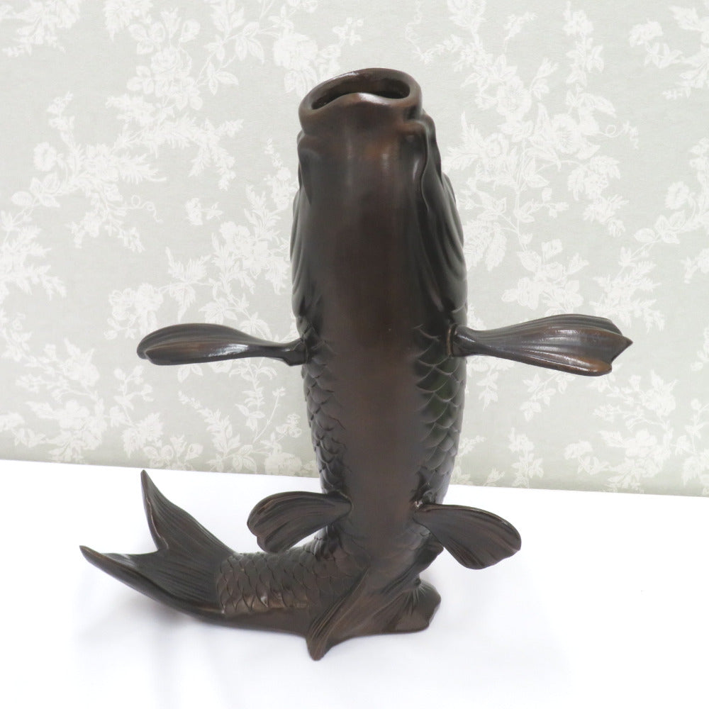 骨董・民芸品 インテリア 高岡銅器 藤田善祐 鯉 花器 花生 花入 花瓶 置物 共箱有