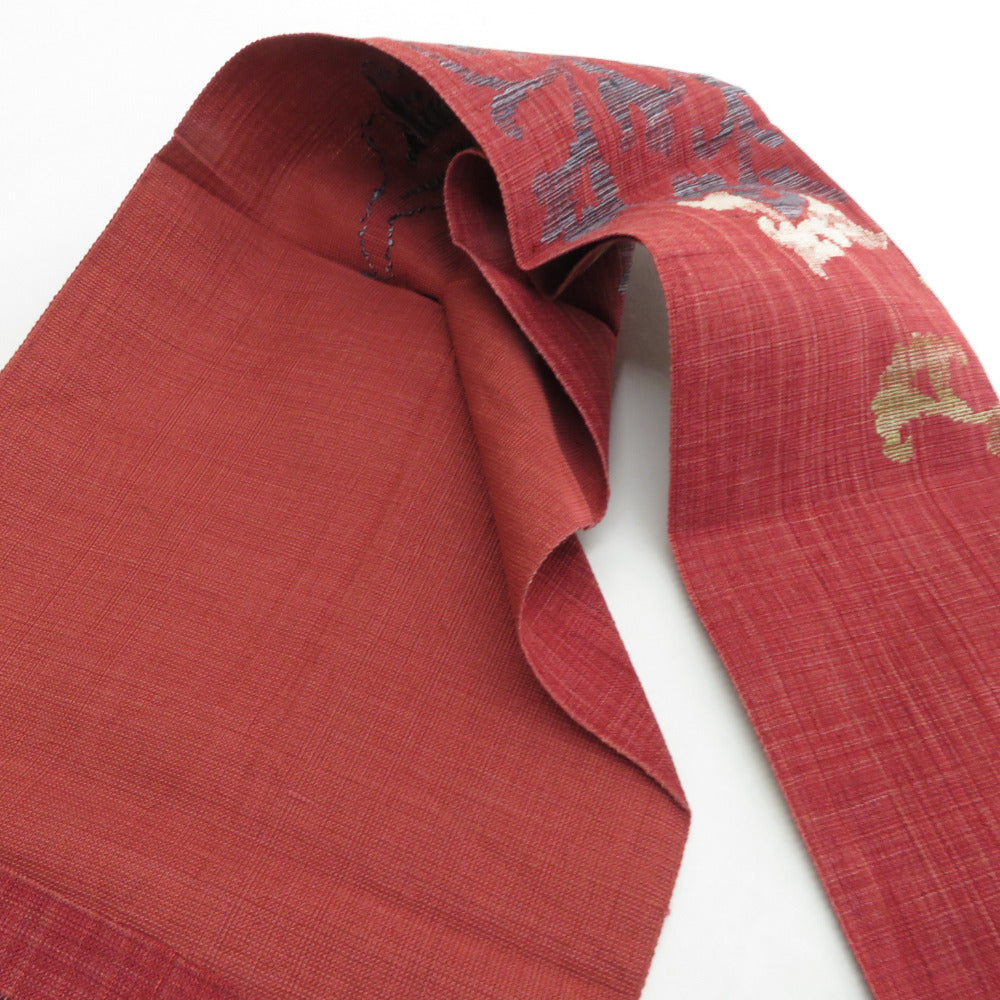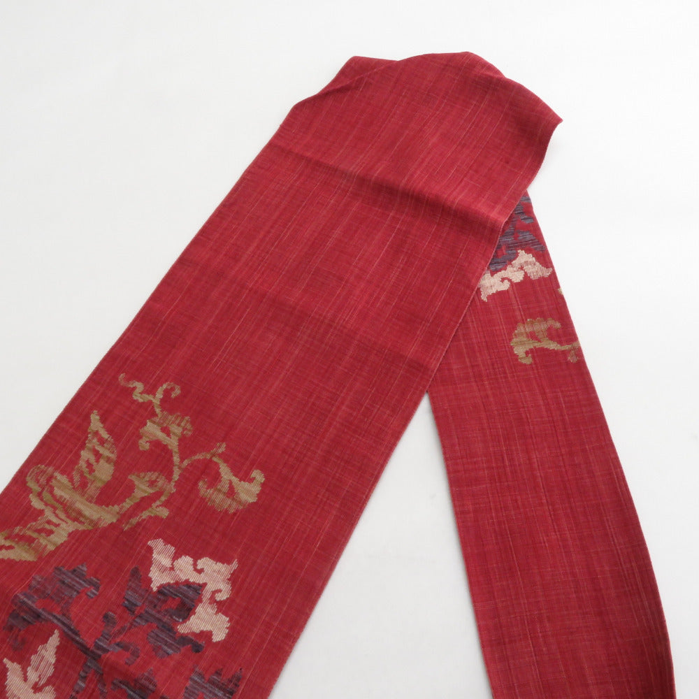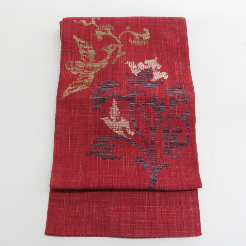 Title Japanese Kimono Nagoya Obi Silk Bird pattern on plants Red 133.1inch Women's