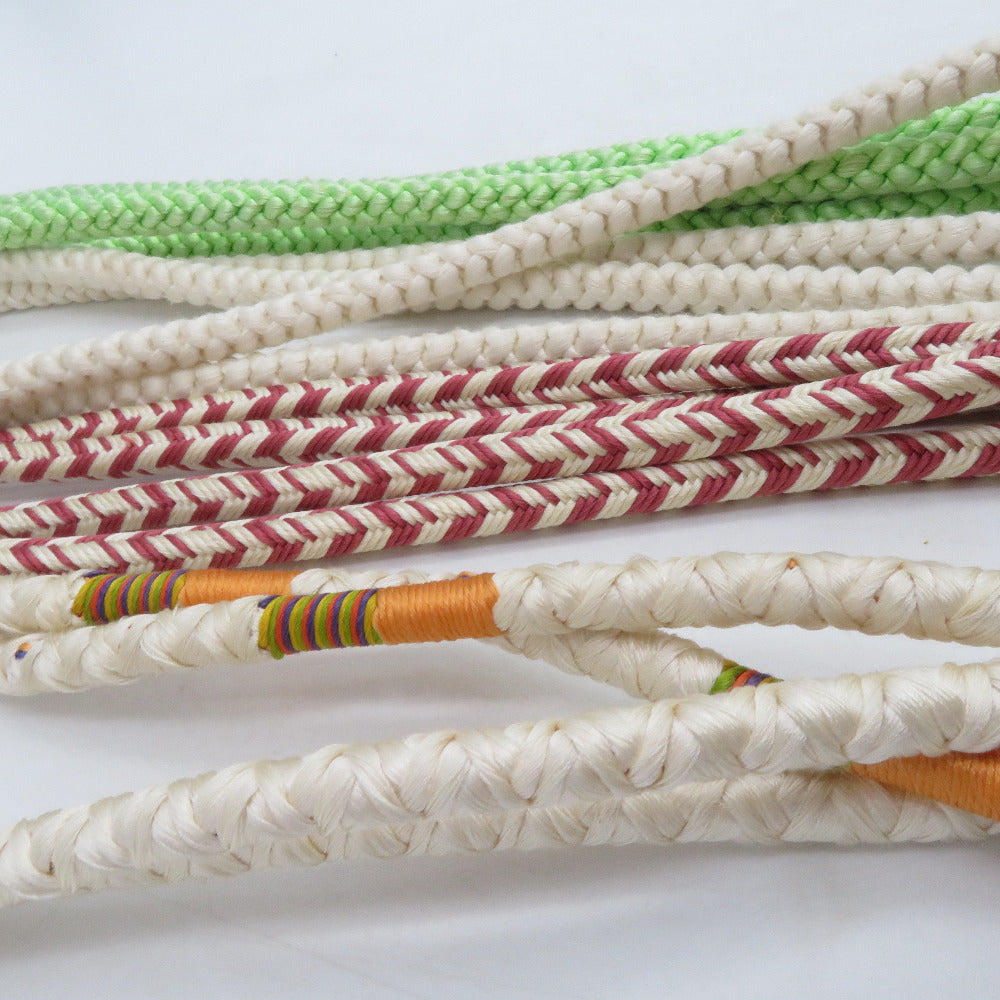 帯締め 4本セット カジュアル 丸組 正絹 和装小物 緑色x白色 着物用 まとめ売り 帯〆 多色 カラフル