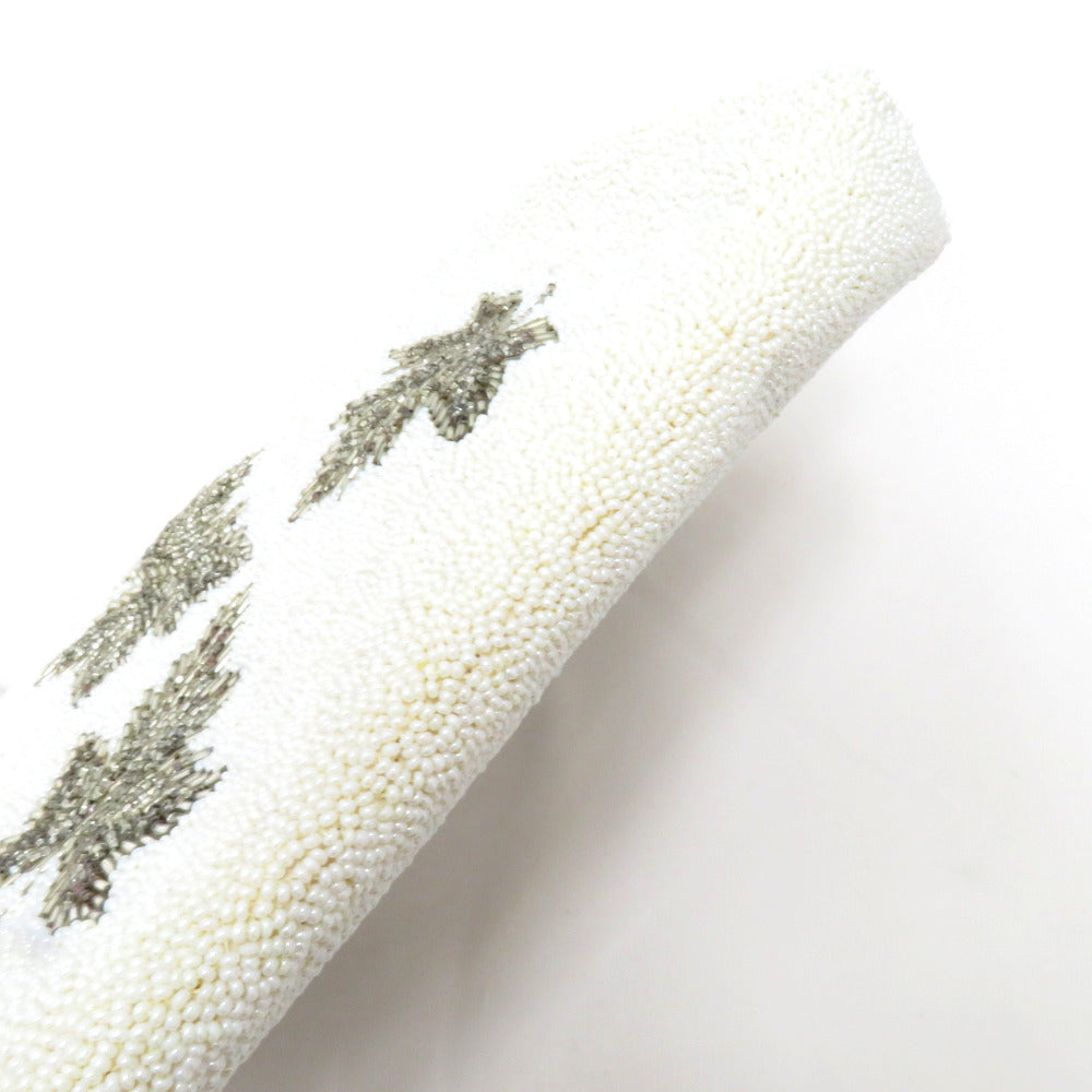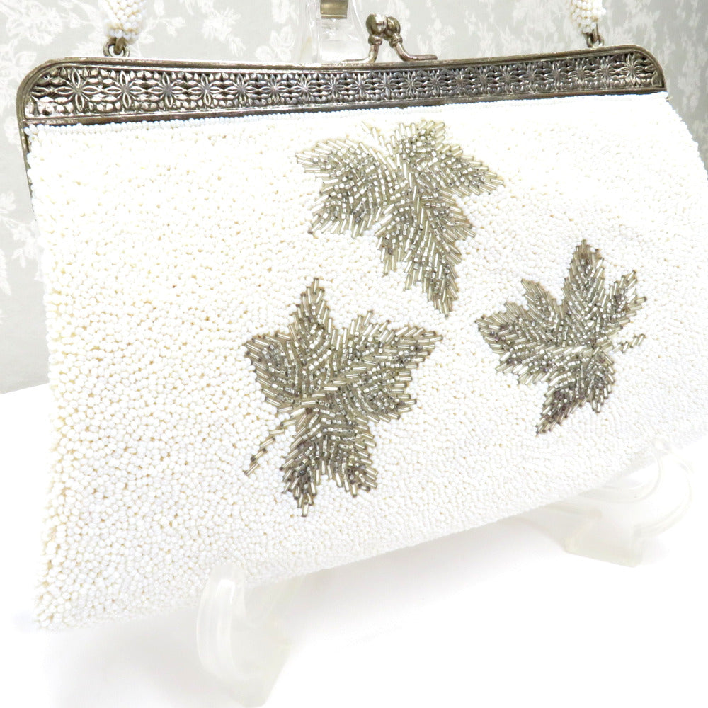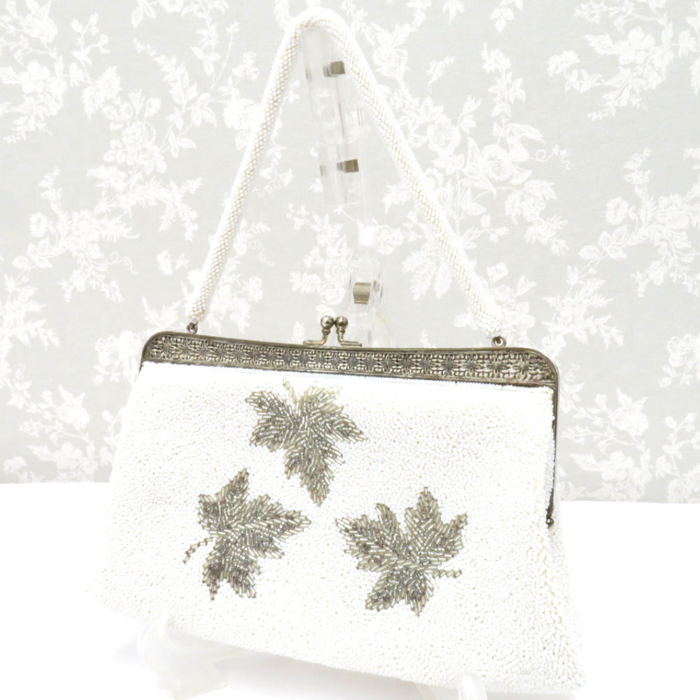 和装バッグ ビーズバッグ 白 銀 葉柄 ハンドバッグ パーティーバッグ レトロ 着物バッグ 洋装 和小物