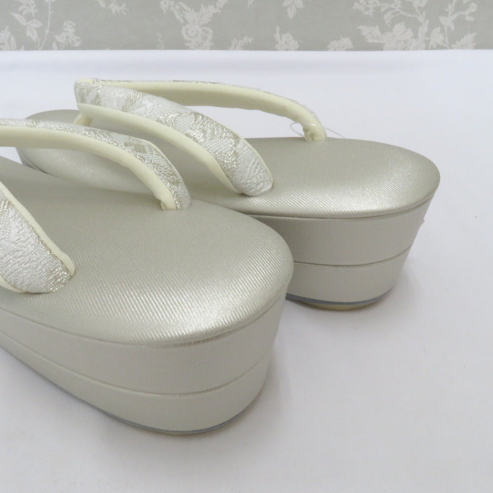 草履 白梅謹製 礼装用 Mサイズ 2枚芯 フォーマル シャンパンゴールド シルバー×白 24.0cm 日本製 牛皮底面