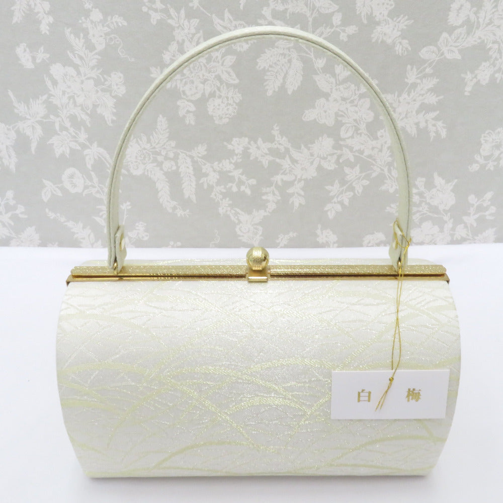 草履・バッグセット 白梅謹製 礼装用 Lサイズ フォーマル ホワイト×シャンパンゴールド 芝柄 24.5cm 日本製 牛皮底面